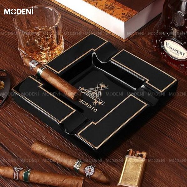 Gạt tàn sứ đen hoặc gốm viền vàng nhẹ → tiện dụng & tinh tế.