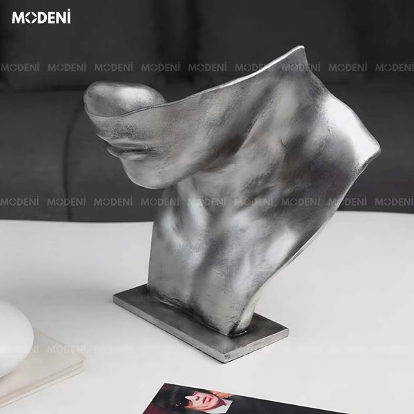 Tượng decor đen/trắng: hình người, hình khối nghệ thuật → tâm điểm thẩm mỹ.