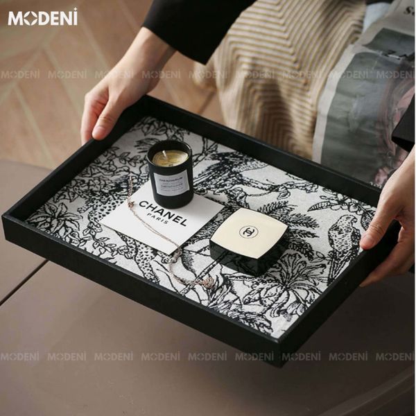 - Một khay vuông màu đen phối vân đá ánh vàng