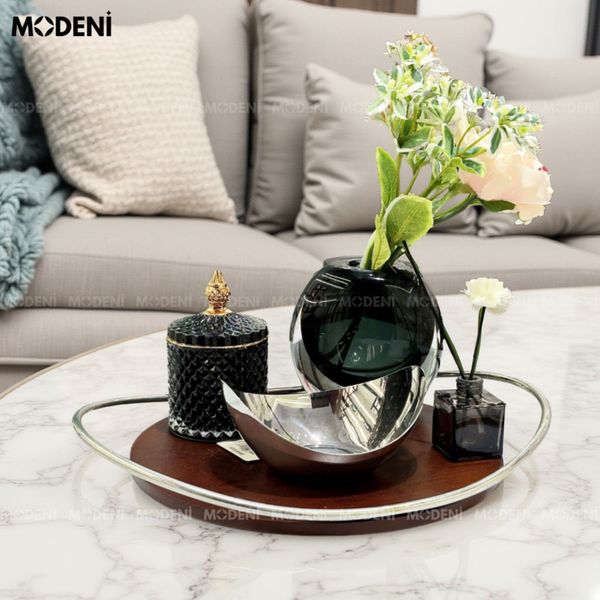 Những món như tượng đá vân tự nhiên, khay gỗ thô phủ mờ, hay lọ hoa thủy tinh dày phối đá chính là lời thì thầm nhẹ nhàng của một không gian biết "ôm lấy người sống trong đó".