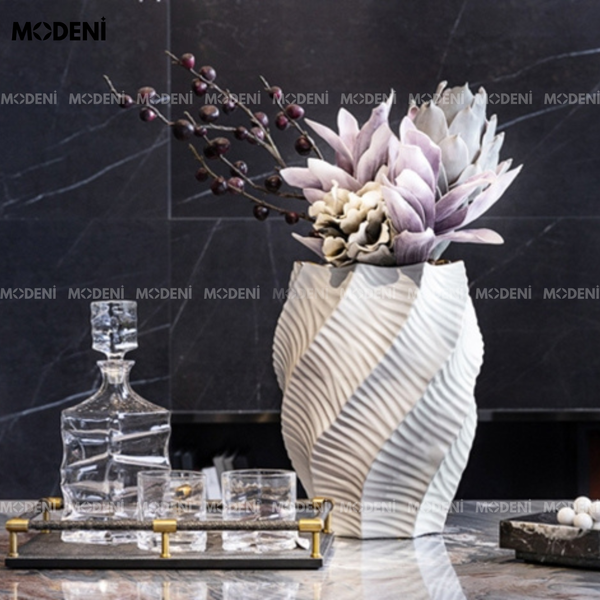 - Không chỉ tượng decor, những mẫu bình hoa nghệ thuật cũng là lựa chọn tinh tế. Như Bình Hoa Gốm Lumia – với đường nét trắng nhám và form dáng như điêu khắc, hay Bình Hoa Sứ Moonlit – dáng tay cầm cong duyên dáng như một chiếc bình cổ tích hiện đại.