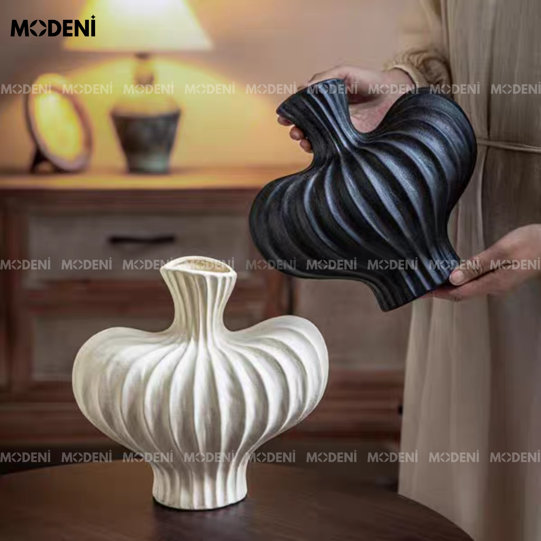 Bình Hoa Sứ Curva Cao Cấp Nghệ Thuật Lượn Sóng 3D | Decor Bàn Console – Kệ Tủ Sang Trọng