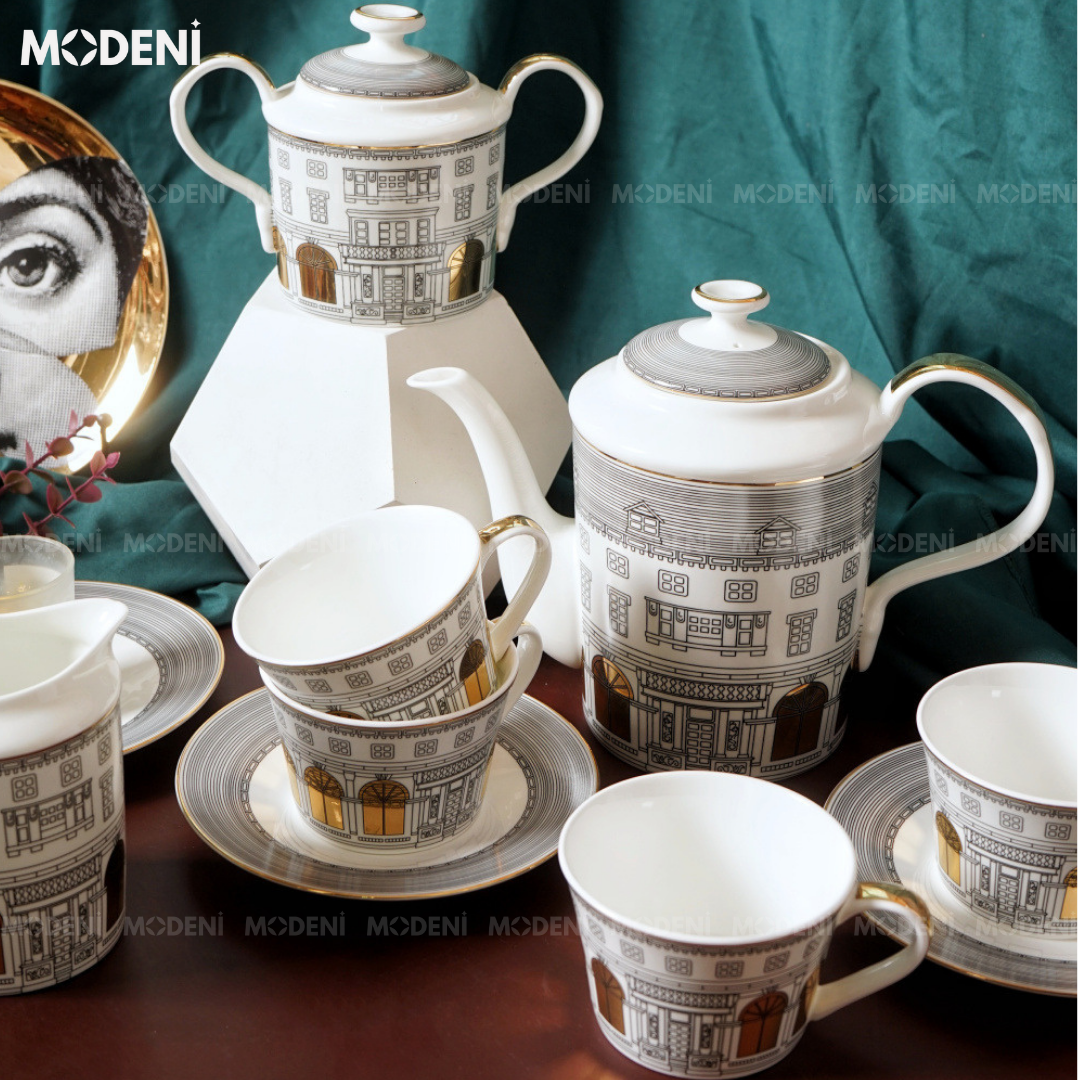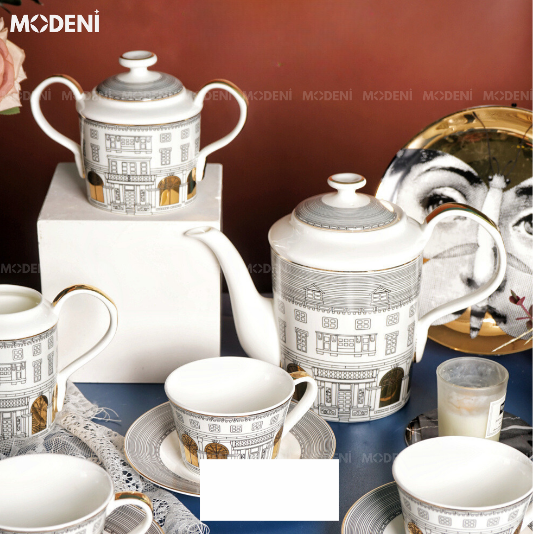 Bộ Bình Trà Họa Tiết Ngôi Nhà Hime Cao Cấp Sang Trọng