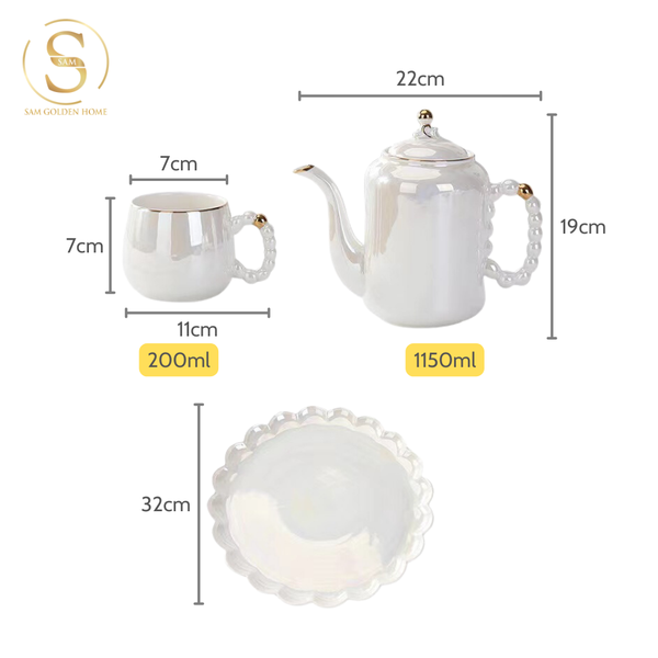 Bộ Bình Trà Pearly Sứ Xương Cao Cấp Sang Trọng | Kèm Khay