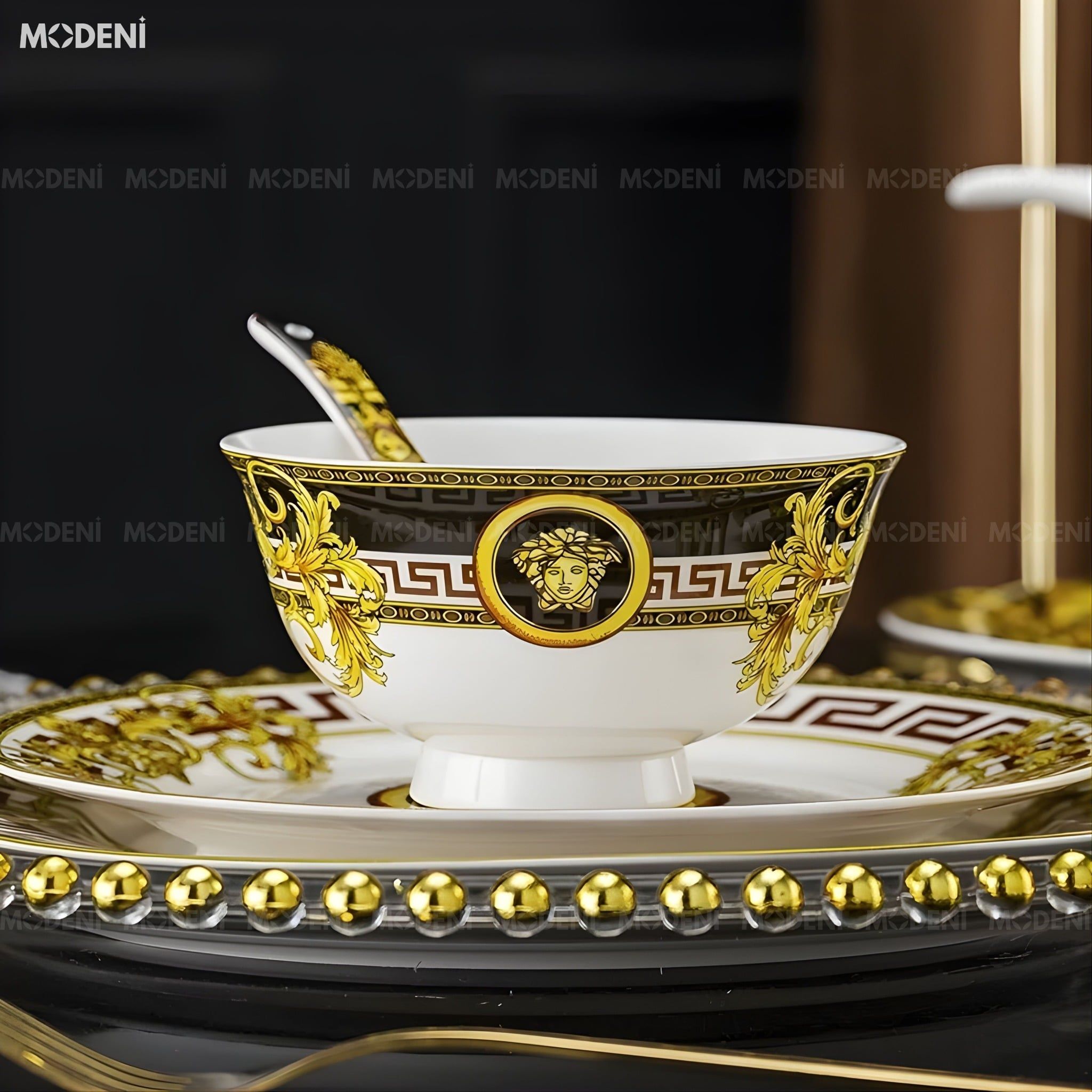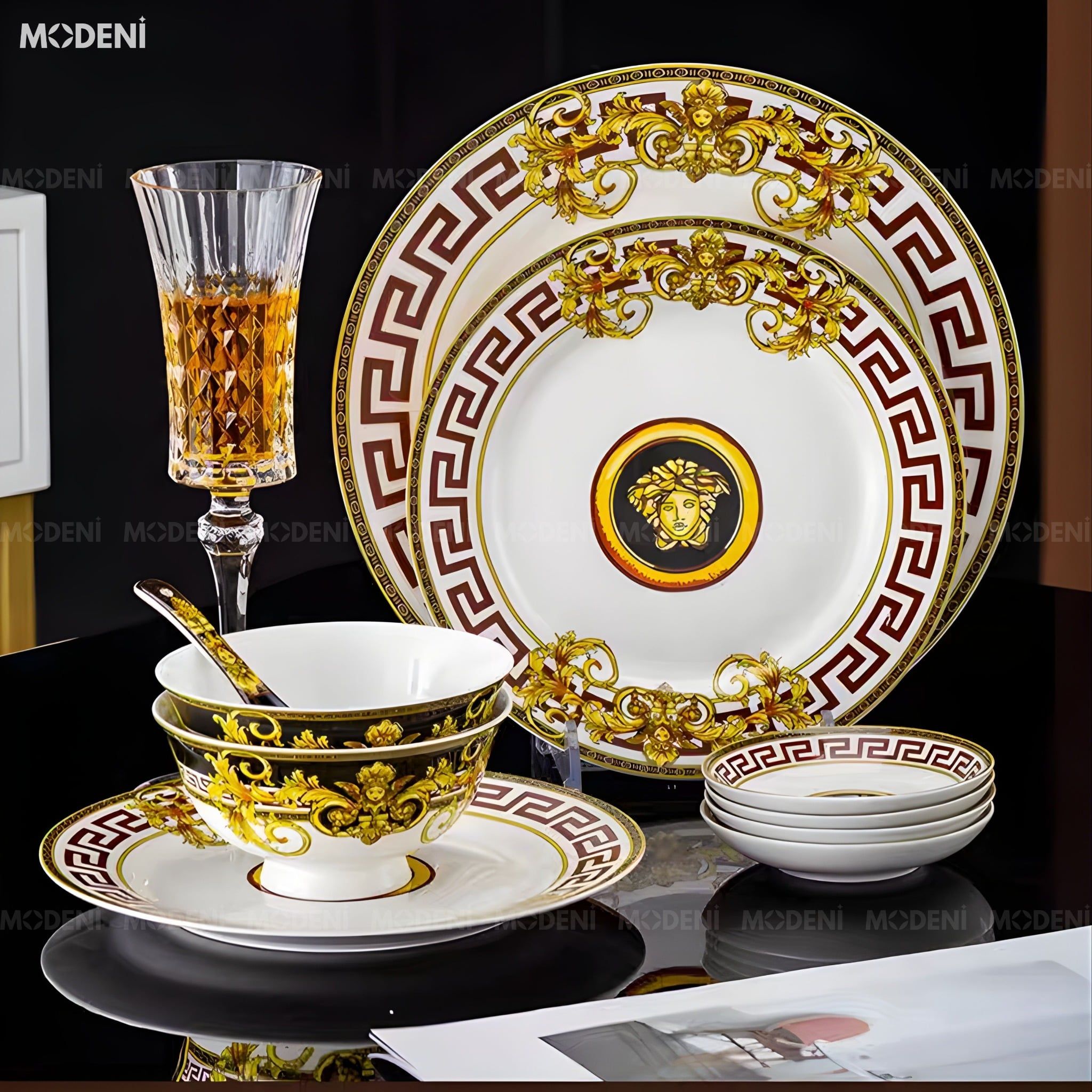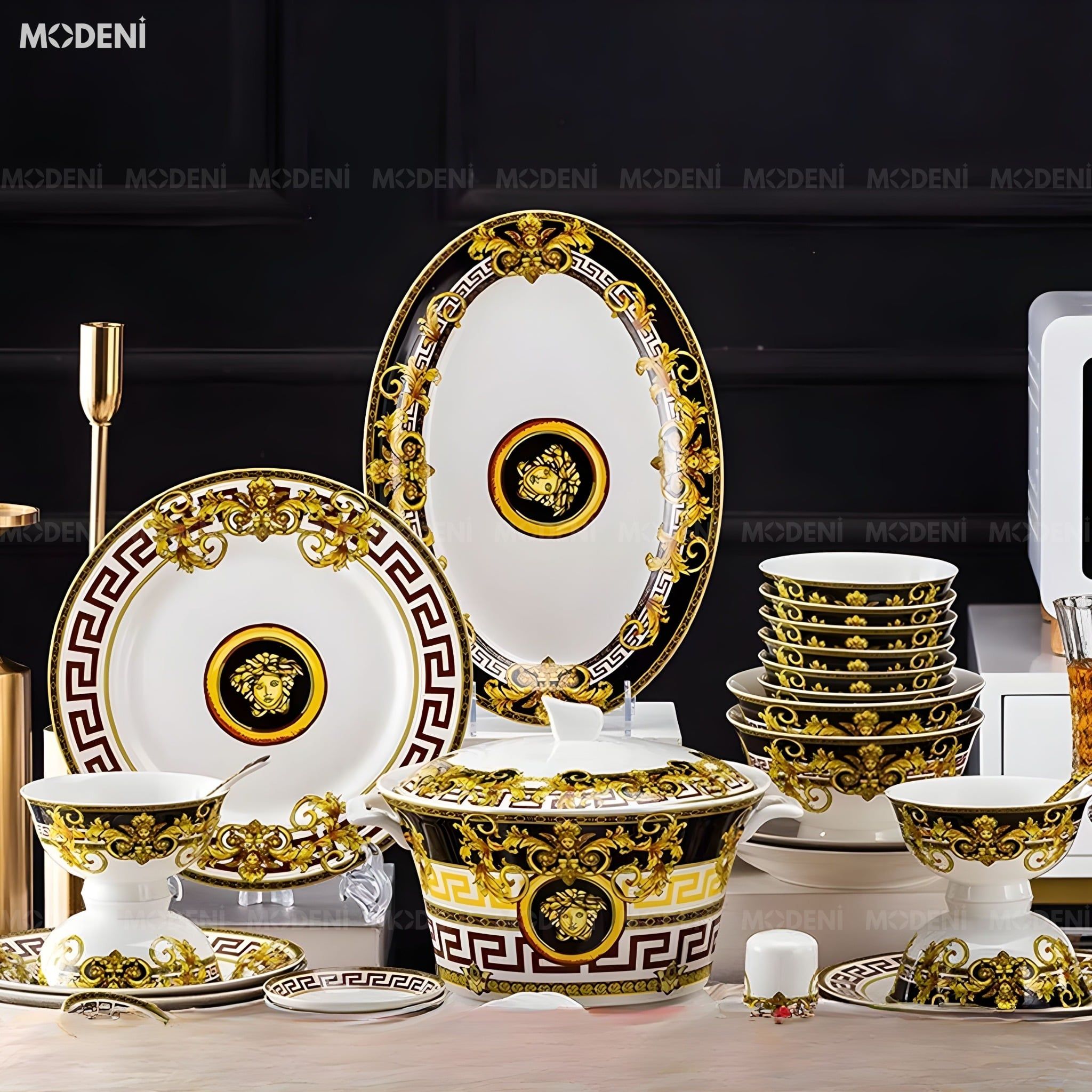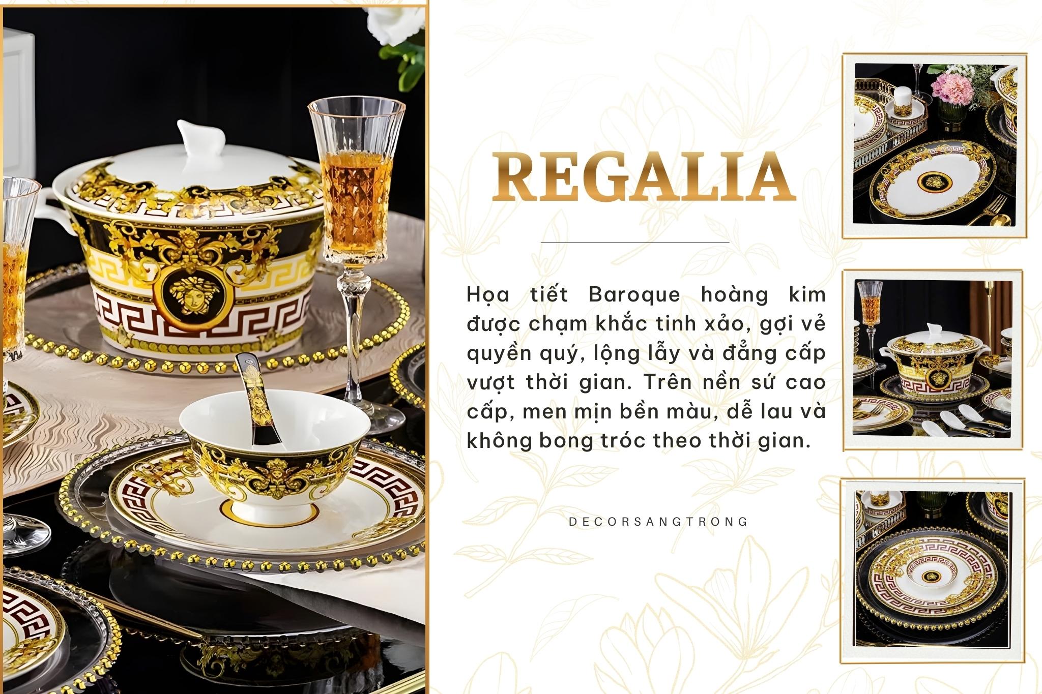 Bộ Chén Đĩa Sứ Xương Cao Cấp Regalia – Họa Tiết Baroque Hoàng Kim Quyền Quý, Biểu Tượng Đẳng Cấp Của Bàn Tiệc Sang Trọng