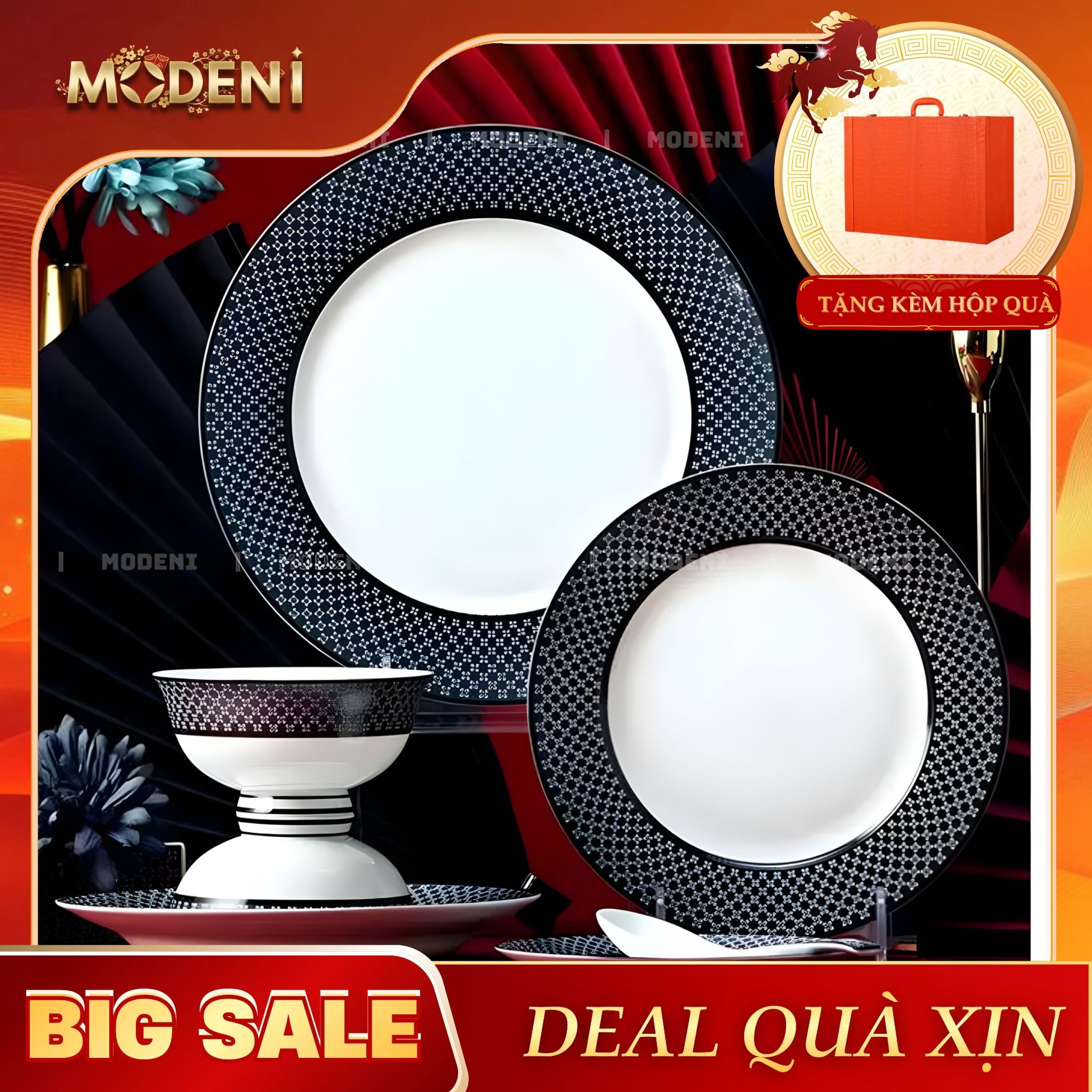 Bộ 40 món: 1 Tô Lớn, 8 chén ăn, 2 tô nhỏ, 4 đĩa nhỏ, 4 đĩa Sâu, 4 đĩa nông, 1 Muôi, 8 muỗng, 8 đũa |