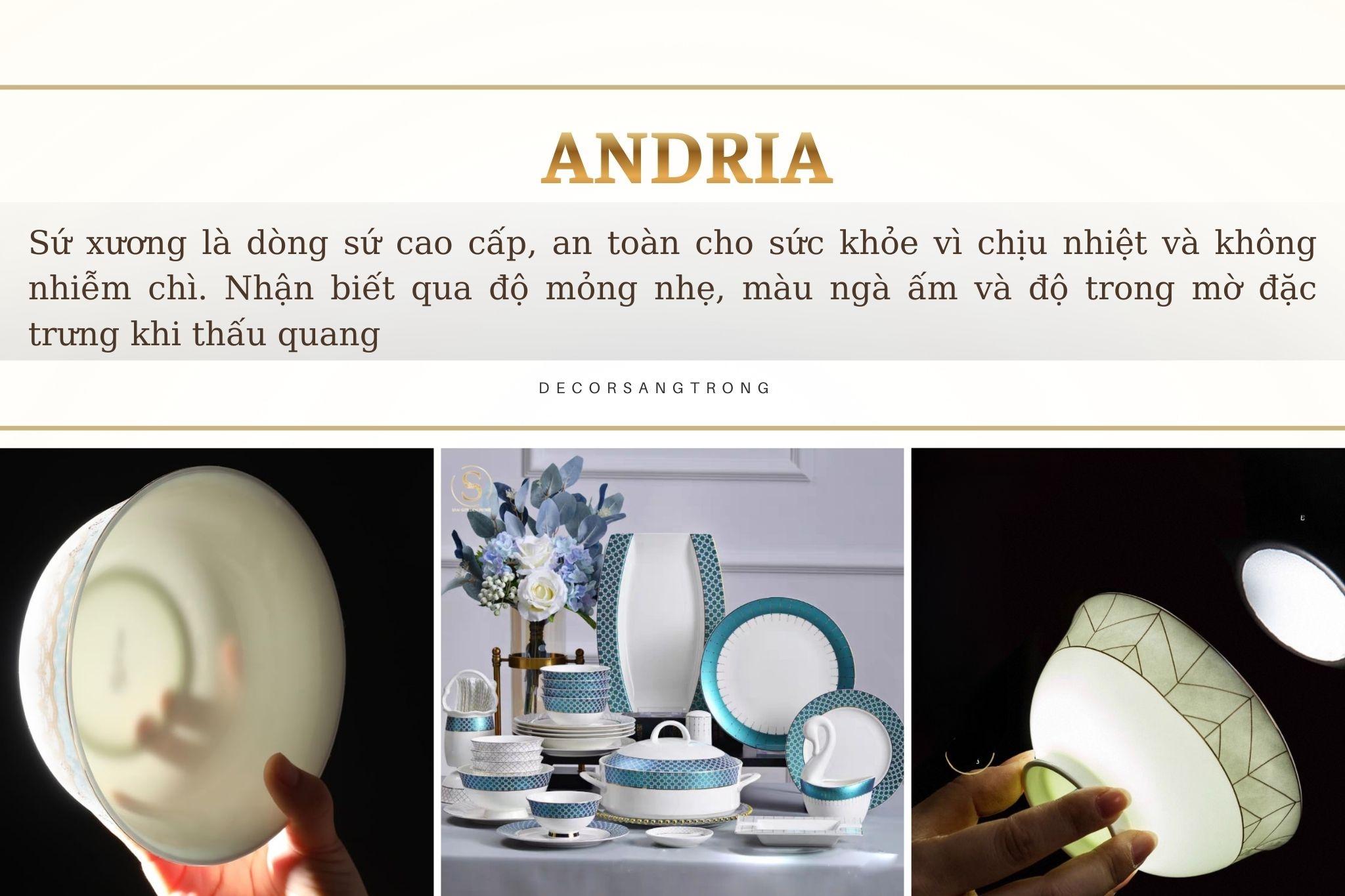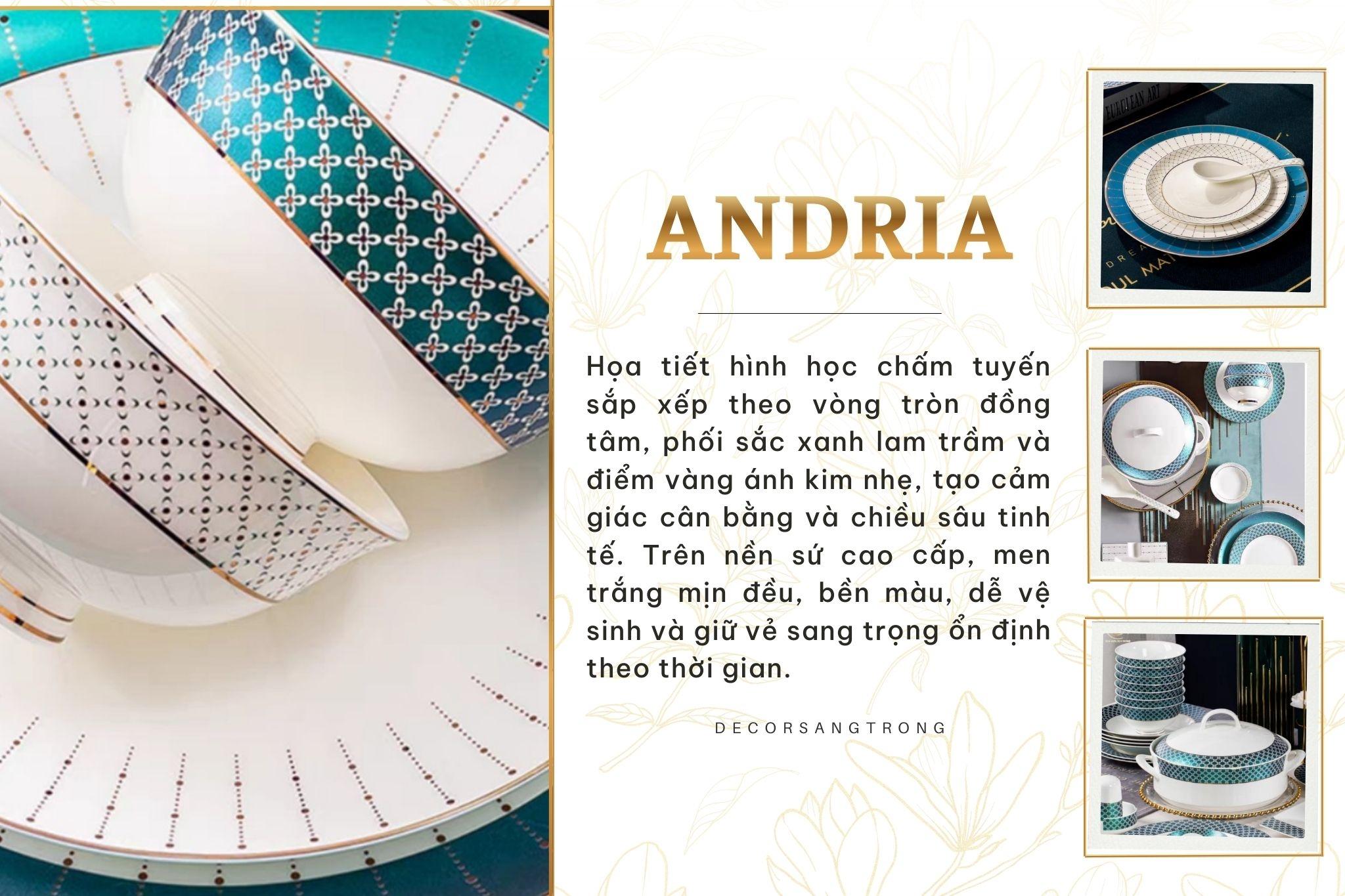 Bộ Tô Chén Đĩa Andria Sứ Xương Cao Cấp Sang Trọng Phong Cách Châu Âu