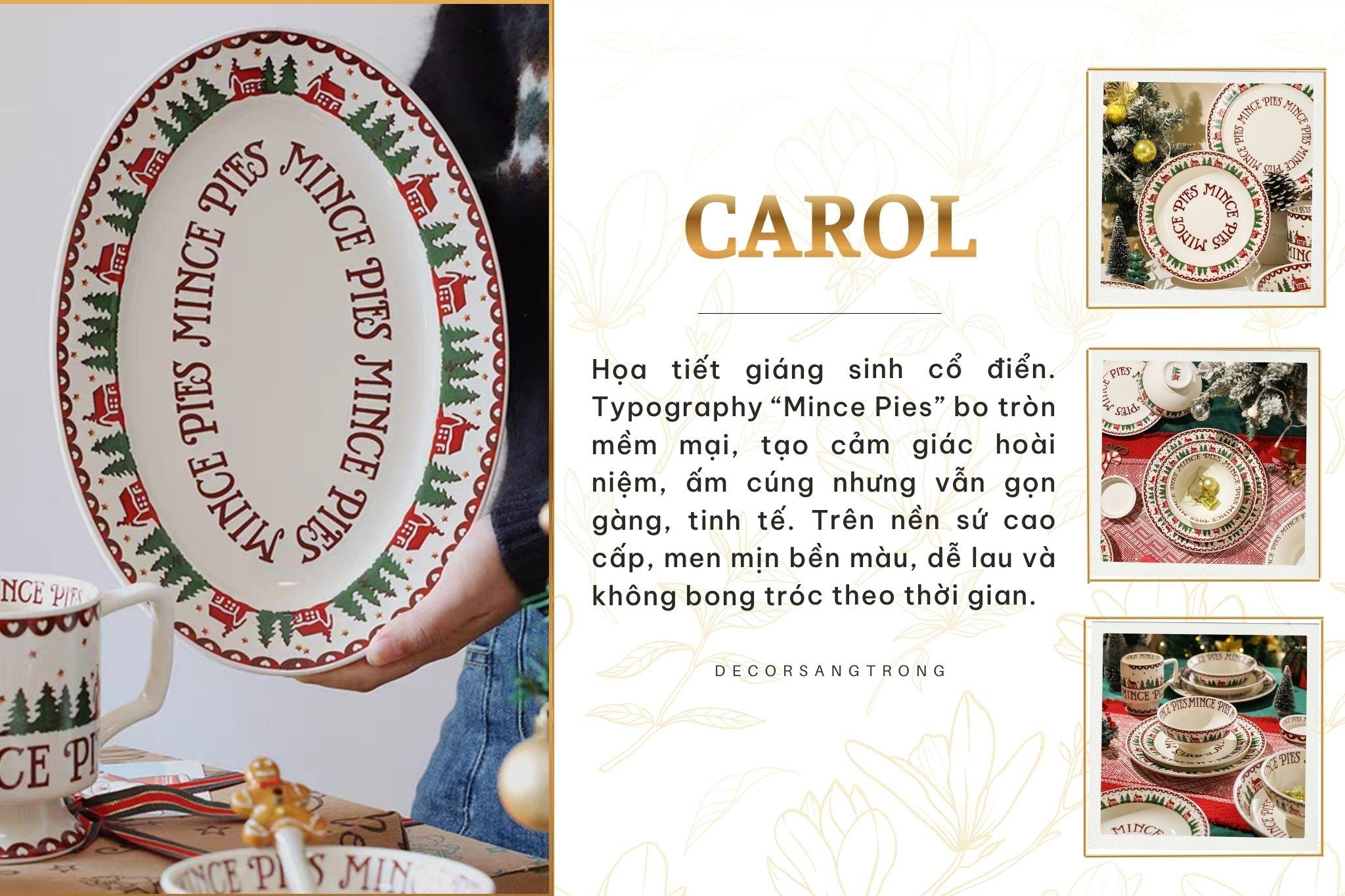 Bộ Tô Chén Đĩa Carol Cho Dịp Giáng Sinh Sứ Tráng Men Cao Cấp