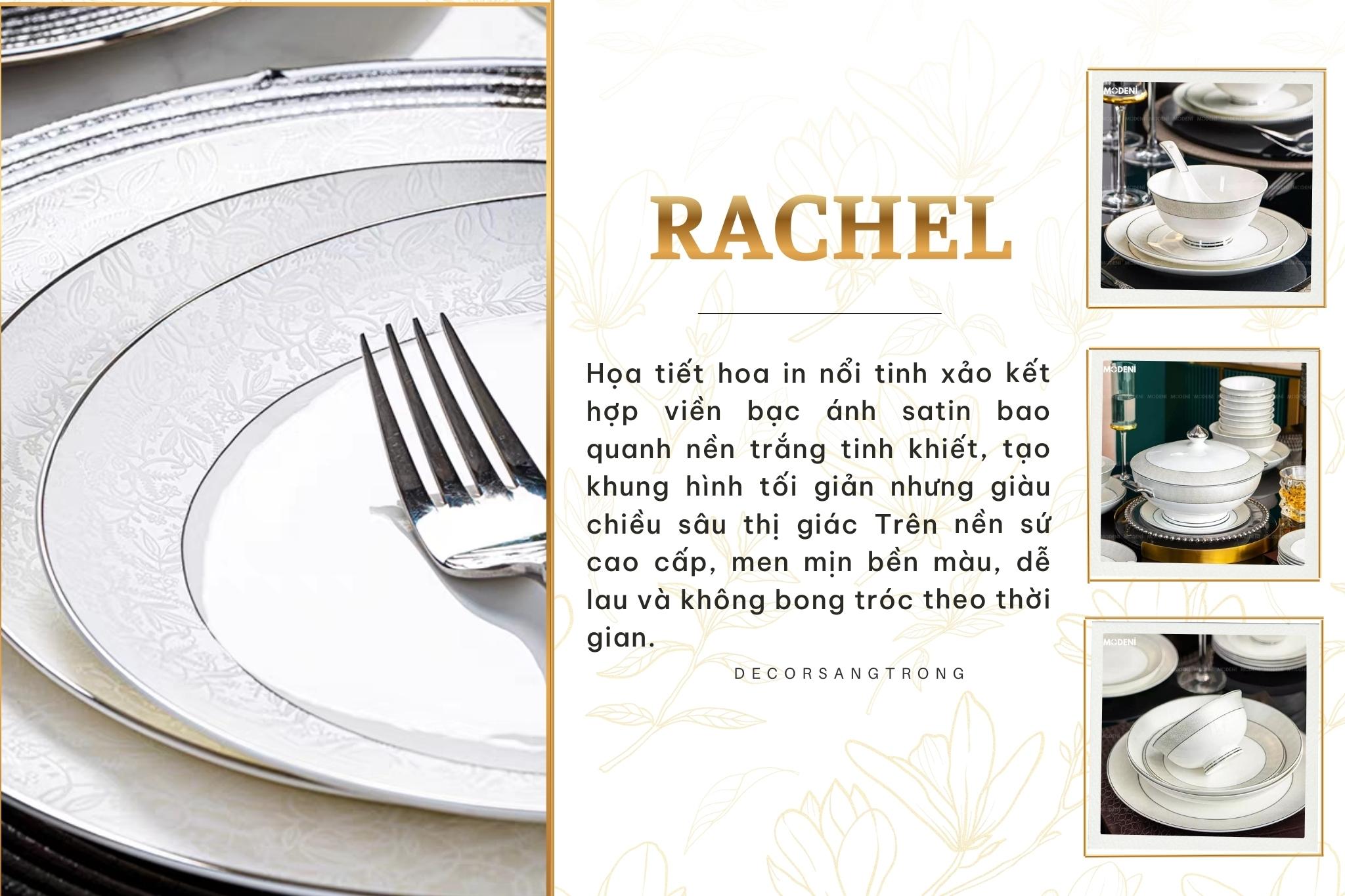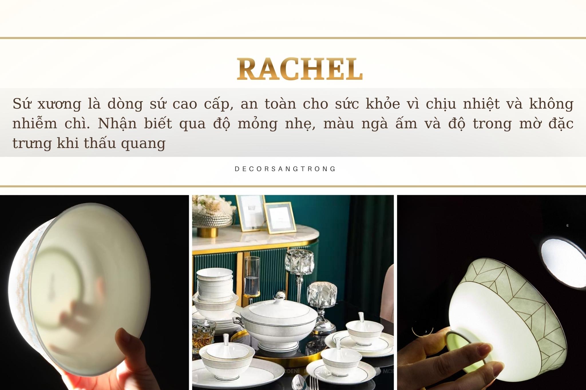 Bộ Tô Chén Đĩa Chén Sứ Xương Rachel Cao Cấp Sang Trọng