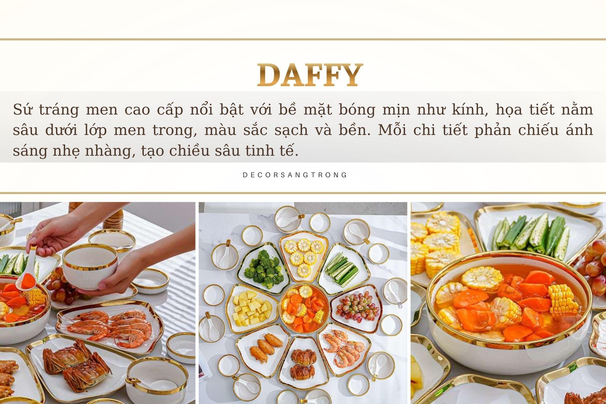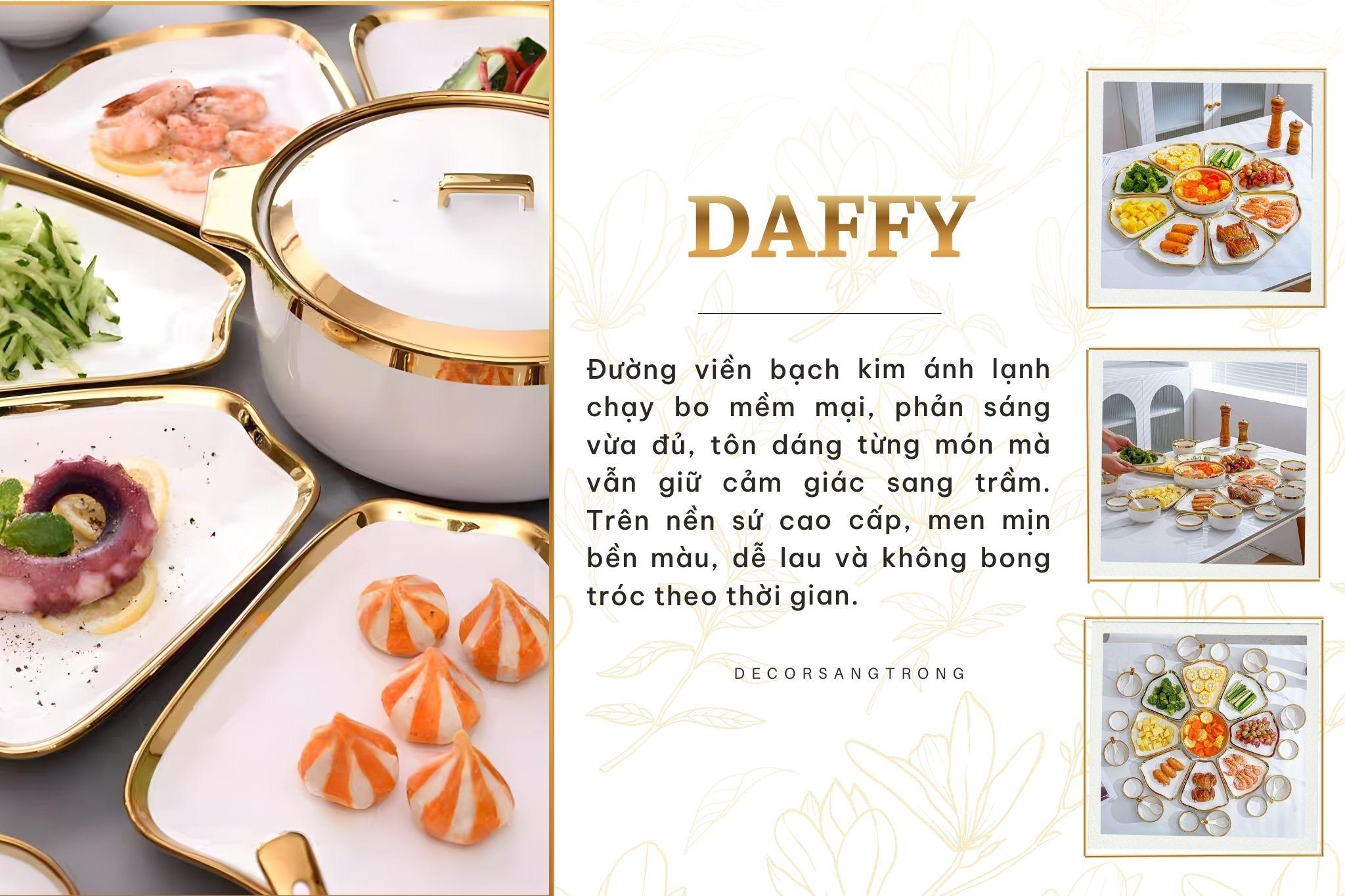Bộ Tô Chén Đĩa Daffy Gốm Sứ Cao Cấp Viền Vàng Sang Trọng 49 Món