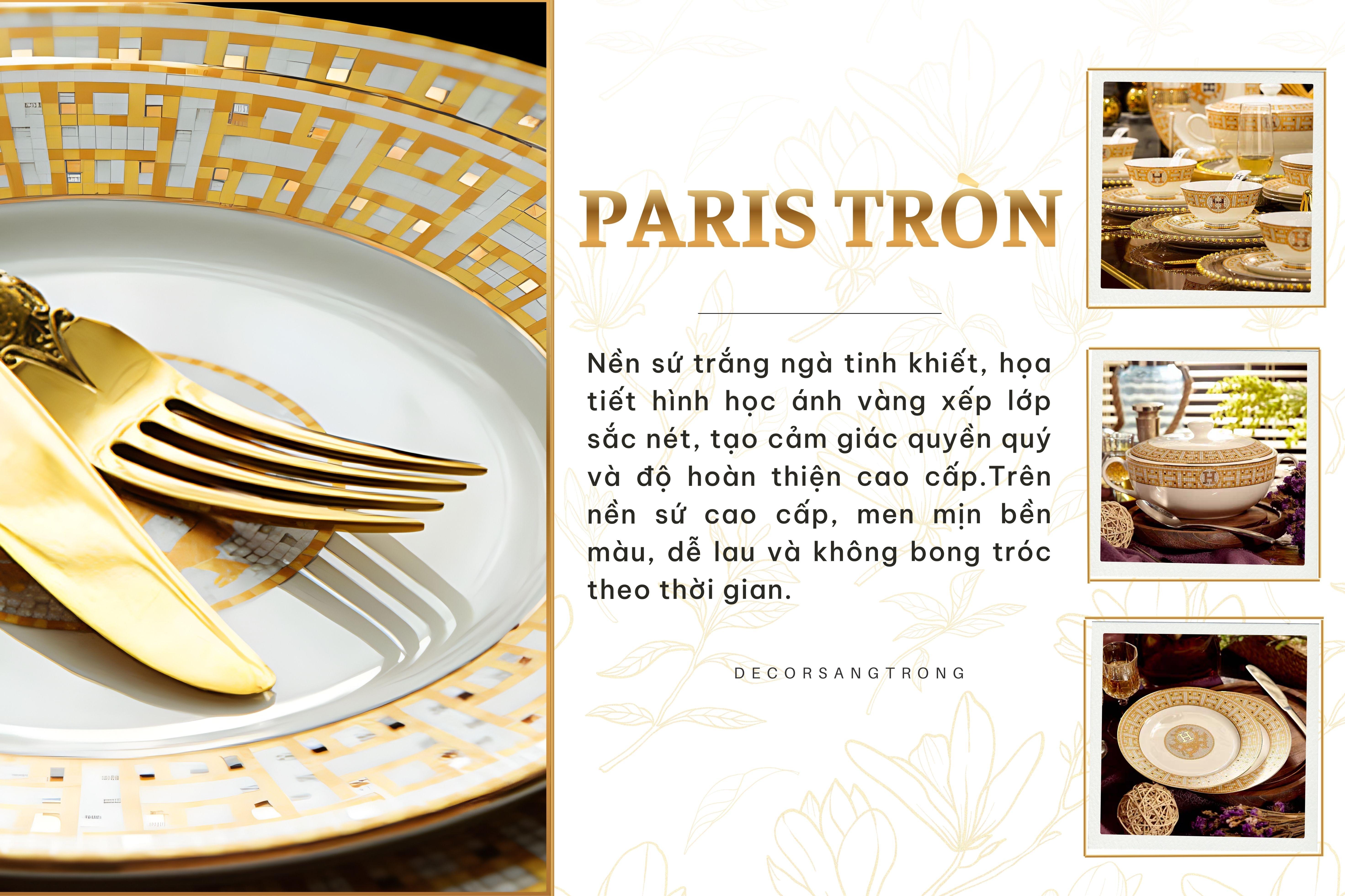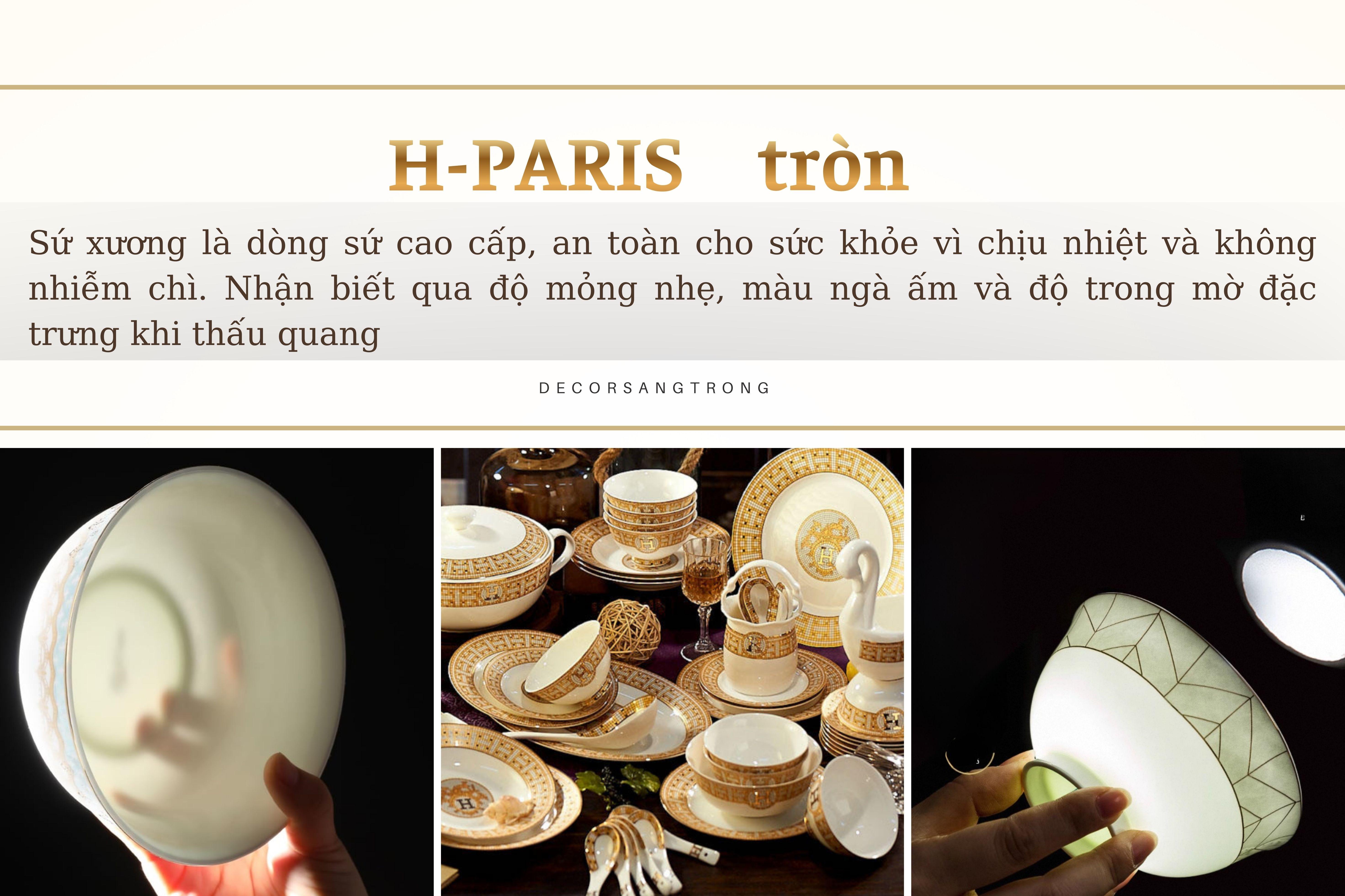 Bộ Tô Chén Đĩa Sứ Xương H-Paris (Tròn) Bộ Bát Đĩa Cao Cấp Viền Vàng - Bộ 60 Món