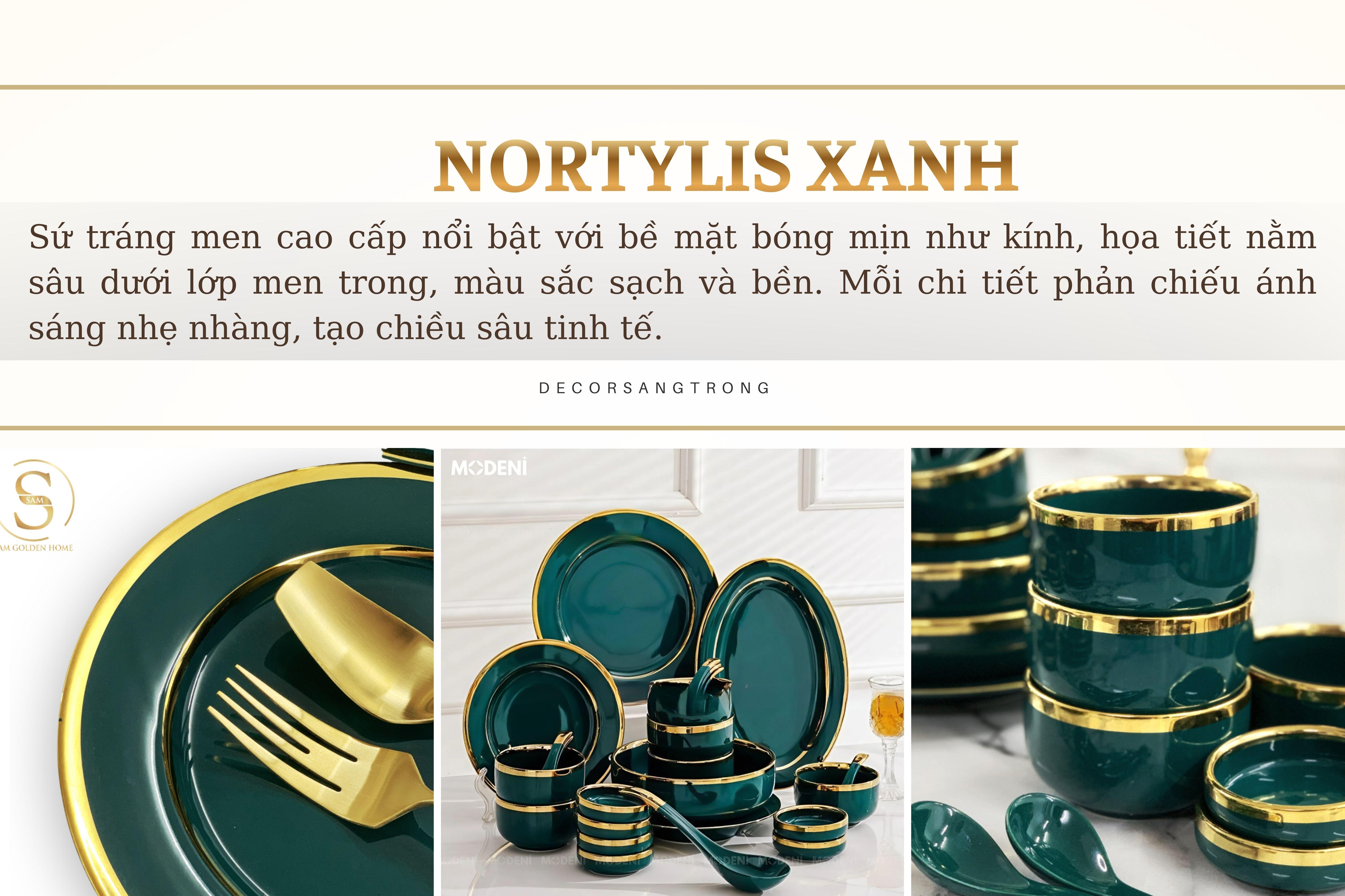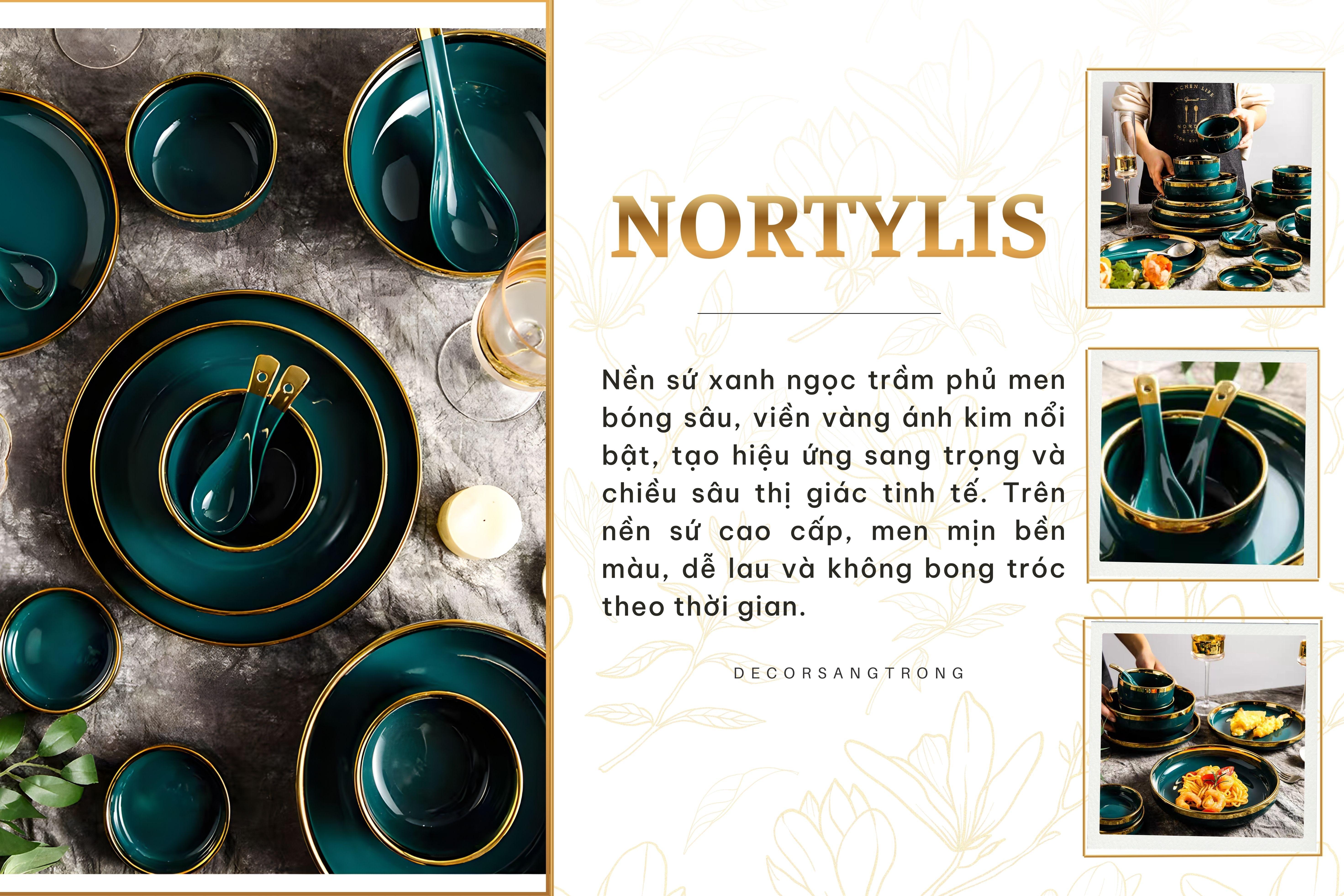 Bộ Tô Chén Đĩa Viền Vàng Nortylis Màu Xanh Emerald Gốm Sứ Cao Cấp Phong Cách Hiện Đại Châu Âu Quà Tặng Tân Gia