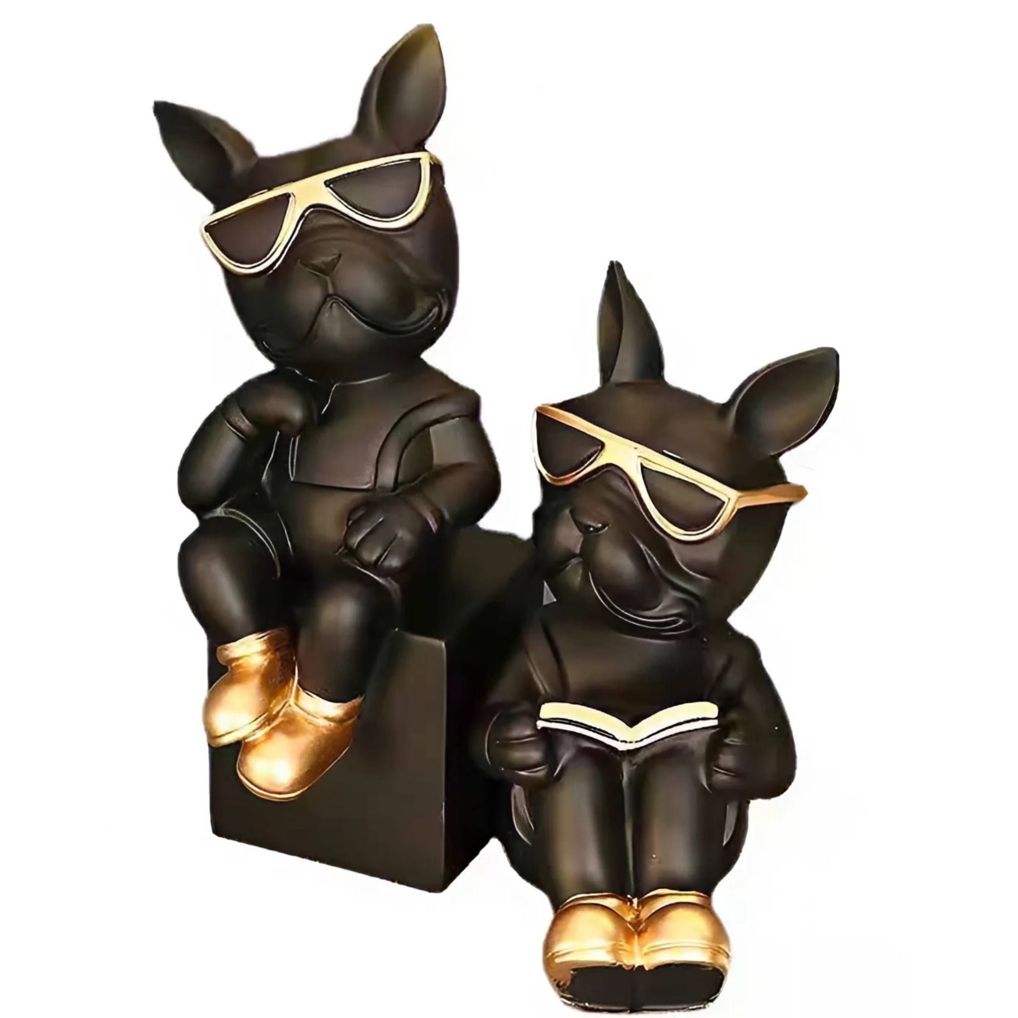 Chặn Sách & Tượng Chó Bulldog Duo Đen – Tượng Decor Con Vật Hiện Đại – Phối Màu Cá Tính, Kích Thước Mini Gọn Gàng Cho Kệ Tủ & Tủ Sách