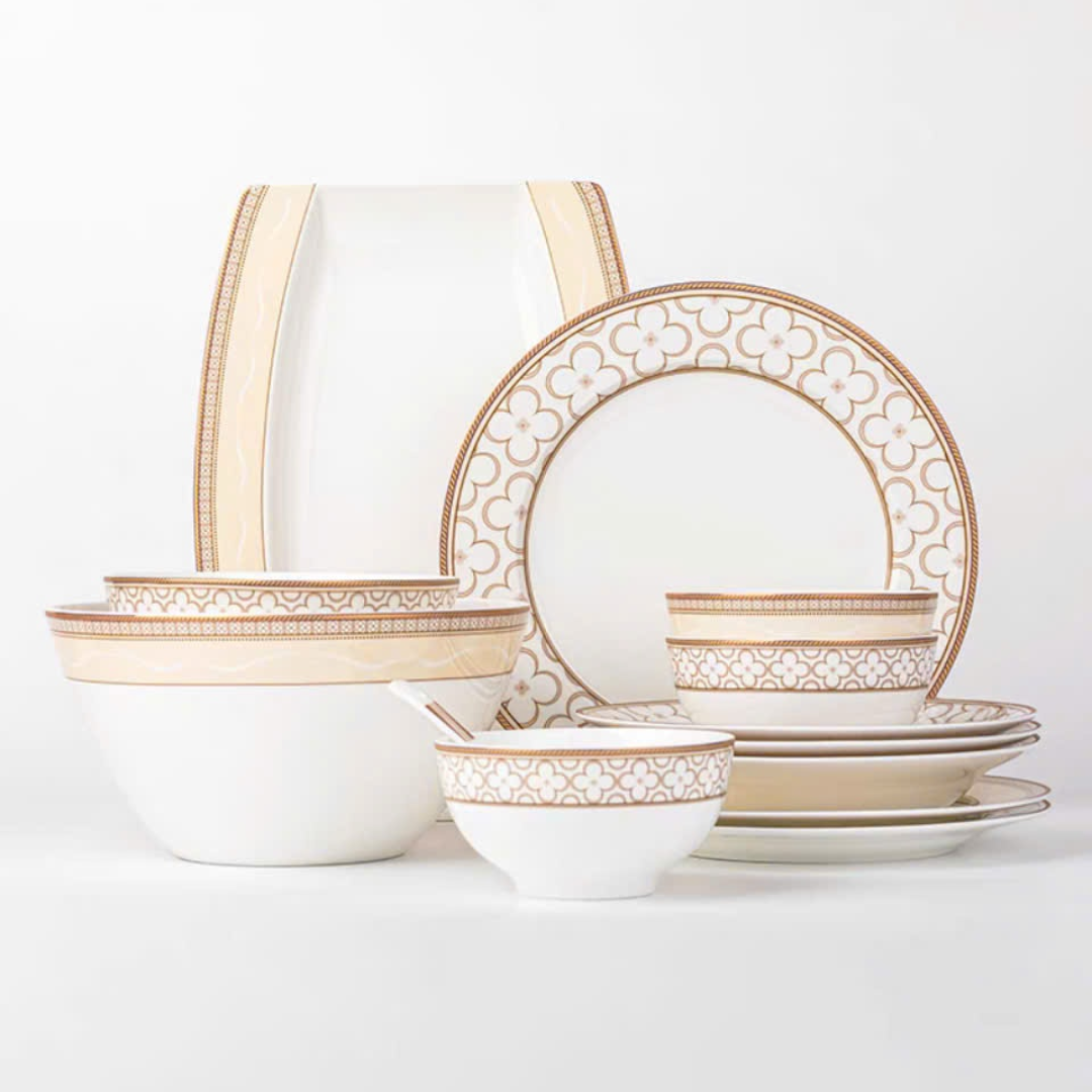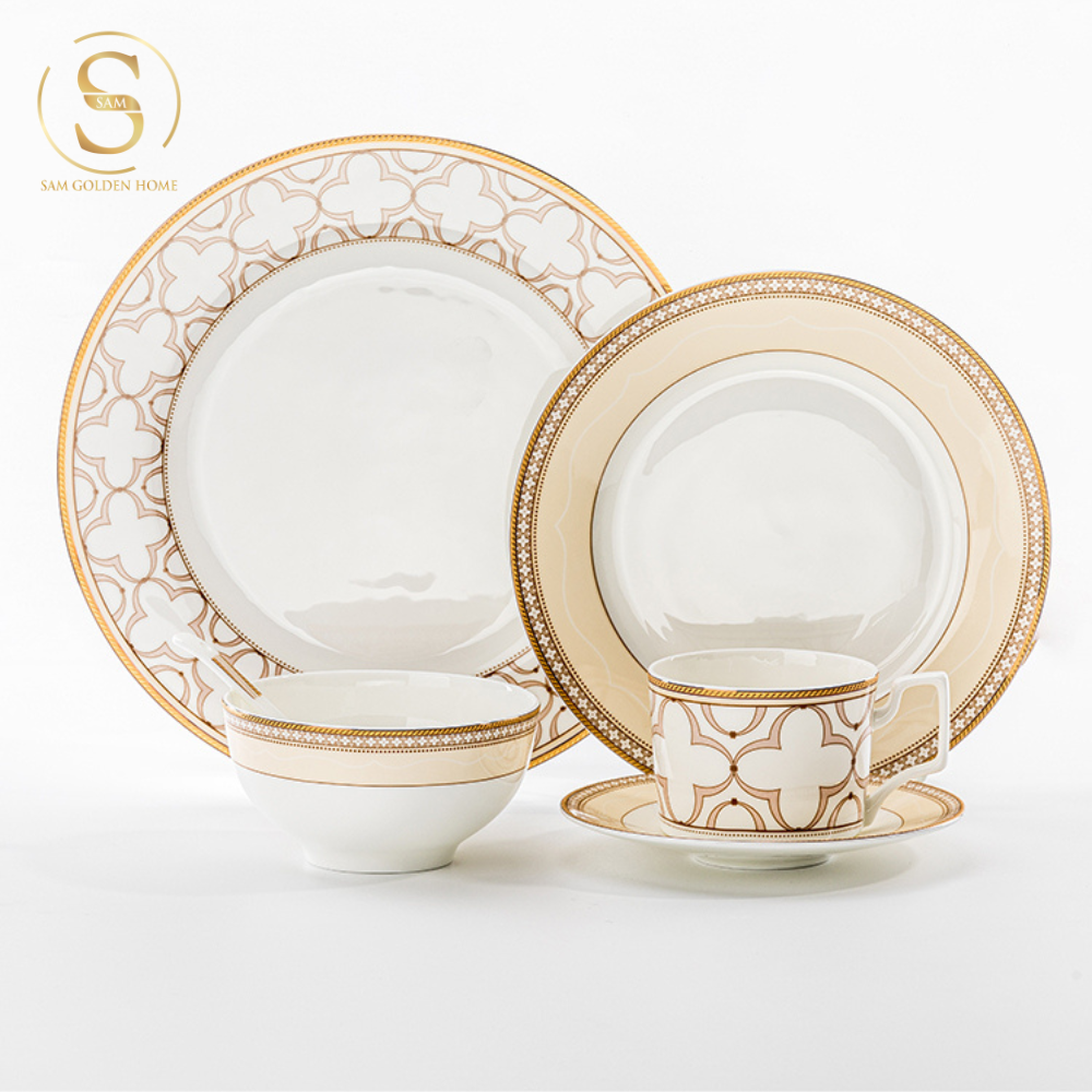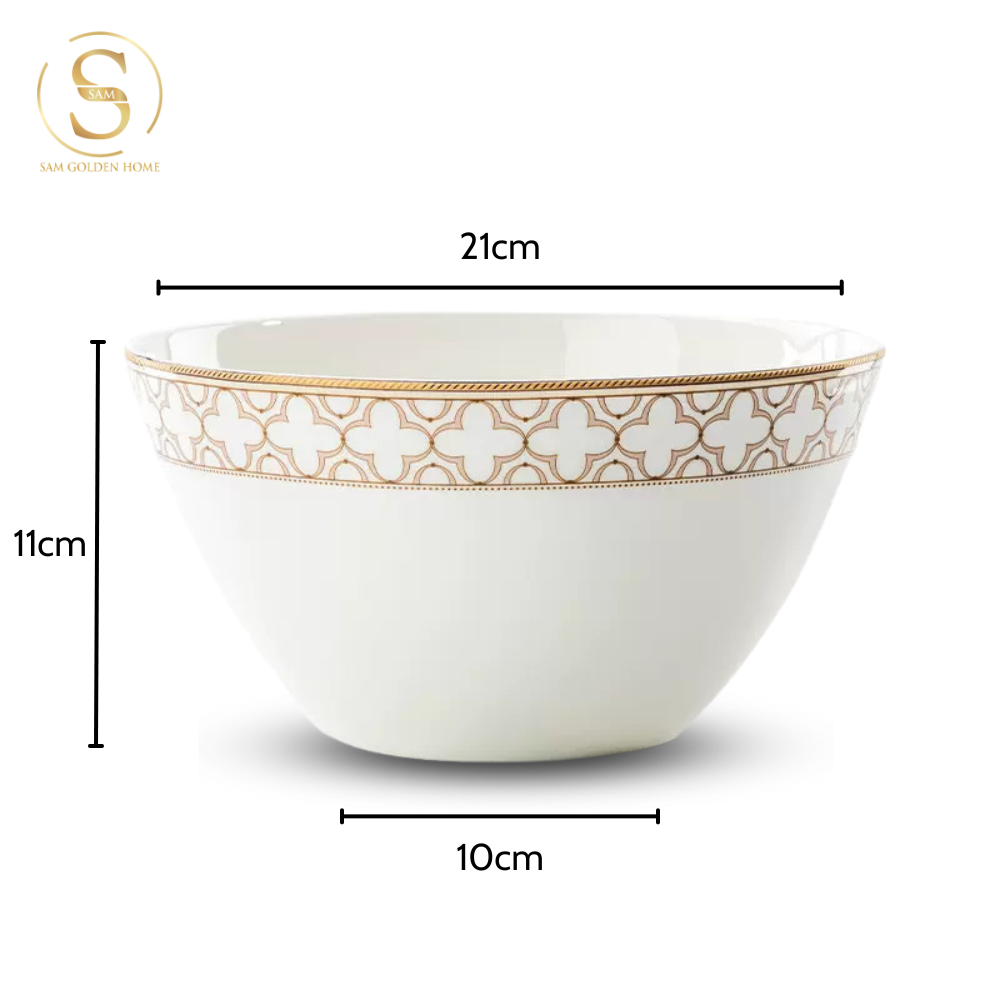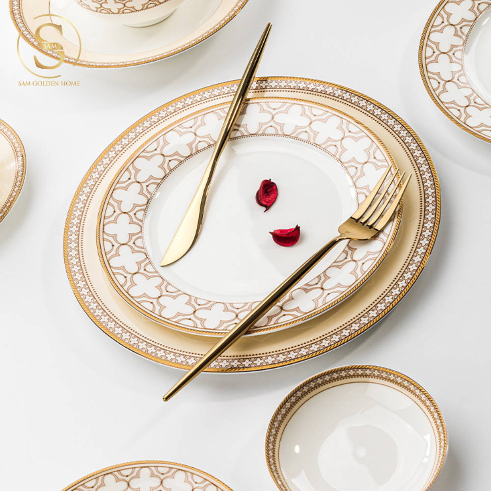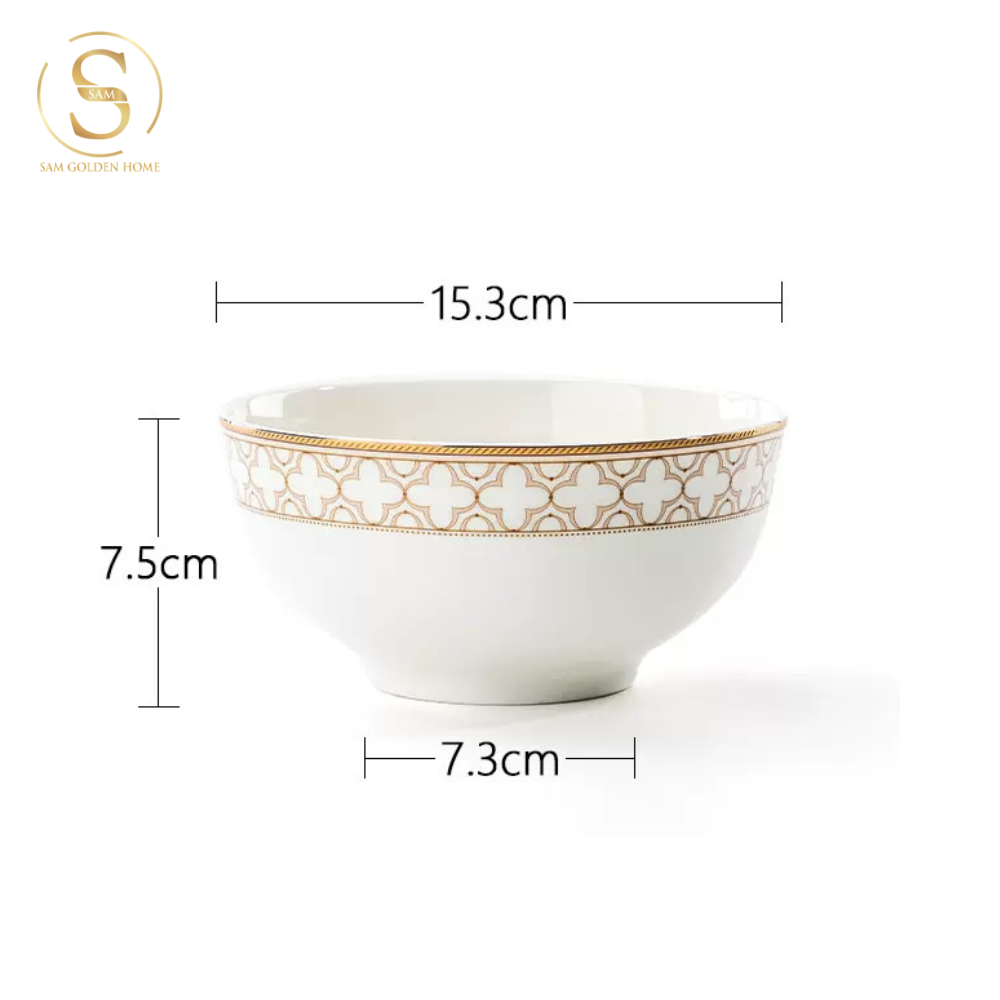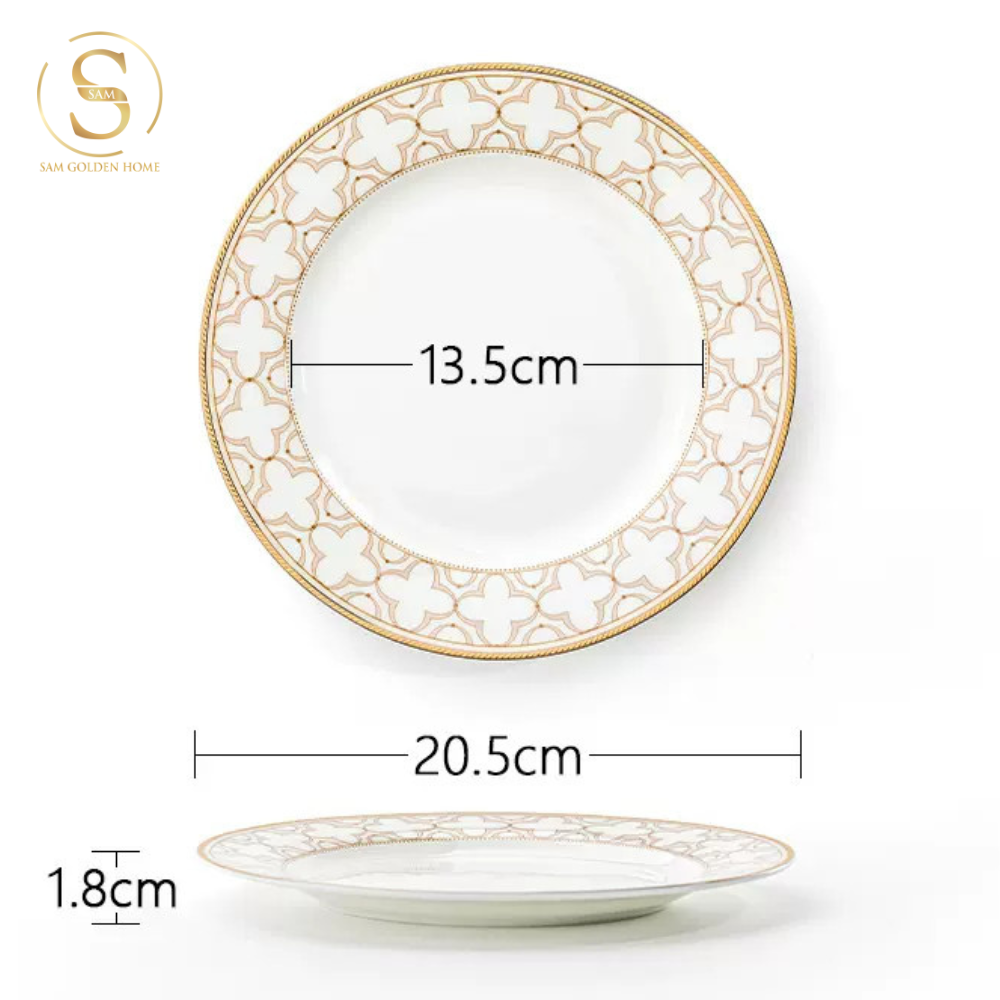 Chén Bát Đĩa Lẻ Món Sứ Xương Trefoil Cao Cấp Viền Vàng Sang Trọng Kiểu Âu Thời Thượng Quà Tặng Tân Gia