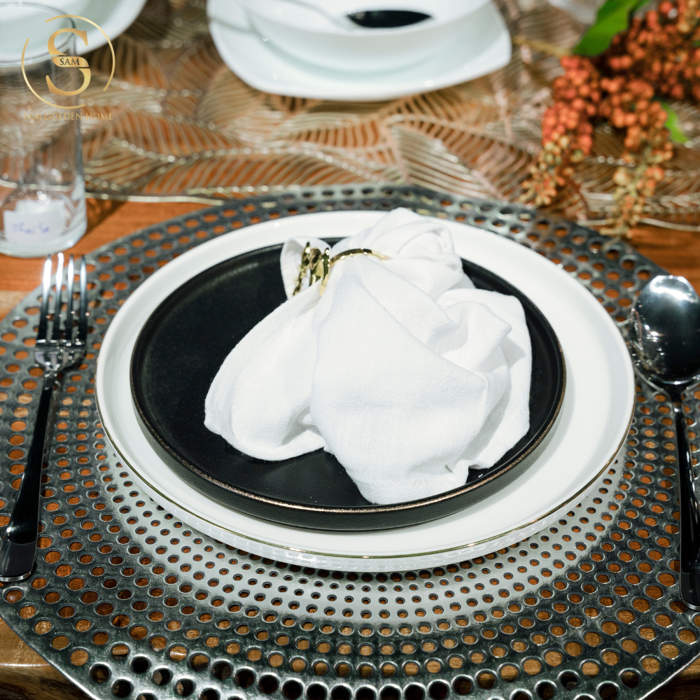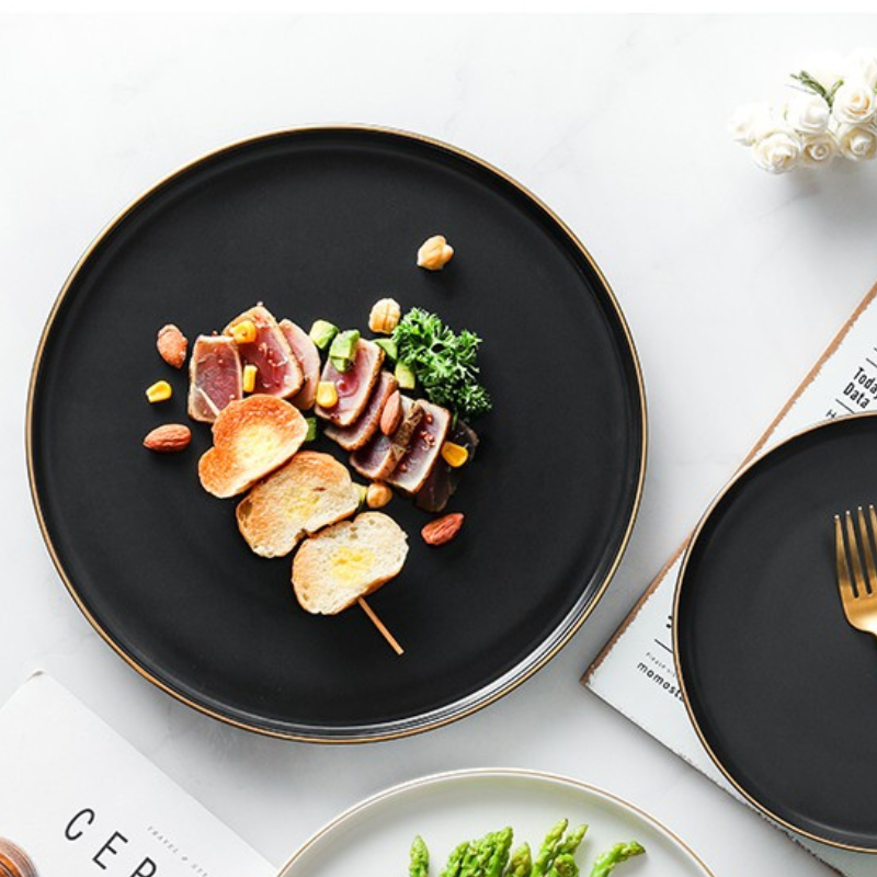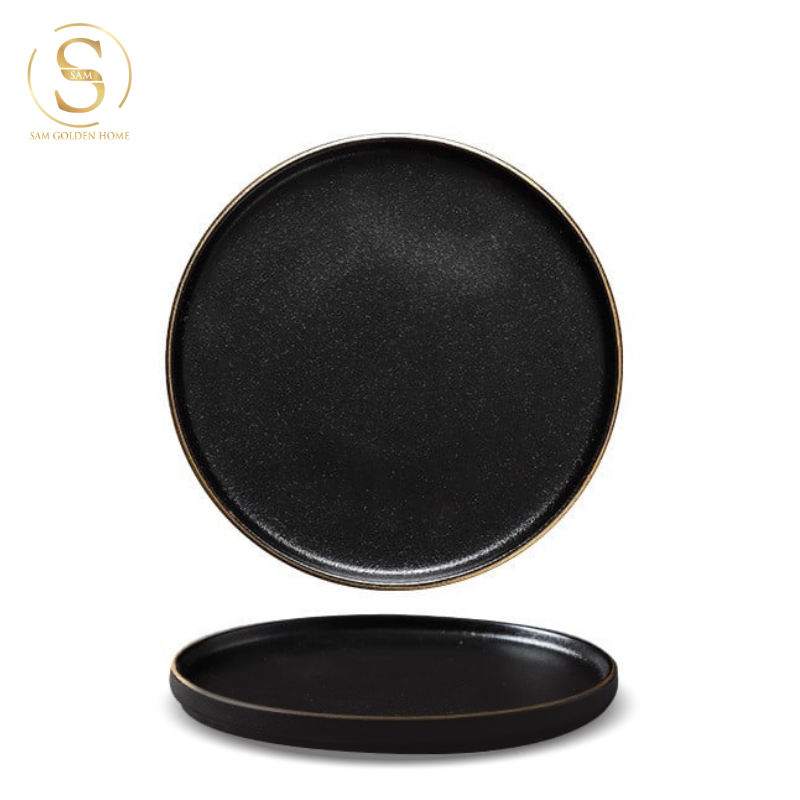 Đĩa Sứ Hasimi 25 Steak, Pasta Đen Viền Chỉ Vàng Châu Âu Phong Cách Tối Giản Minimalism