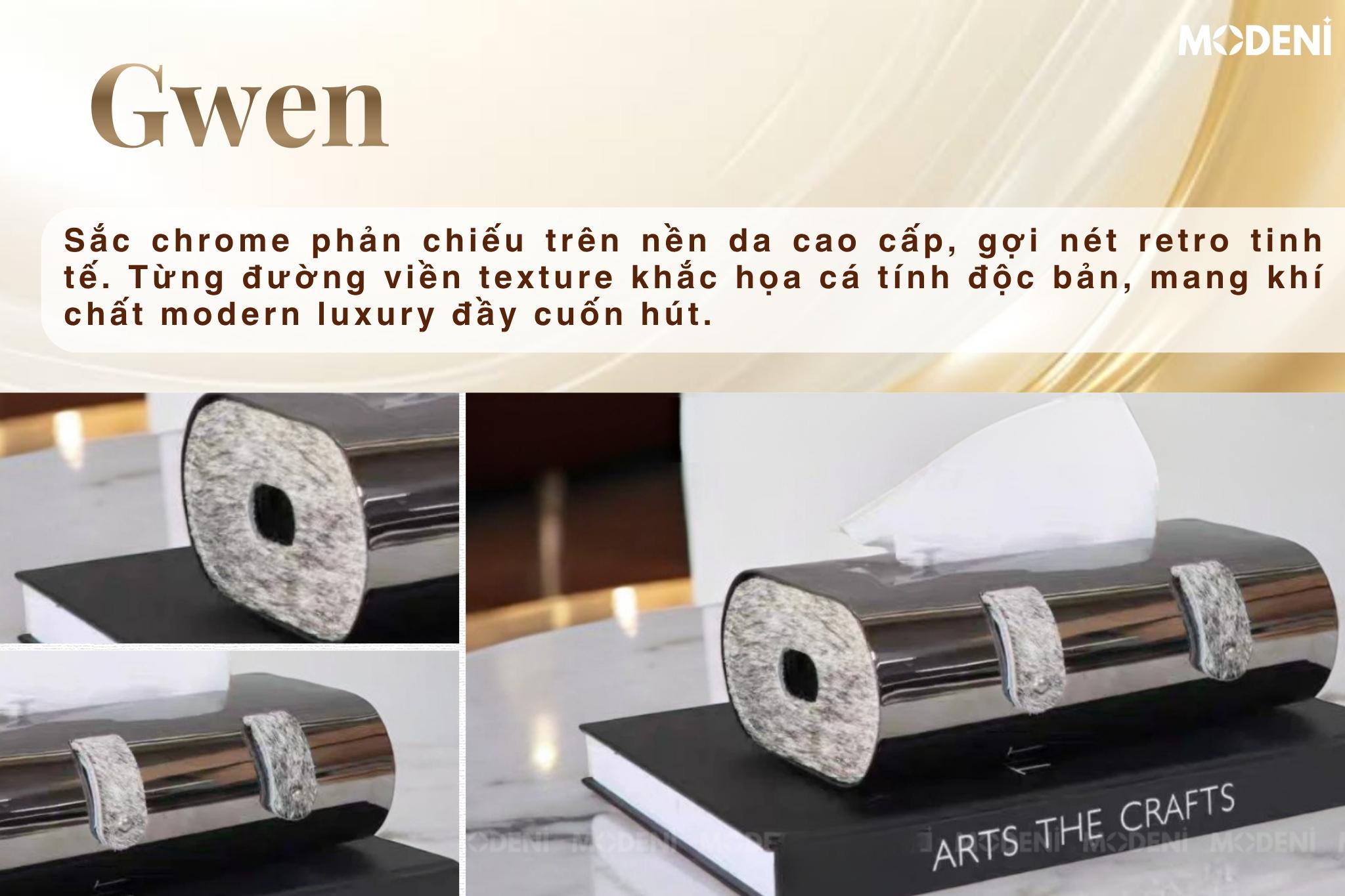 Hộp khăn giấy Gwen da nhân tạo phối kim loại chrome cá tính cho phòng khách