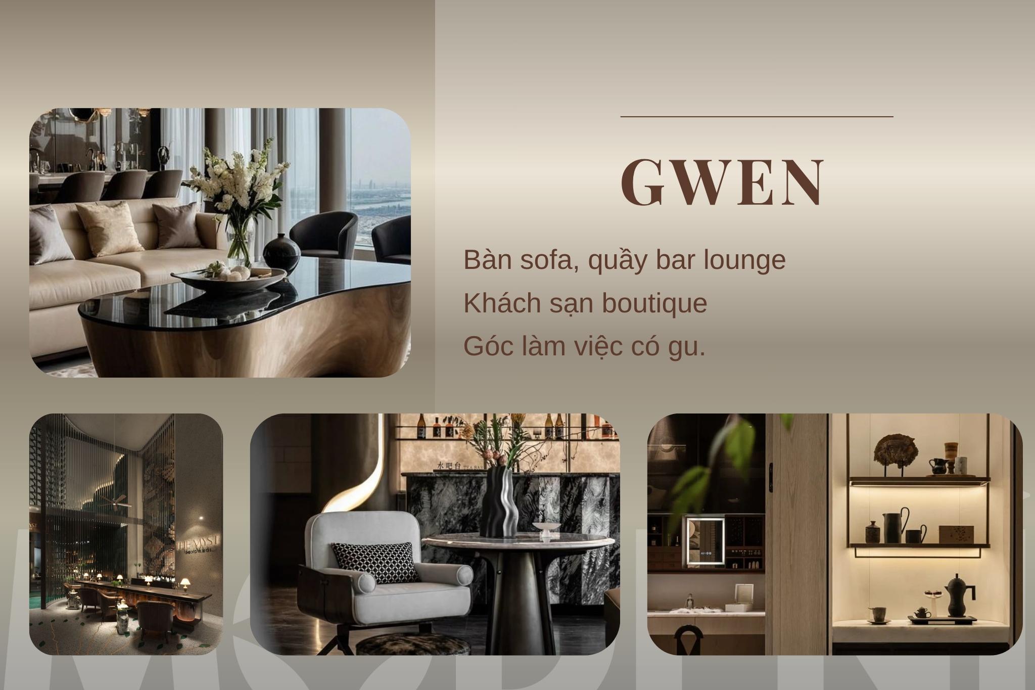 Bàn sofa, quầy bar lounge, khách sạn boutique, góc làm việc có gu. |