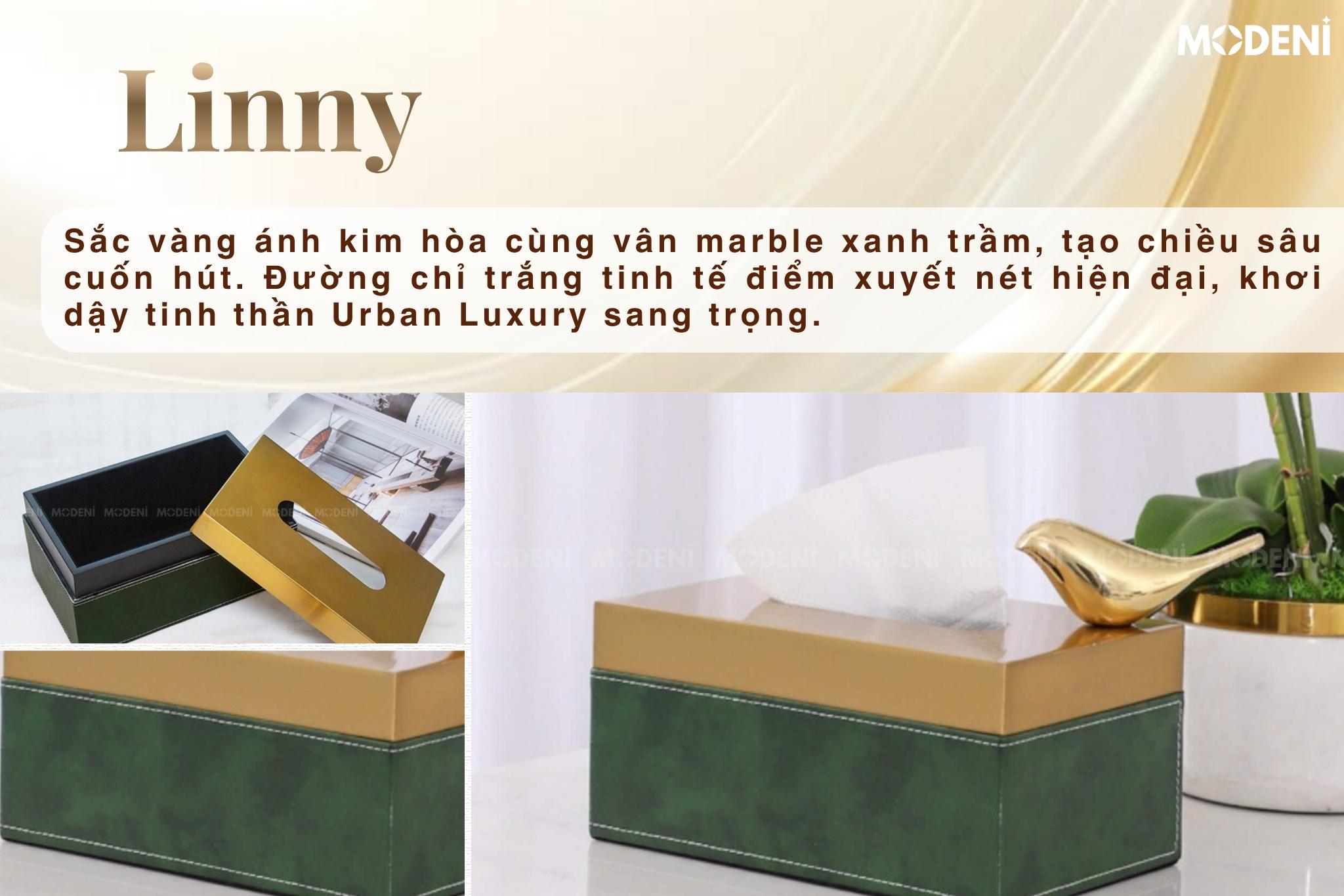 Hộp Khăn Giấy Linny Da Vân Marble Xanh Đậm Phối Nắp Kim Loại Modern Classic Cho Bàn Ăn Và Phòng Ngủ