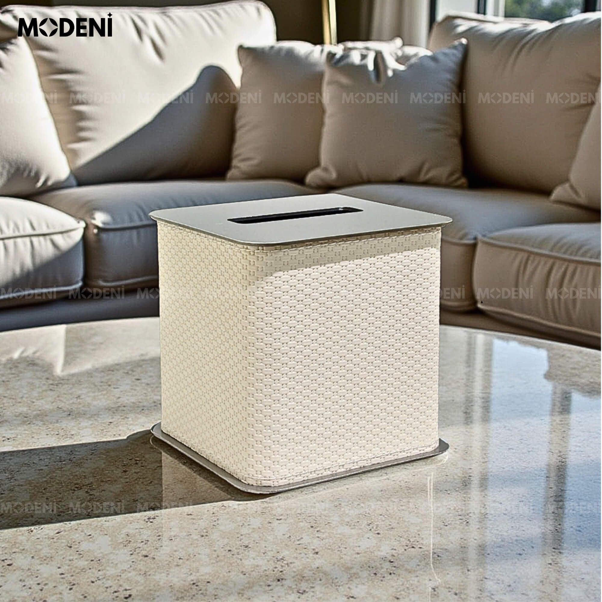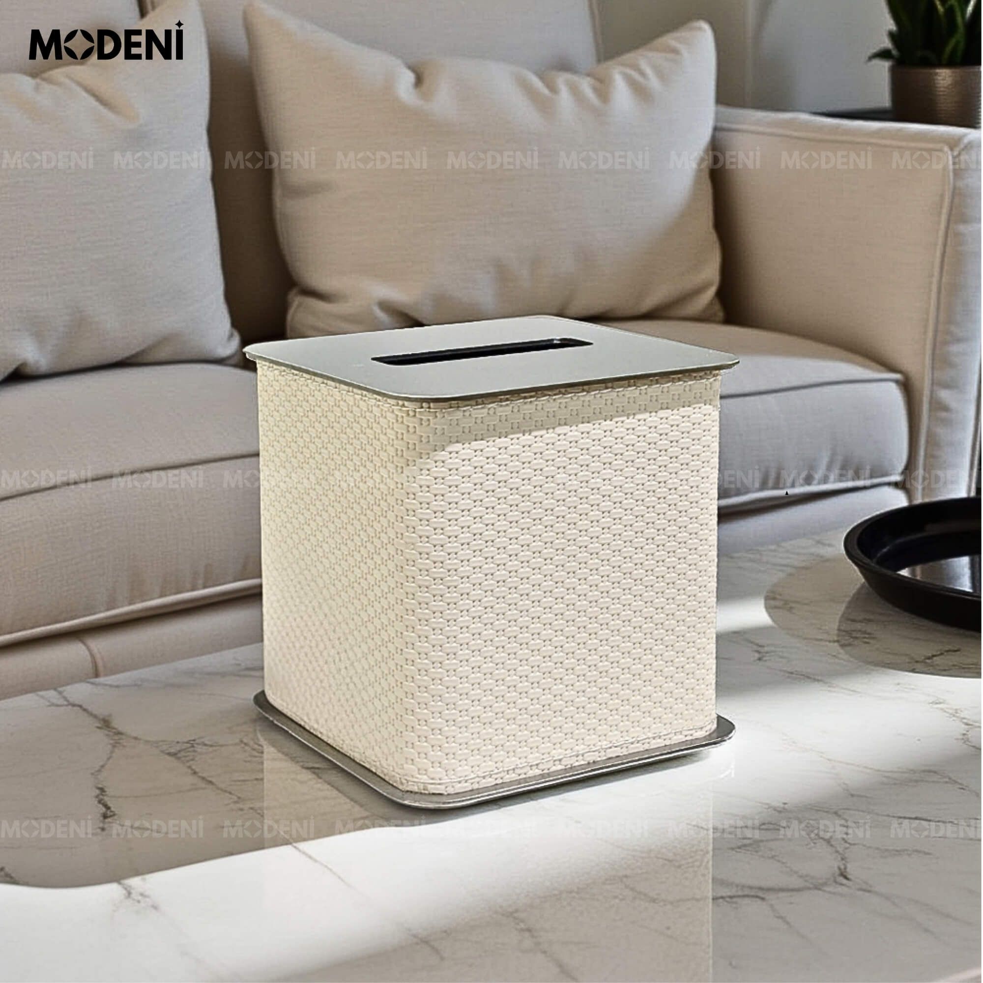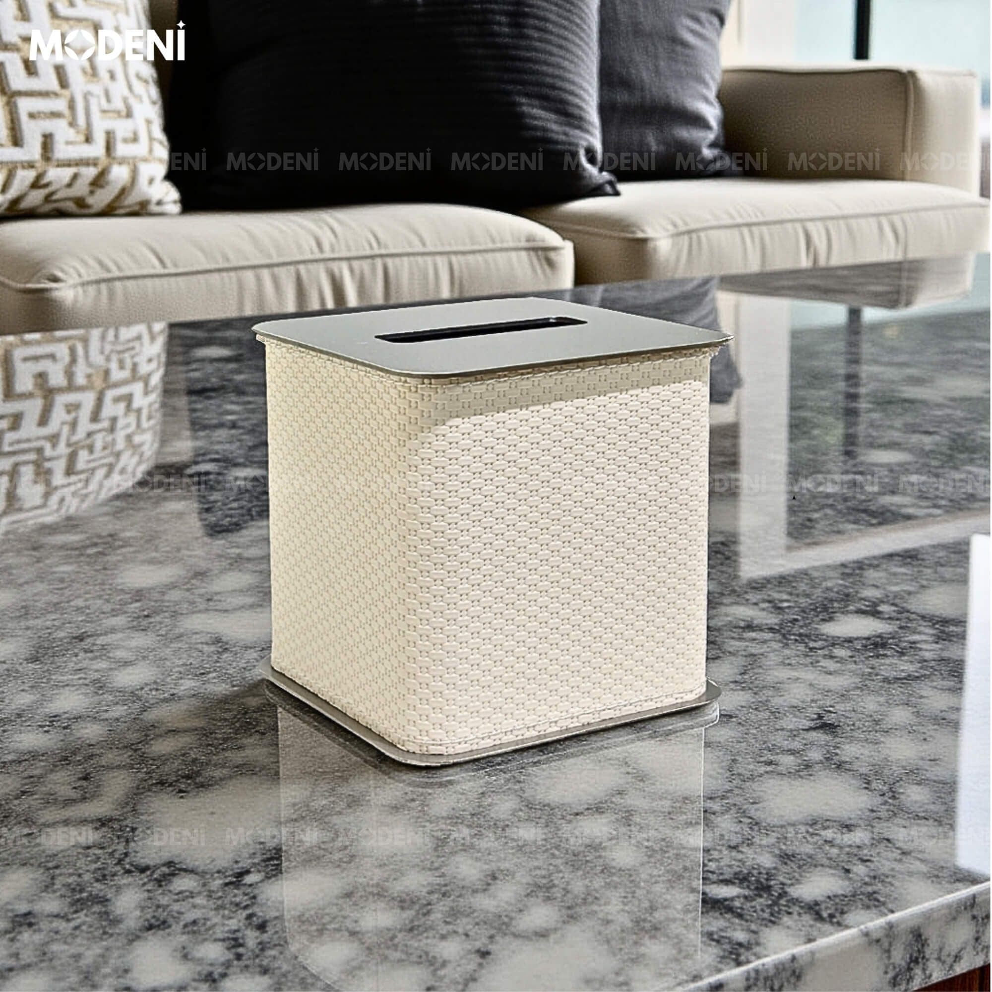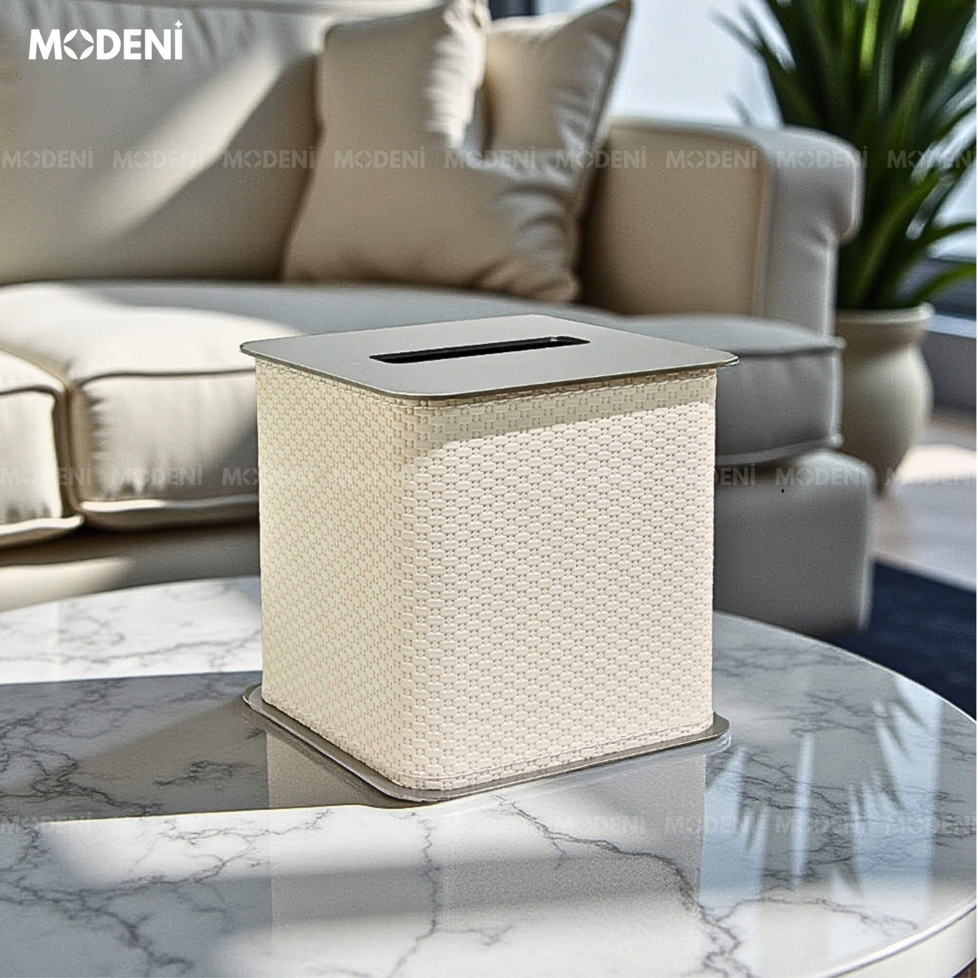 Hộp Khăn Giấy Keris White Vuông Da PU Cao Cấp Nắp Kim Loại Hiện Đại Cho Phòng Khách, Văn Phòng