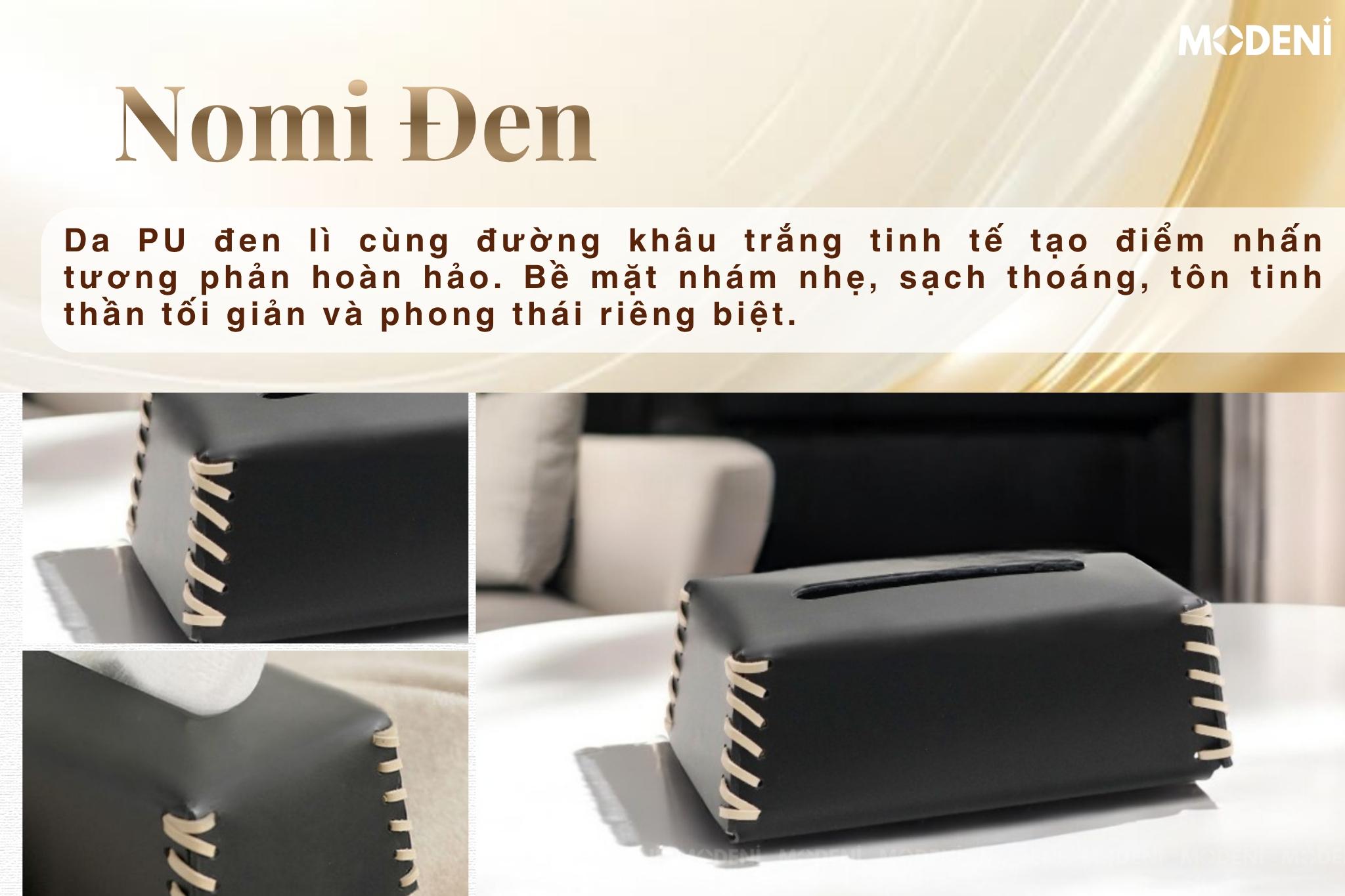 Hộp khăn giấy Nomi Đen da PU cao cấp khâu tay thủ công Clean Style đậm chất cá nhân cho phòng ngủ