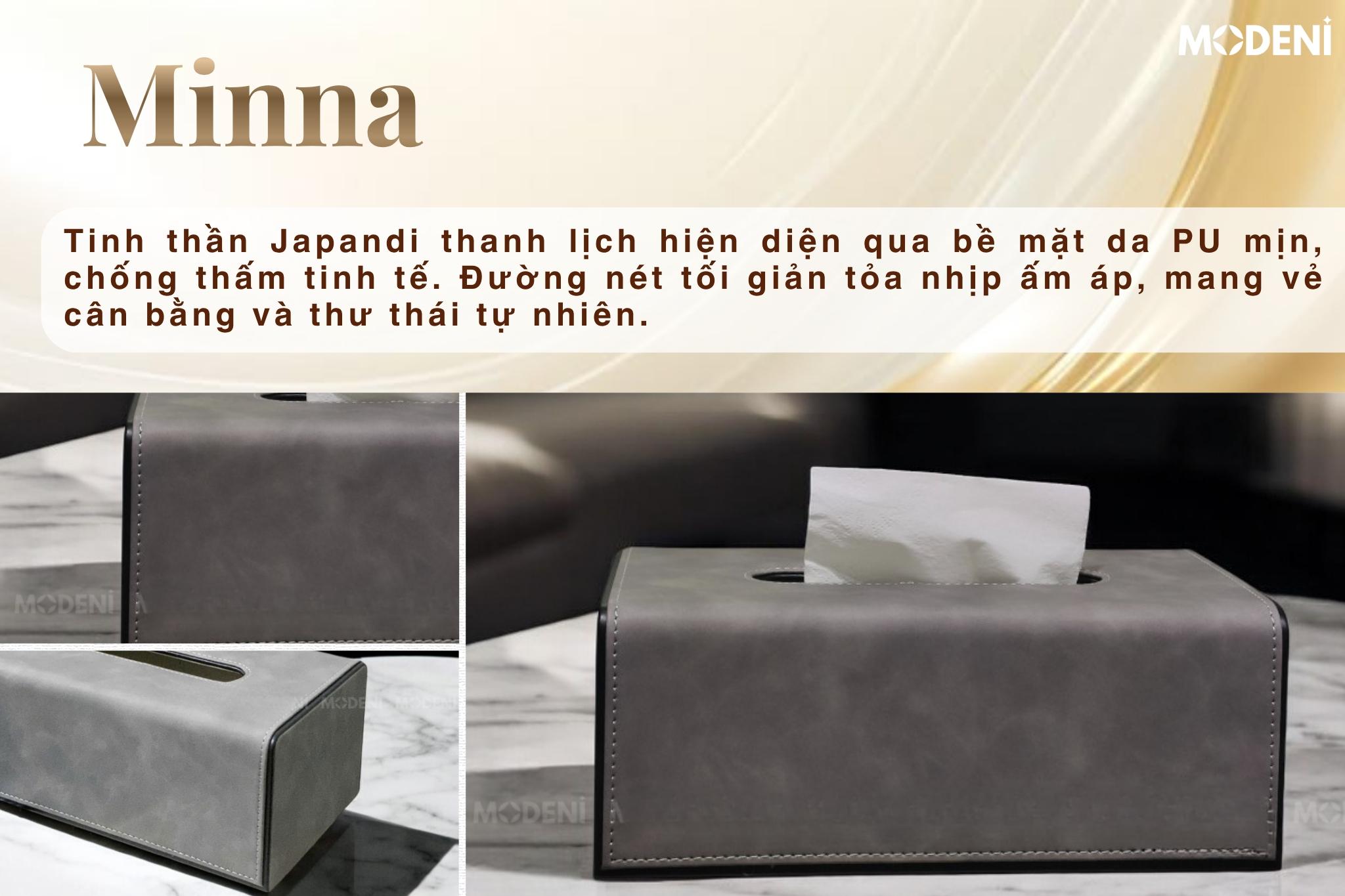 Hộp Khăn Giấy Minna Da PU Cao Cấp Phong Cách Japandi Tối Giản Hiện Đại Cho Phòng Khách Và Bàn Làm Việc