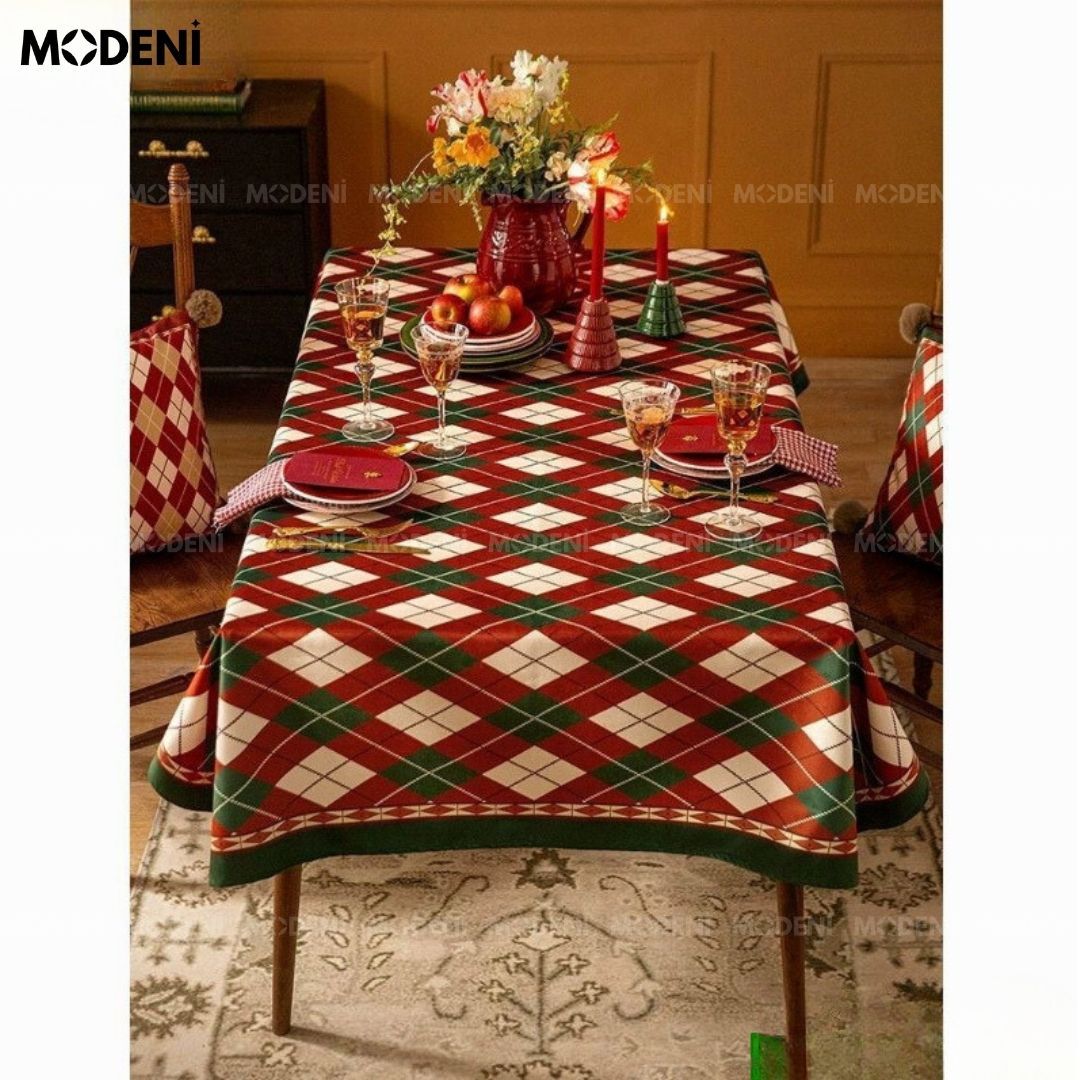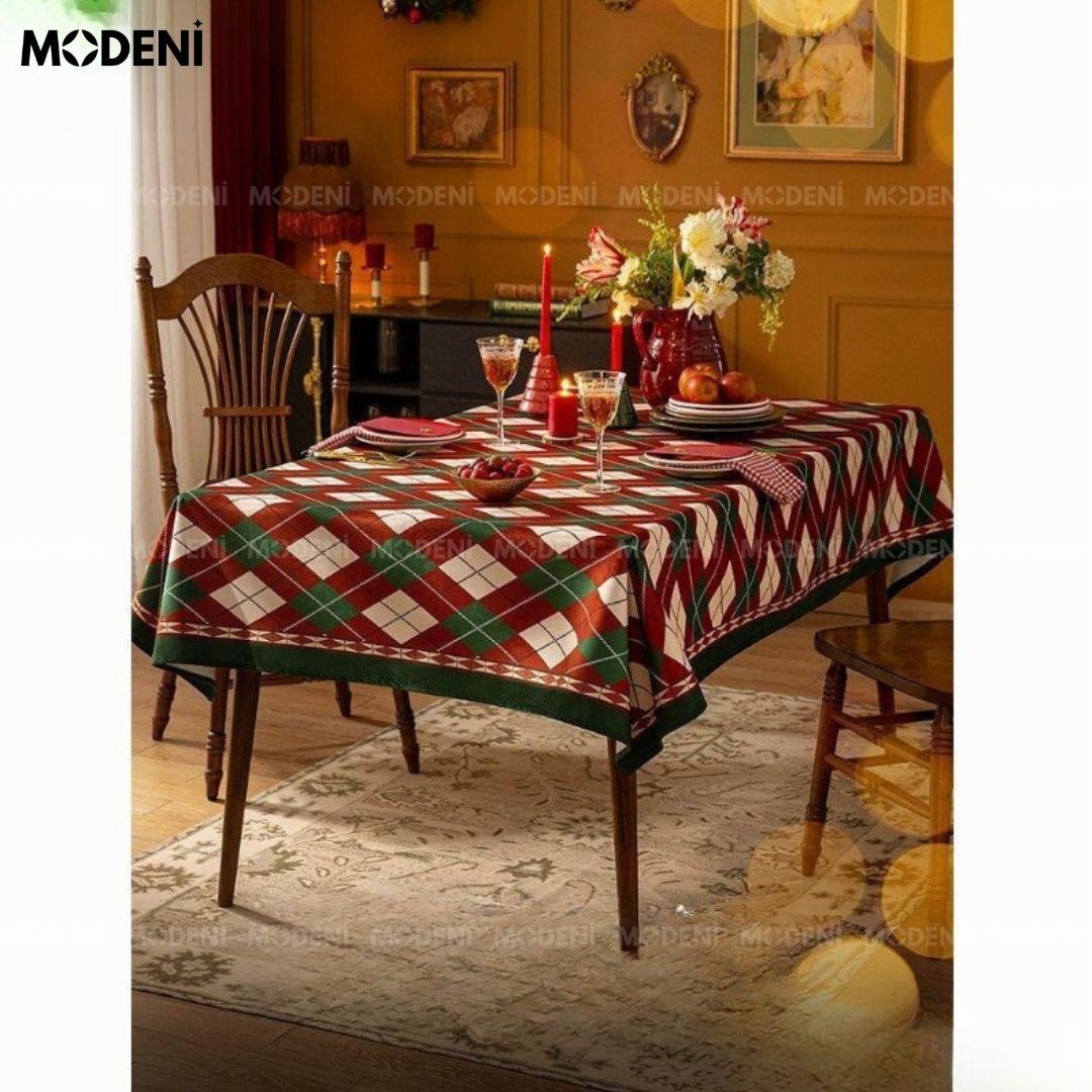 Khăn Trải Bàn Jully Sọc Caro Cao Cấp – Decor Bàn Ăn Ấm Cúng Sang Trọng 140x200cm