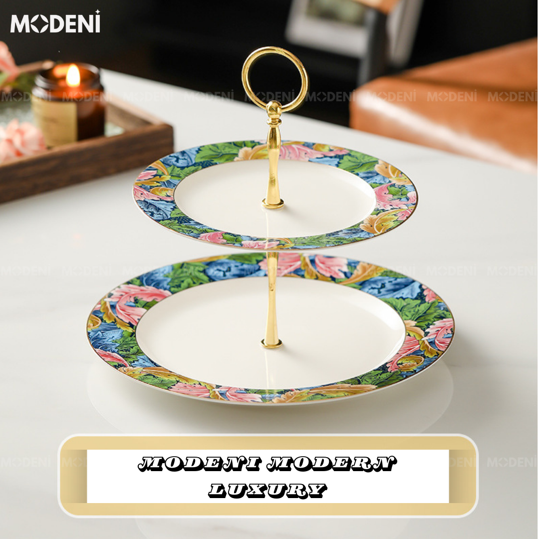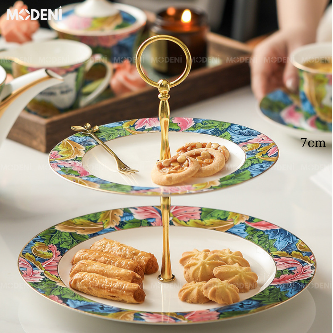 Khay 2 Tầng Forestine – Khay Đựng Bánh Trái Cao Cấp, Hoạ Tiết Sứ Nghệ Thuật, Trang Trí Tiệc Trà & Bàn Ăn Sang Trọng