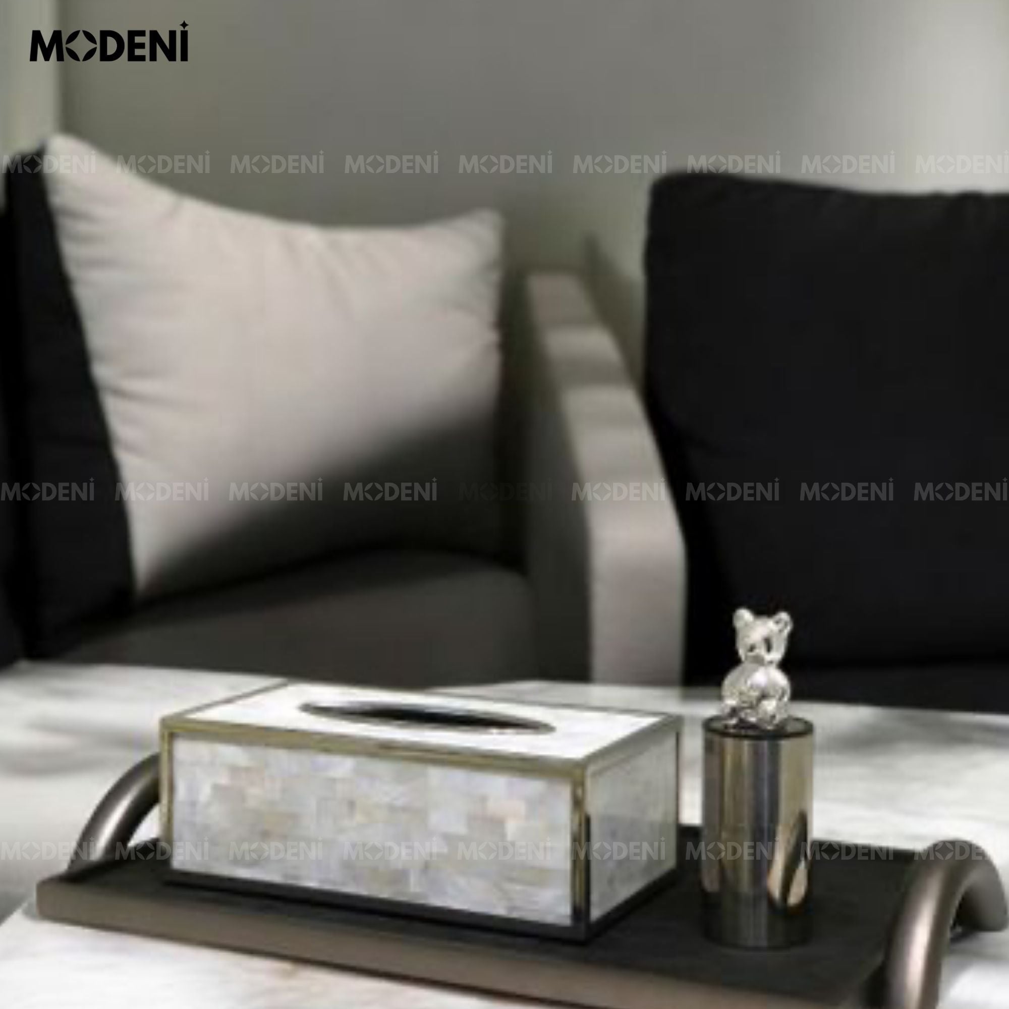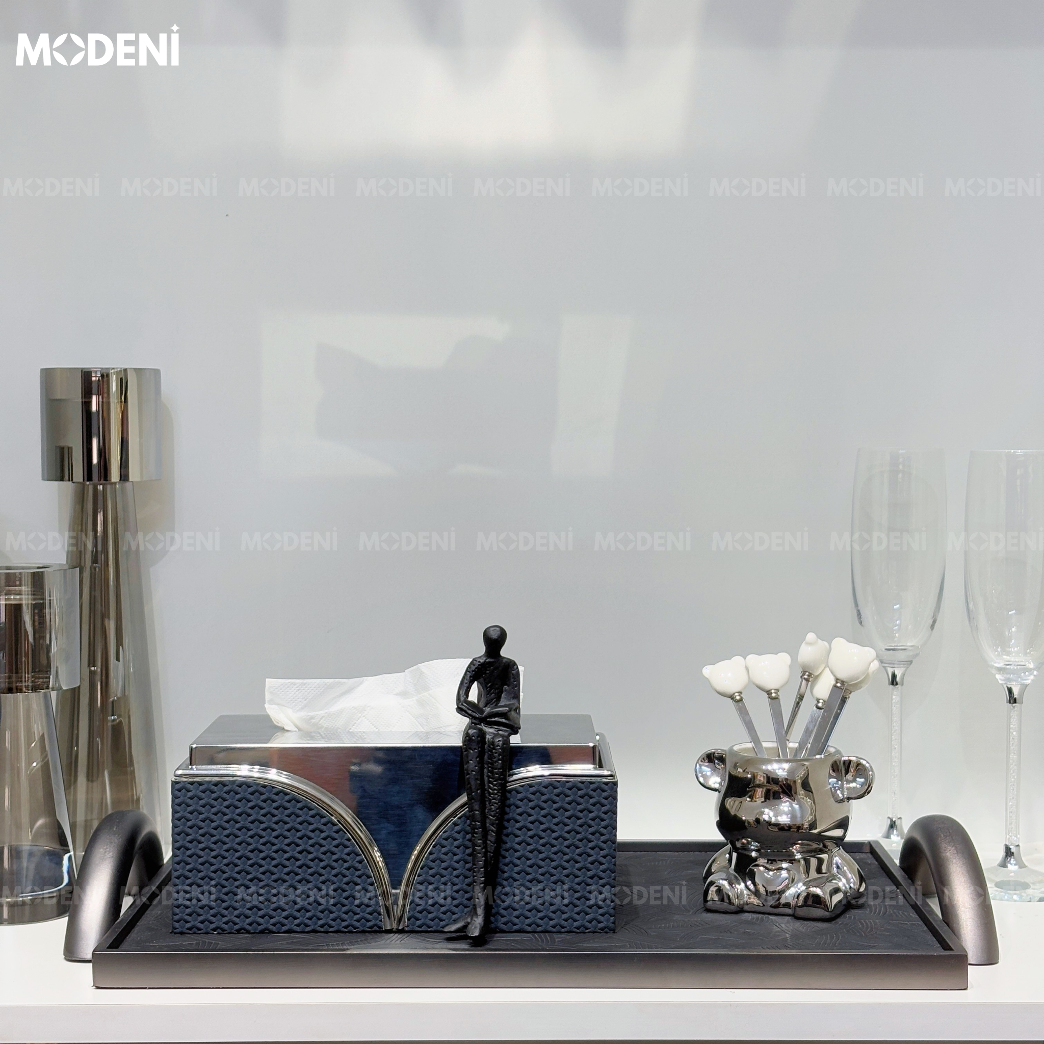 Phong cách modern minimalist với tone đen chủ đạo, đường nét dứt khoát, tay cầm cong mềm tạo điểm nhấn hiện đại. Phù hợp đặt tại phòng khách, bàn sofa, bàn console hoặc bàn làm việc nam tính – có gu. |