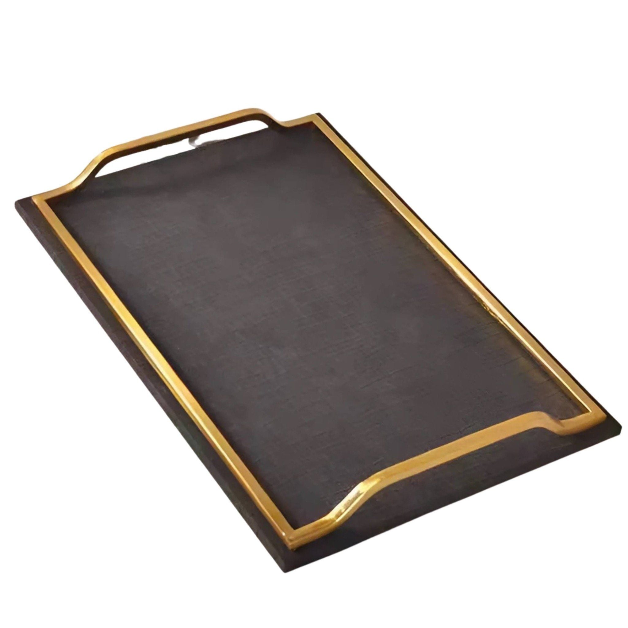 Khay Chữ Nhật Donald – Khay Decor Sang Trọng Tay Cầm Vàng – Da Đen Phủ Nhám – Trang Trí Bàn Sofa & Kệ Tủ Hiện Đại
