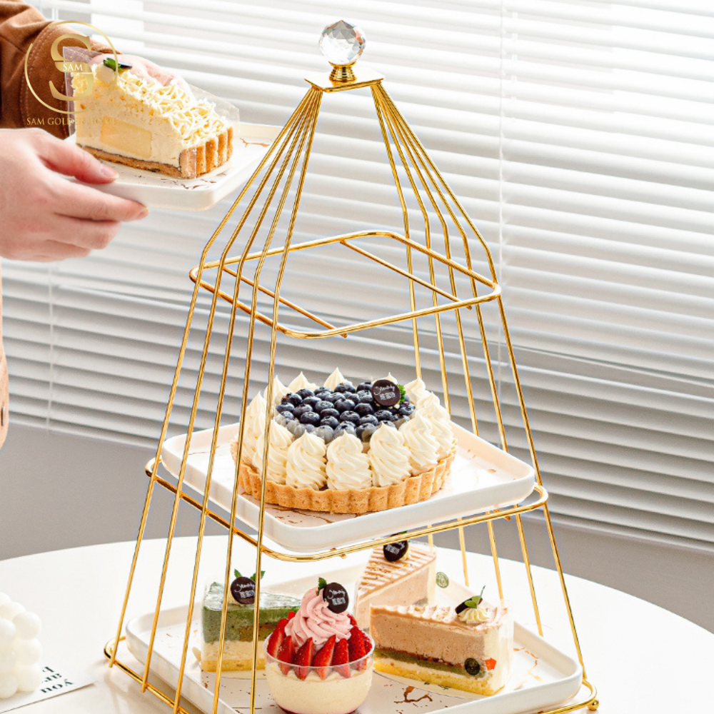 Khay Đĩa Tầng Bondine Mạ Vàng Sang Trọng | 3 Tầng | Kèm Đĩa