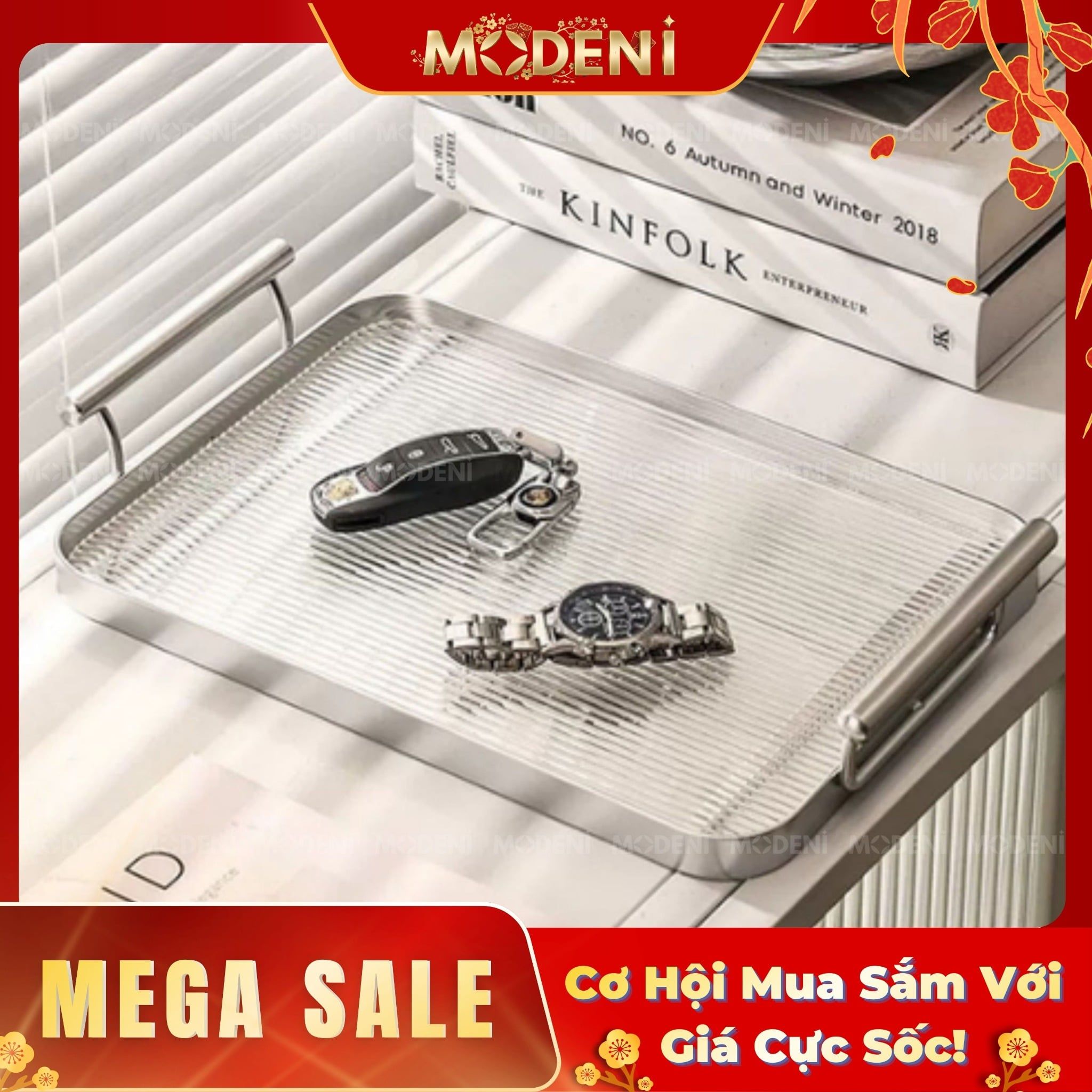 Khay Oriana Silver – Khay Decor Bắc Âu Sang Trọng – Tay Cầm Vàng Tinh Tế, Đựng Bánh Kẹo, Đồ Uống