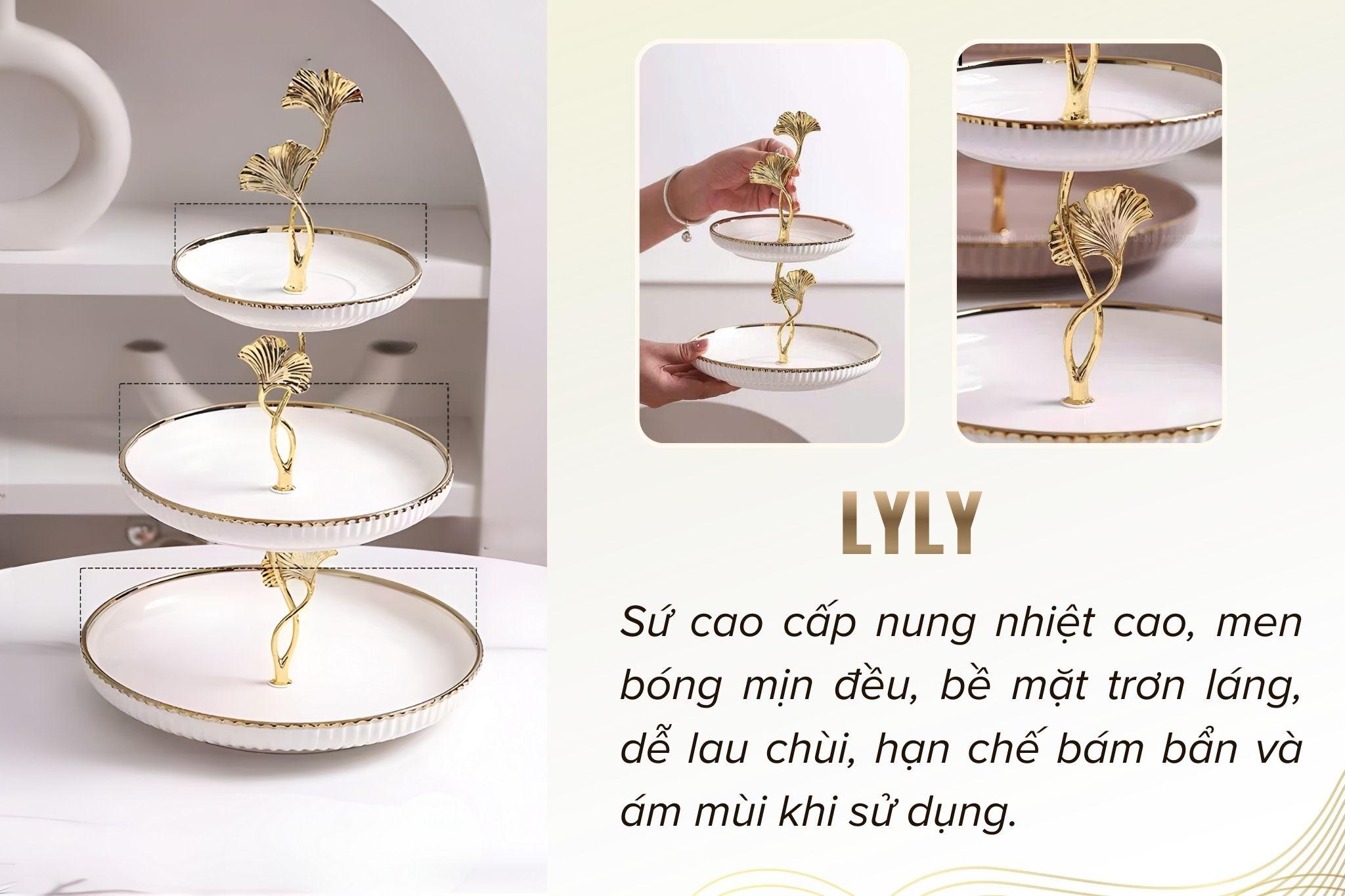 Khay Đựng Trái Cây Lyly Gốm Sứ Phủ Men Trắng Ngọc Họa Tiết Viền Mạ Vàng Cho Bàn Ăn Hiện Đại