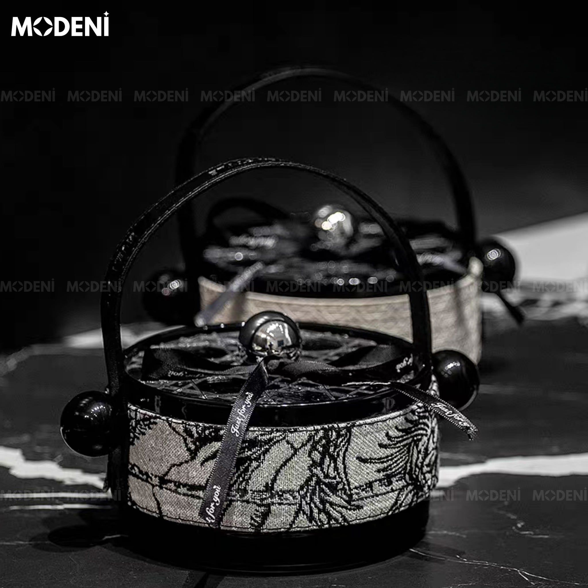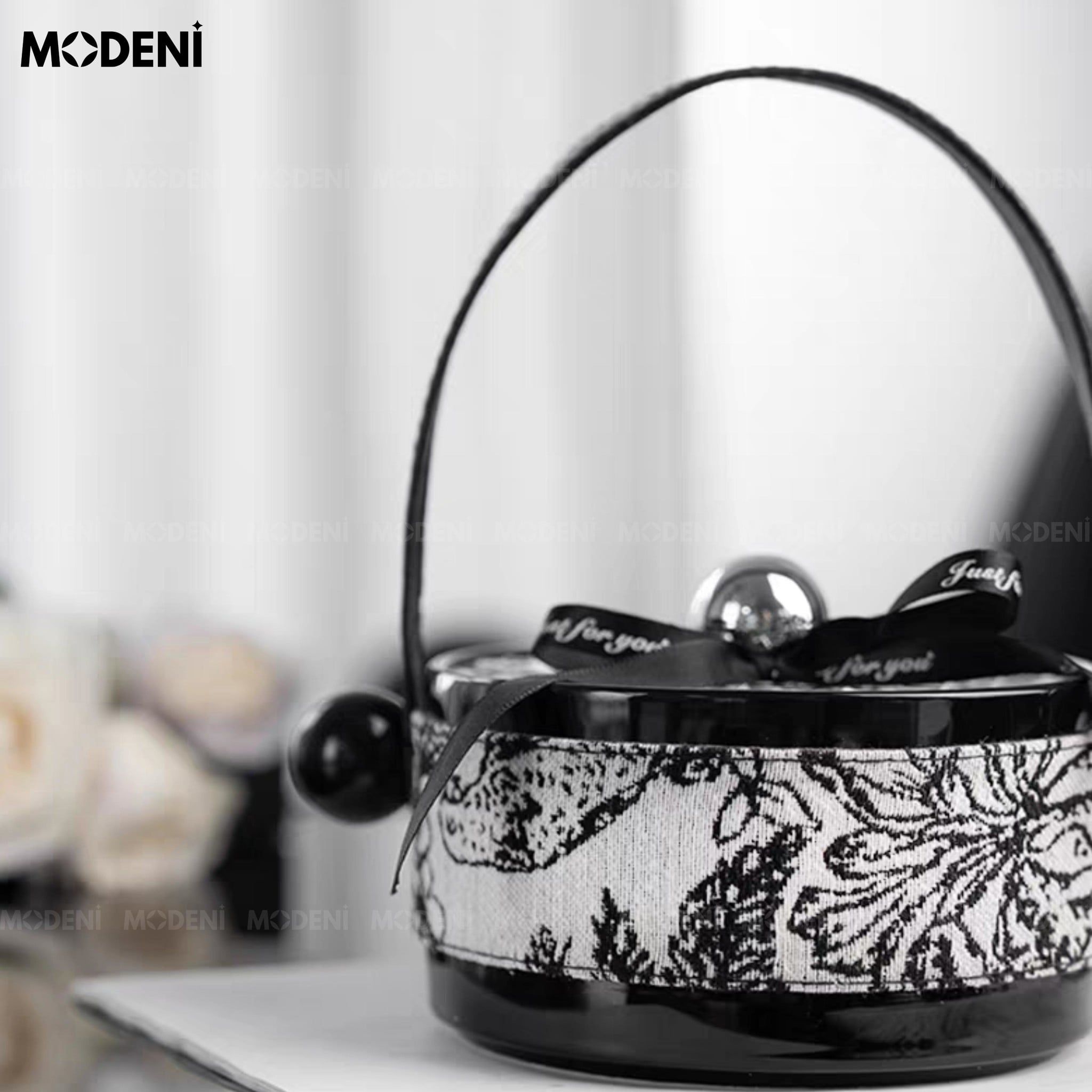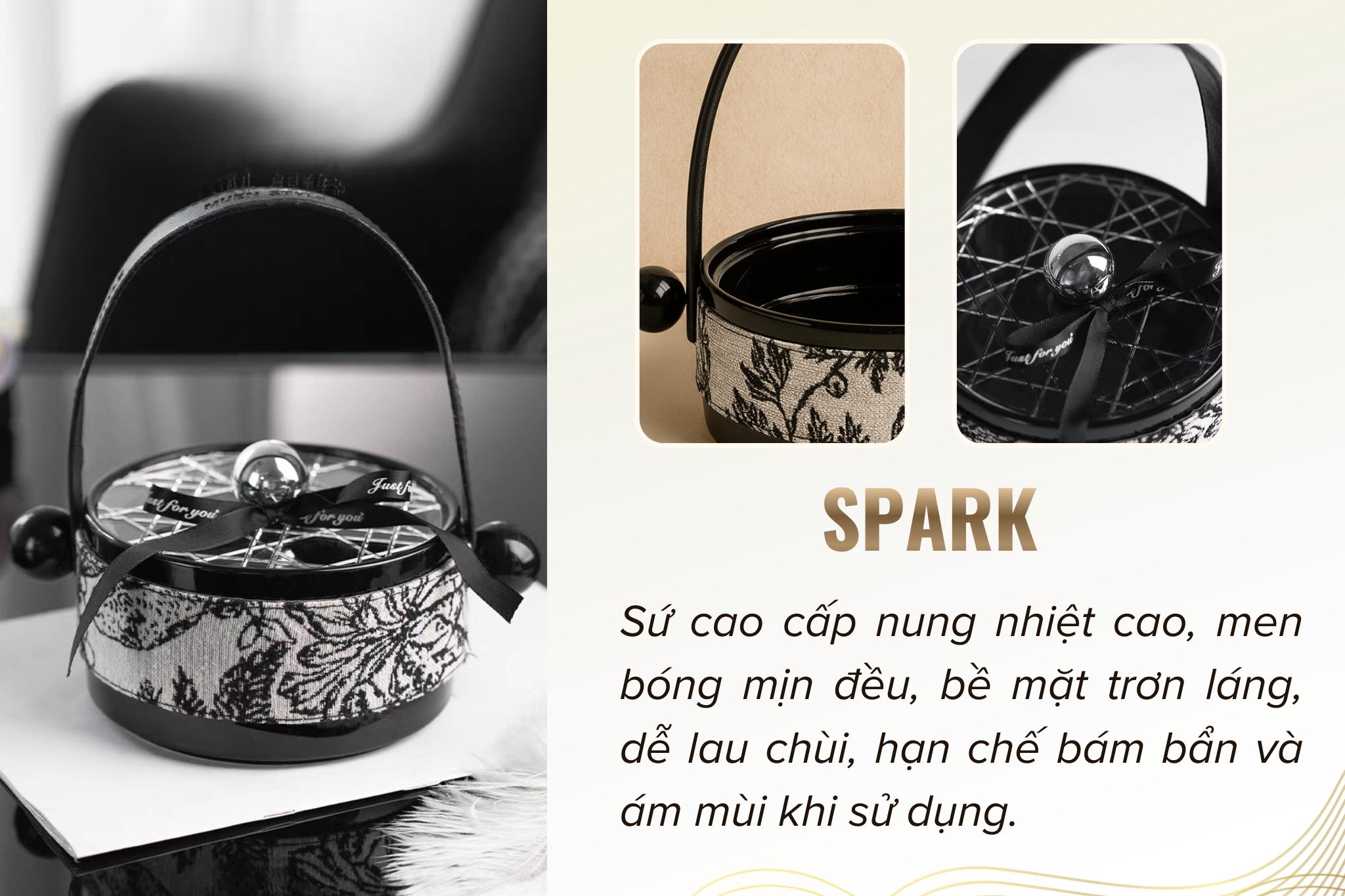 | Chất liệu | Gốm sứ cao cấp phủ men đen bóng Vỏ ngoài bọc vải họa tiết hoa cổ điển |