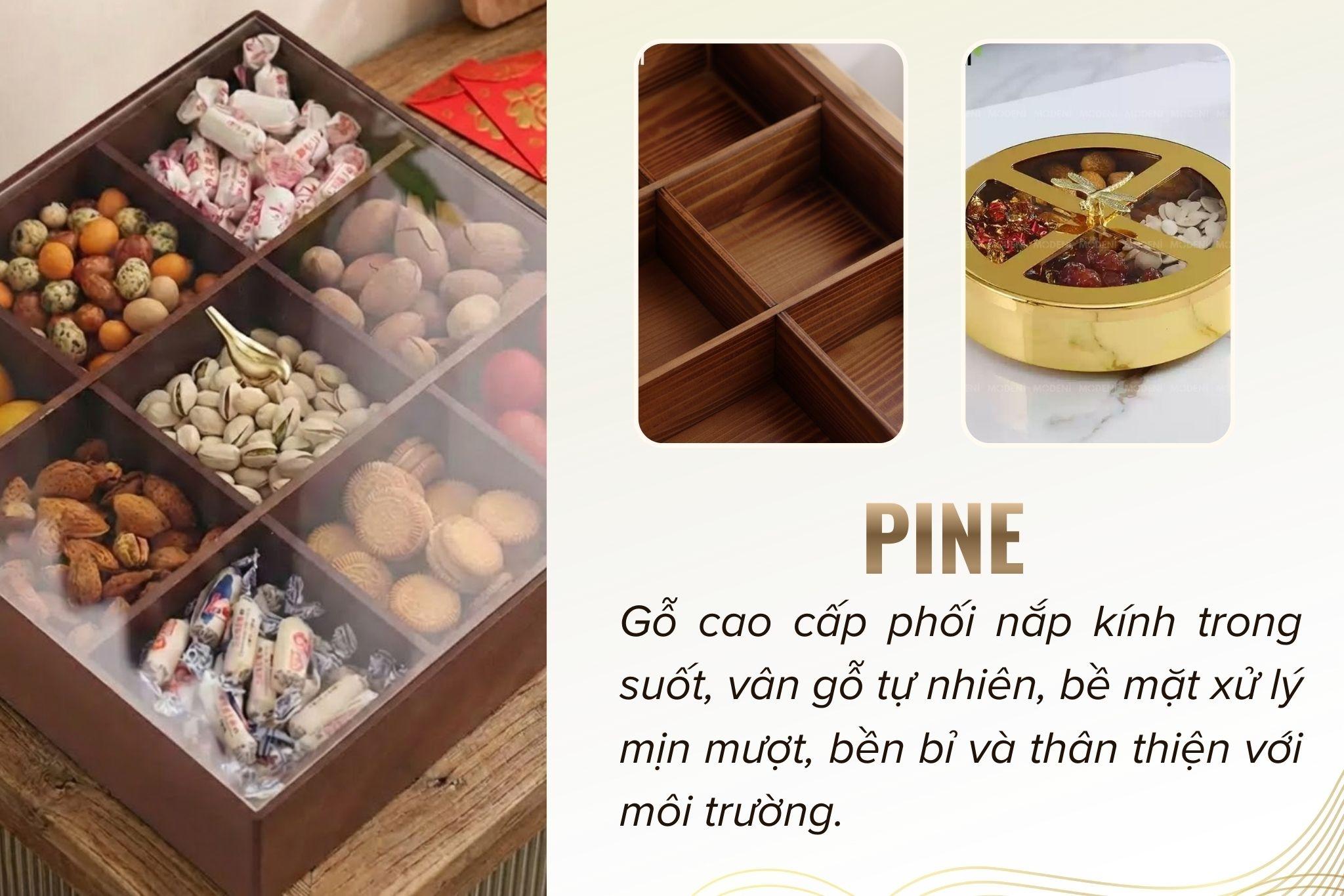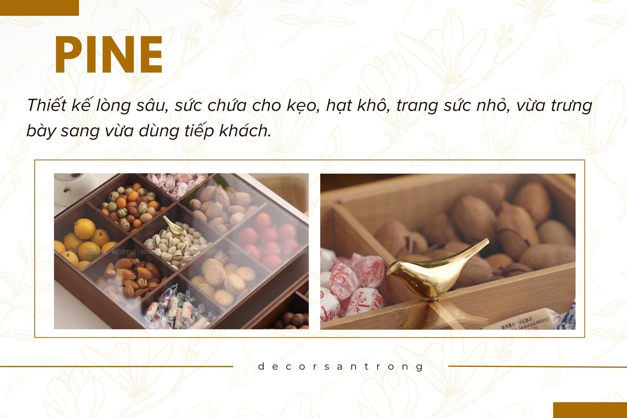 Khay Mứt Tết Pine Nắp Chú Chim 1 Tầng Hiện Đại Sang Trọng