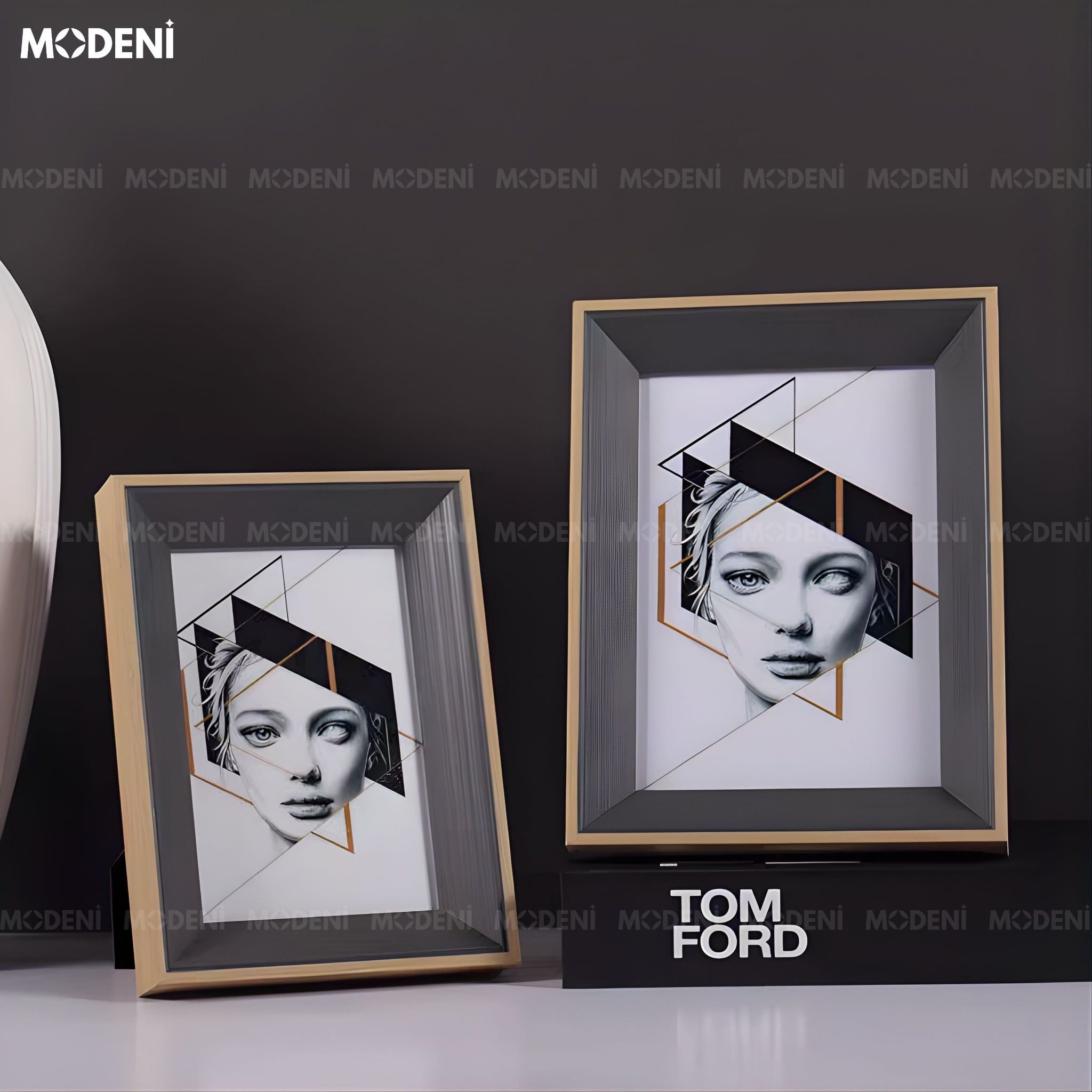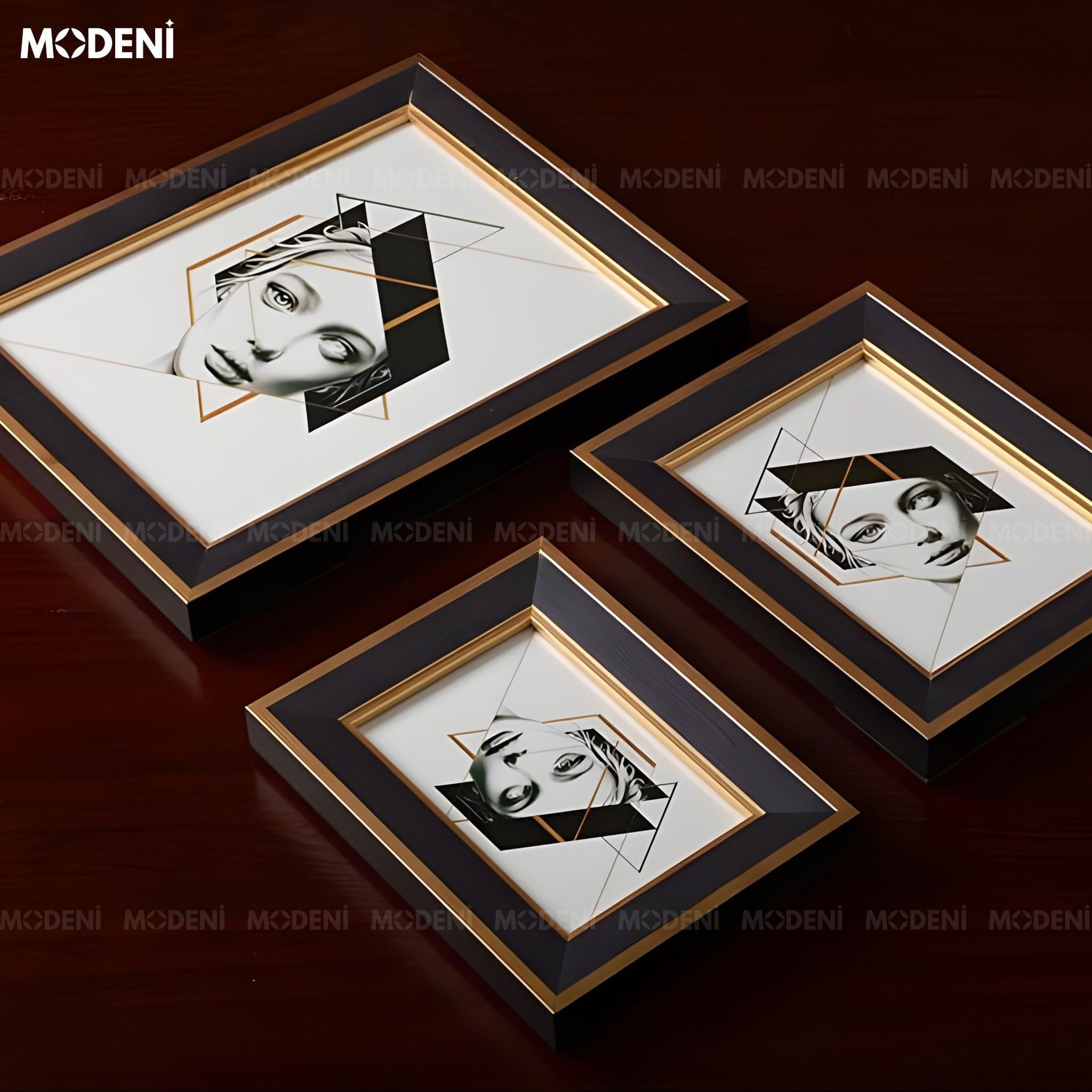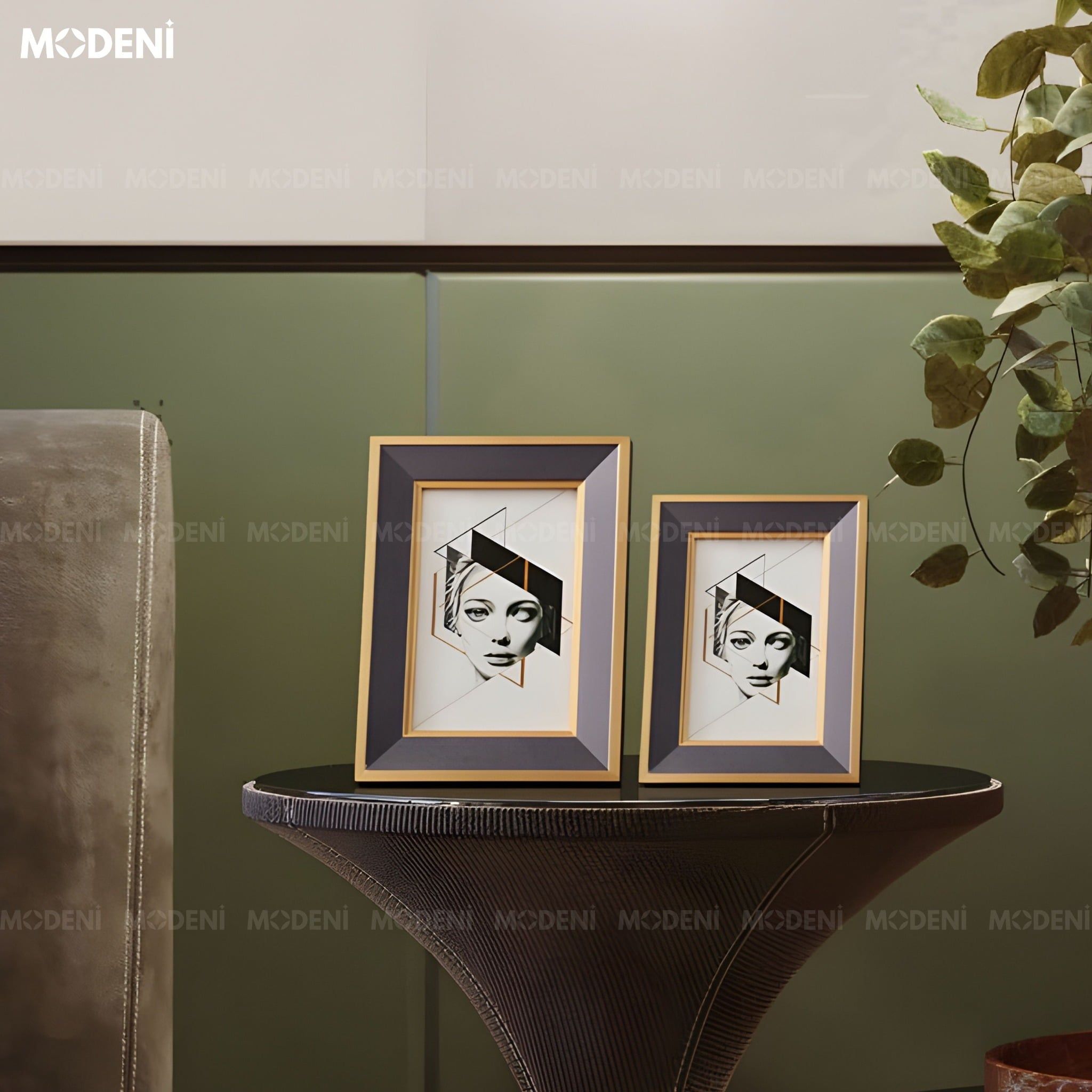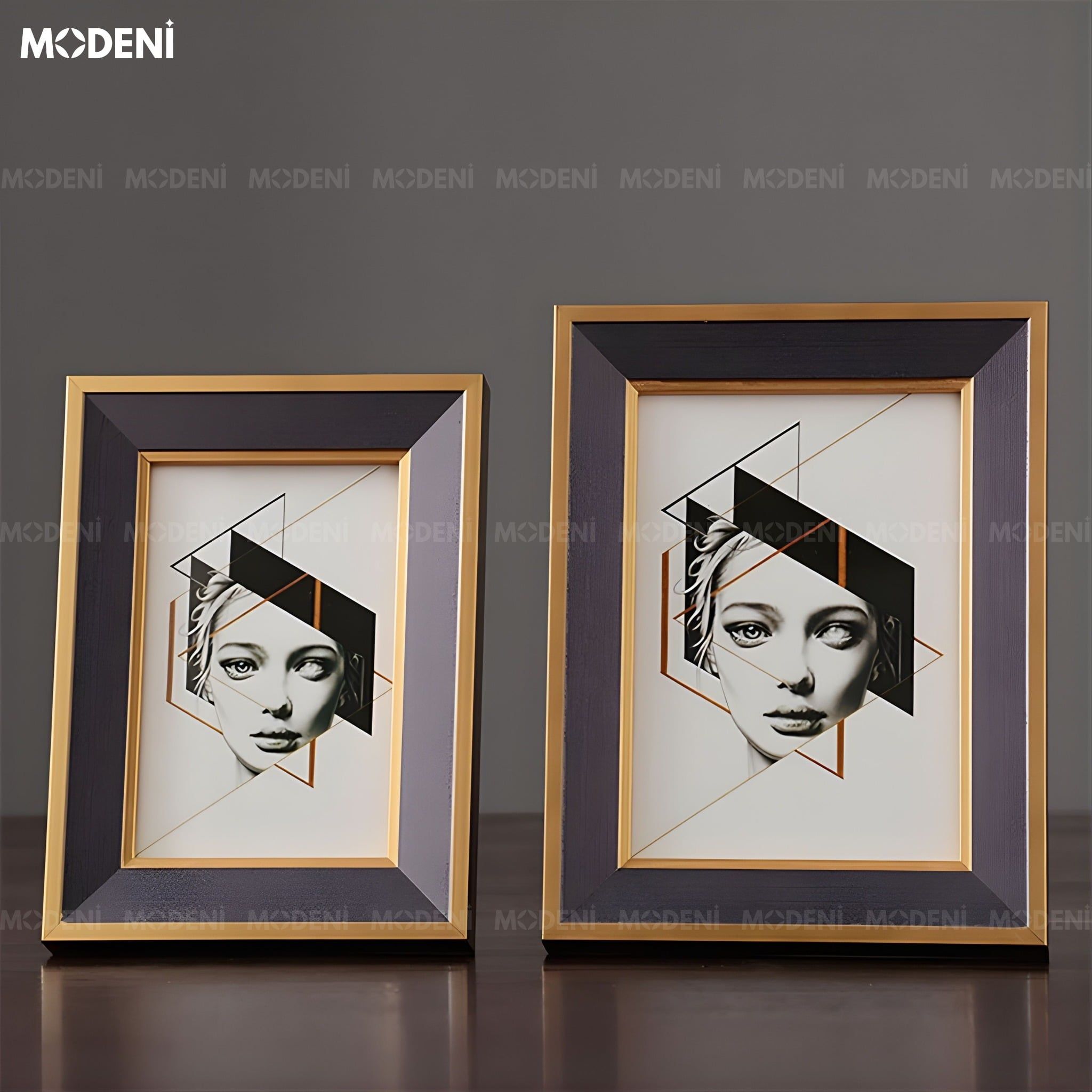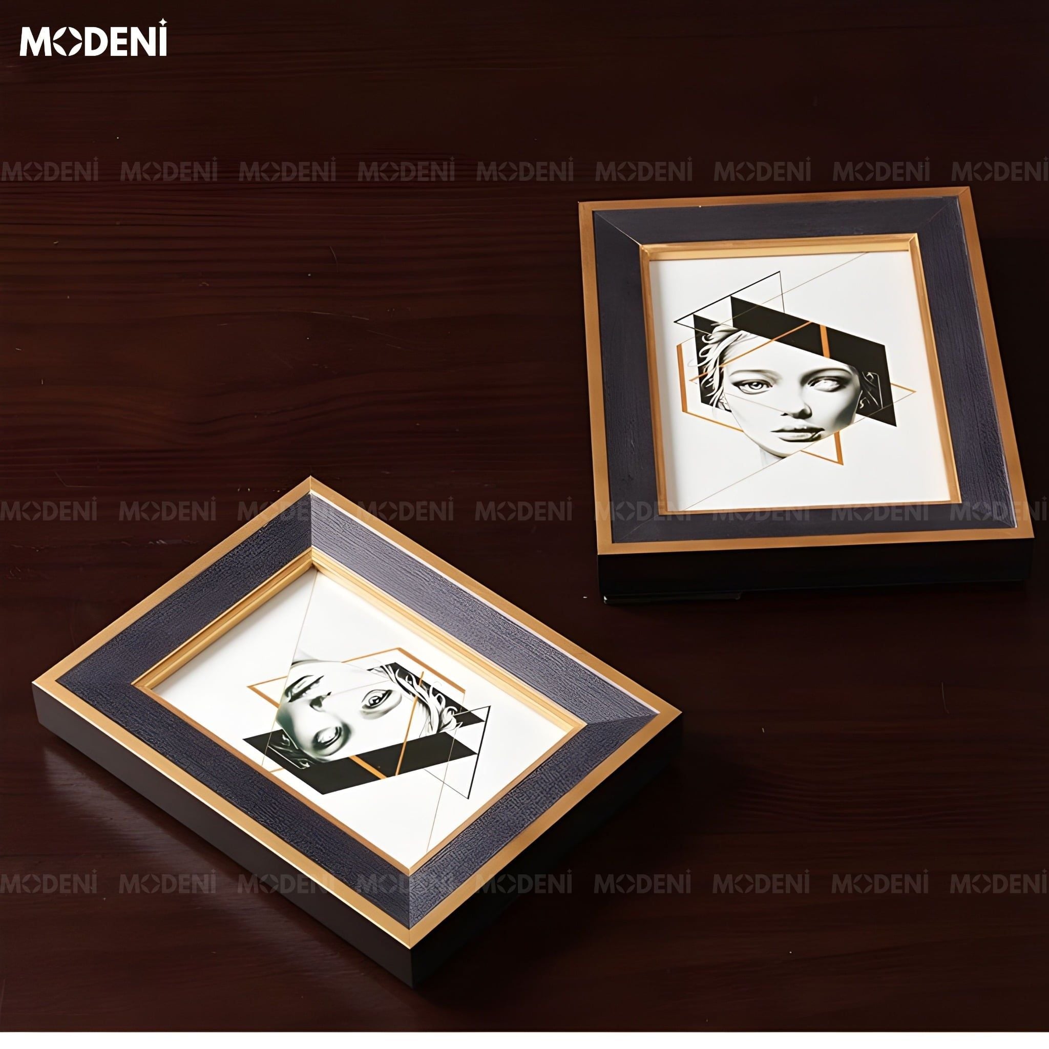 Khung Ảnh Rinia Gỗ Phối Thủy Tinh Hoa Văn Vân Gỗ Phối Ánh Kim Sang Trọng Cho Không Gian Hiện Đại