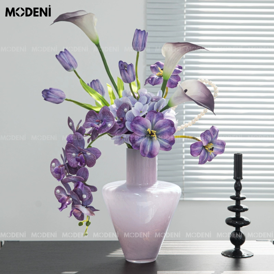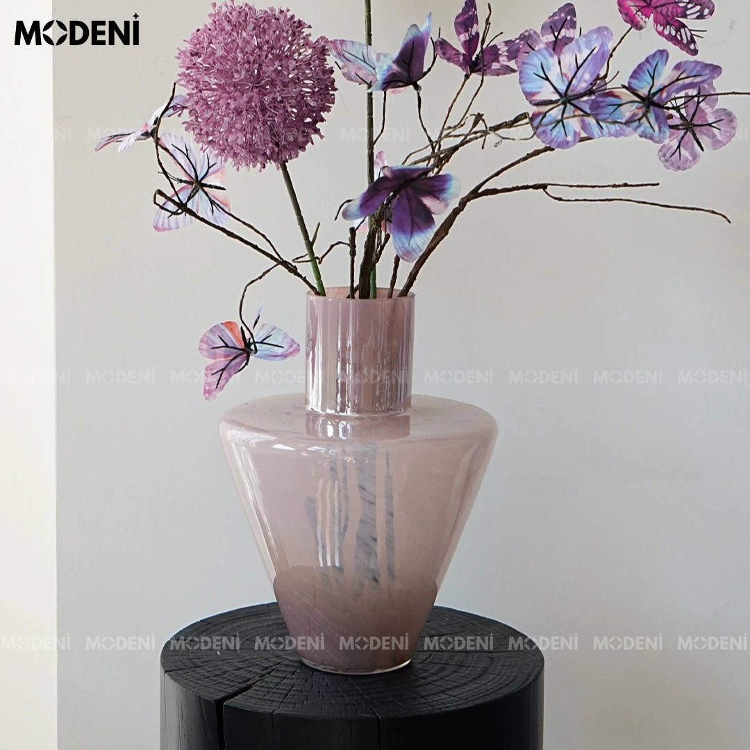 Bình Hoa Lush Thủy Tinh Cao Cấp – Decor Bàn Sang Trọng – Màu Tím Hồng Nhạt 30cm Phù Hợp Phòng Khách, Console