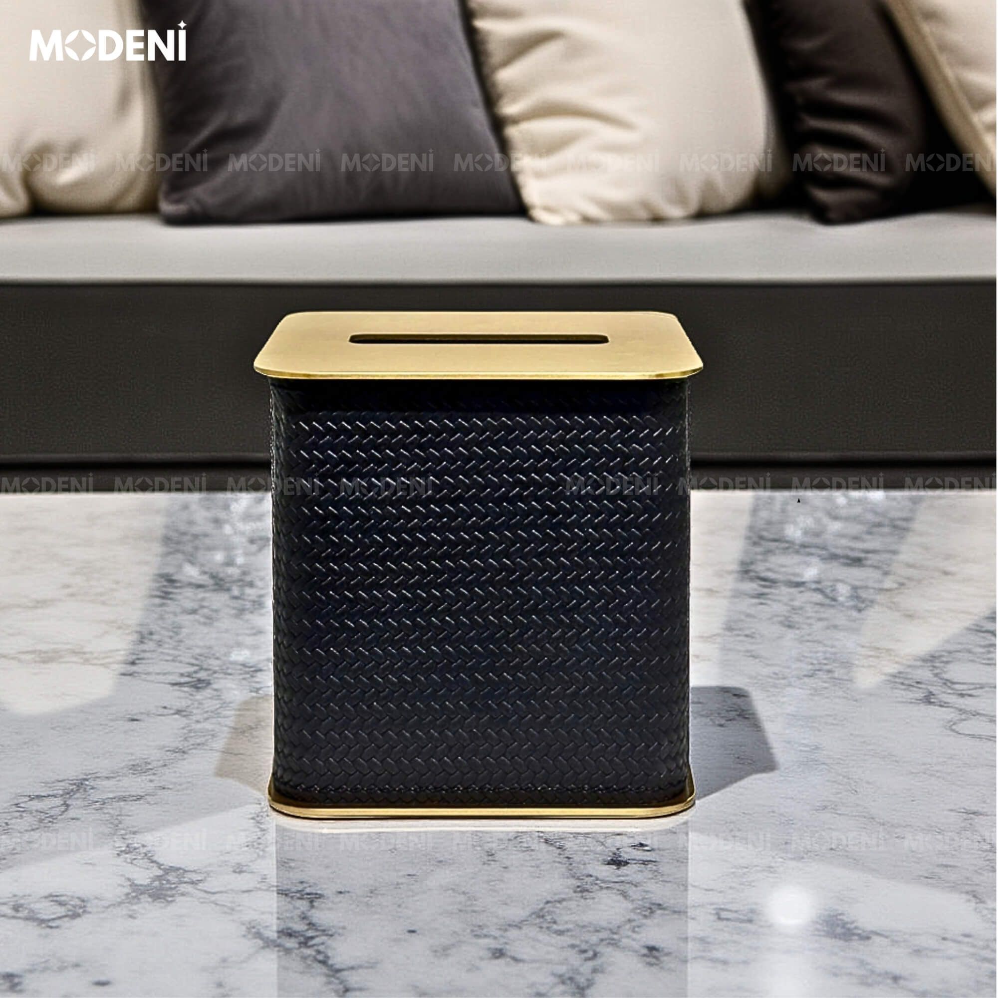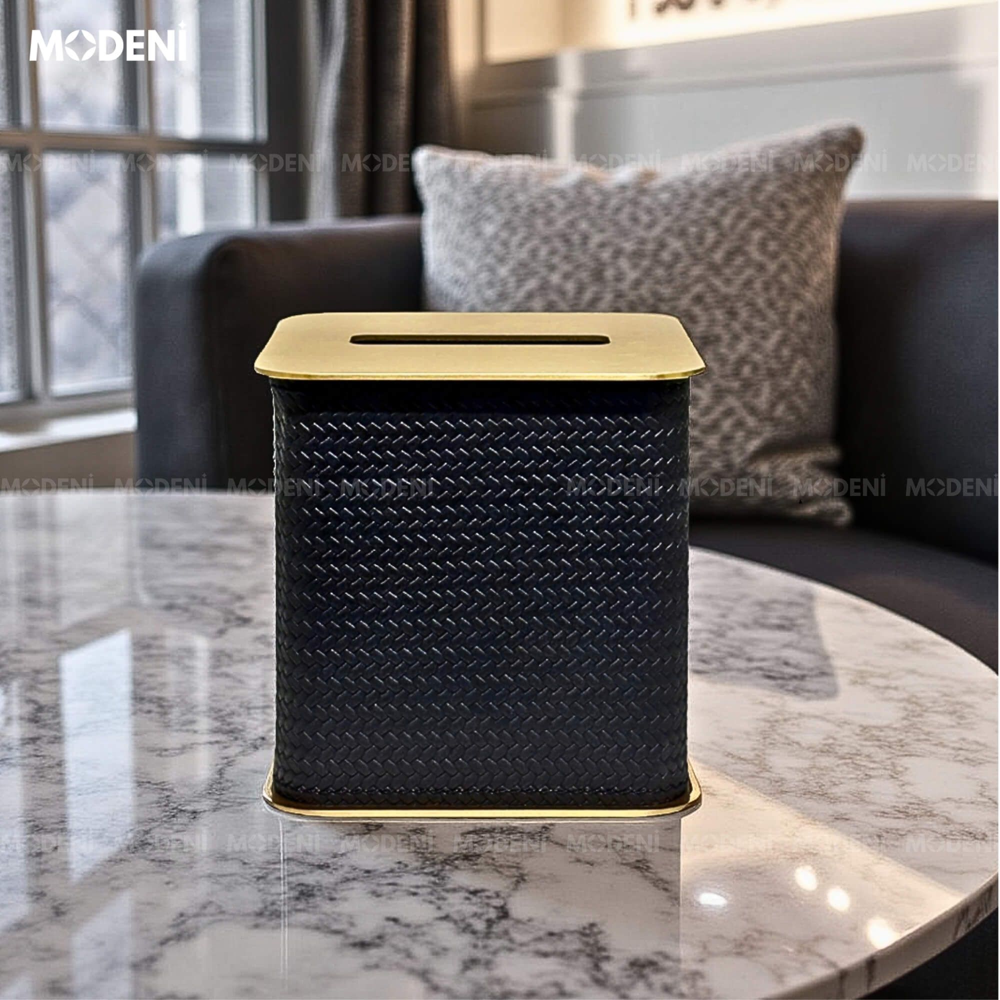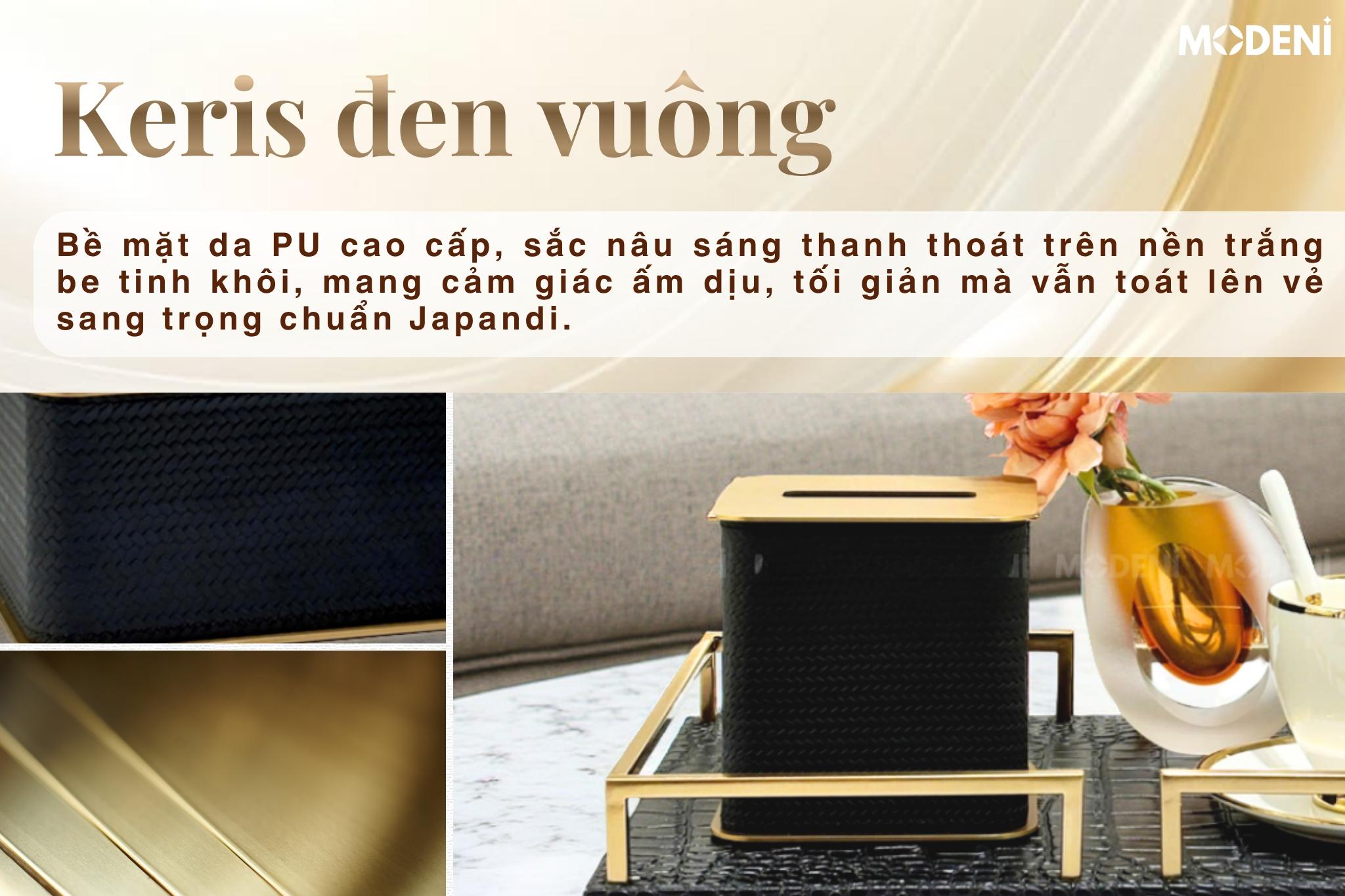 Hộp Khăn Giấy Keris Vuông Đen Da PU Cao Cấp Nắp Kim Loại Sang Trọng Cho Phòng Khách Và Văn Phòng