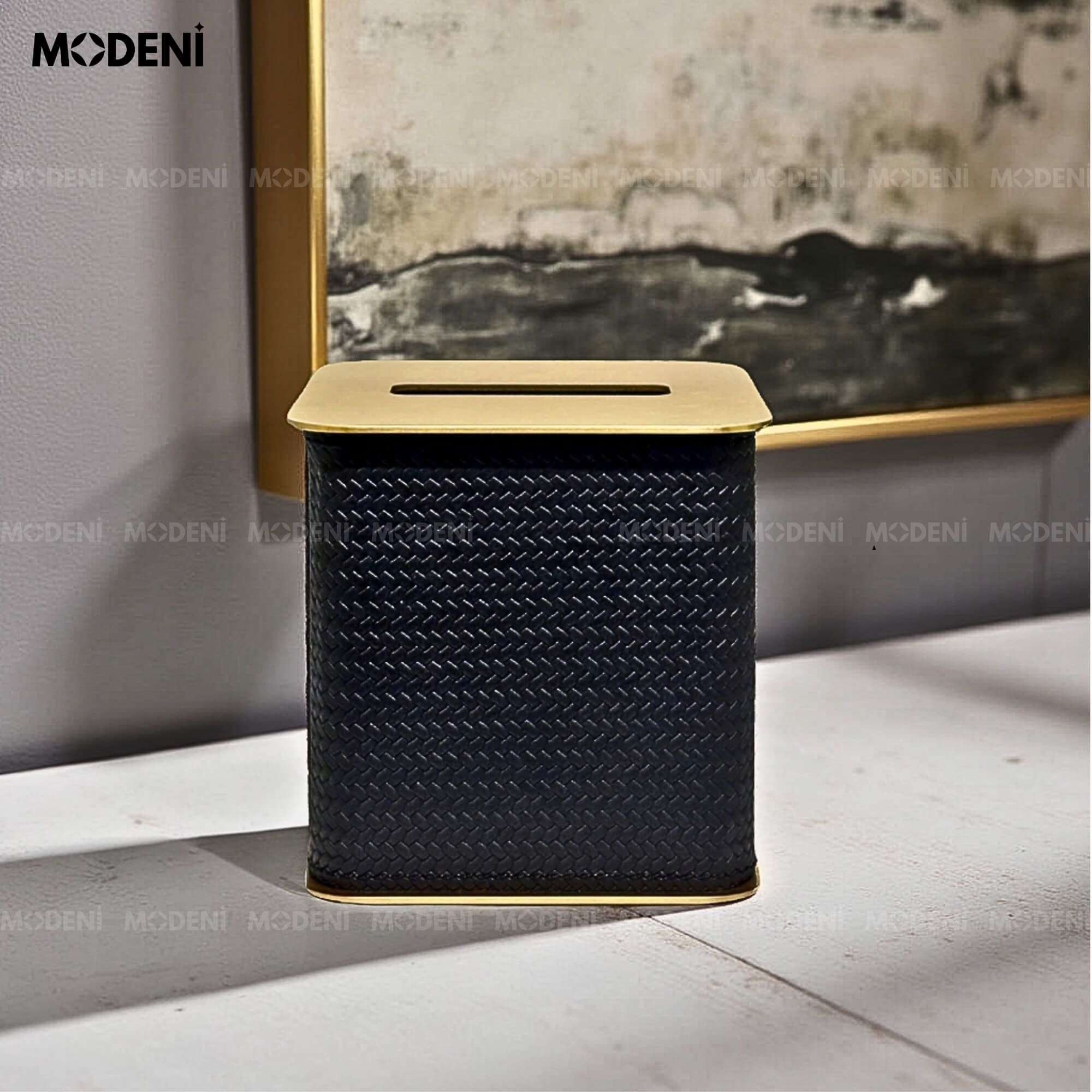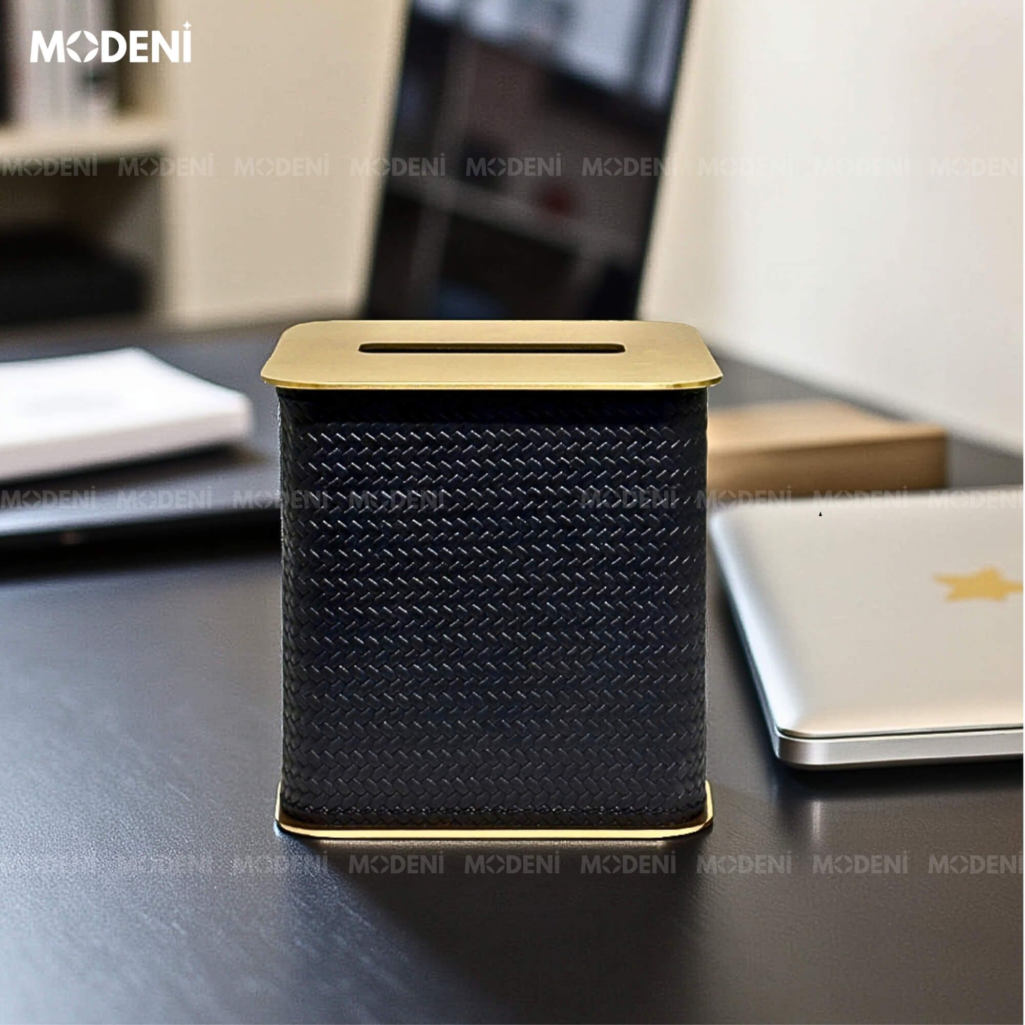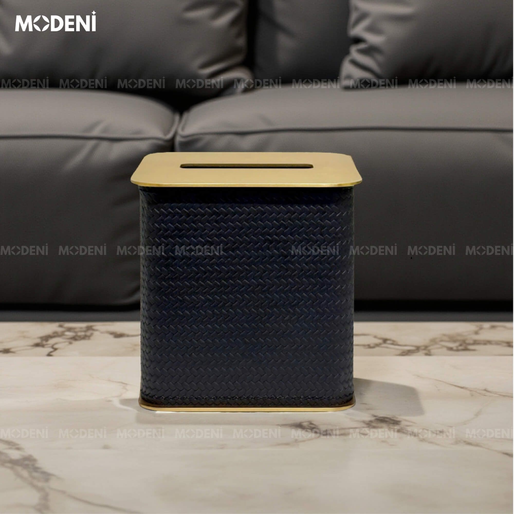 Hộp Khăn Giấy Keris Vuông Đen Da PU Cao Cấp Nắp Kim Loại Sang Trọng Cho Phòng Khách Và Văn Phòng