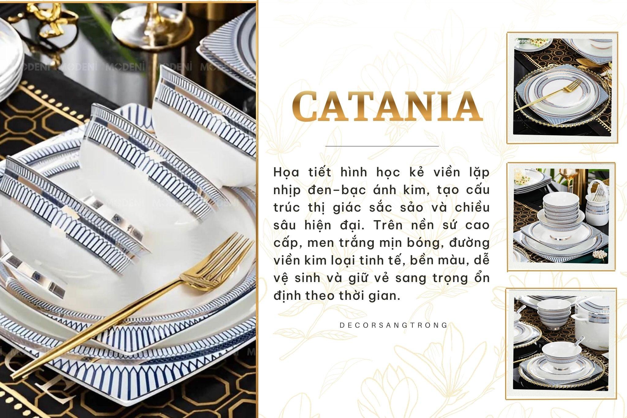 Bộ Chén Đĩa Catania Sứ Xương Cao Cấp – Họa Tiết Bạch Kim Thanh Lịch – Dành Cho Bàn Ăn Gia Đình Sang Trọng