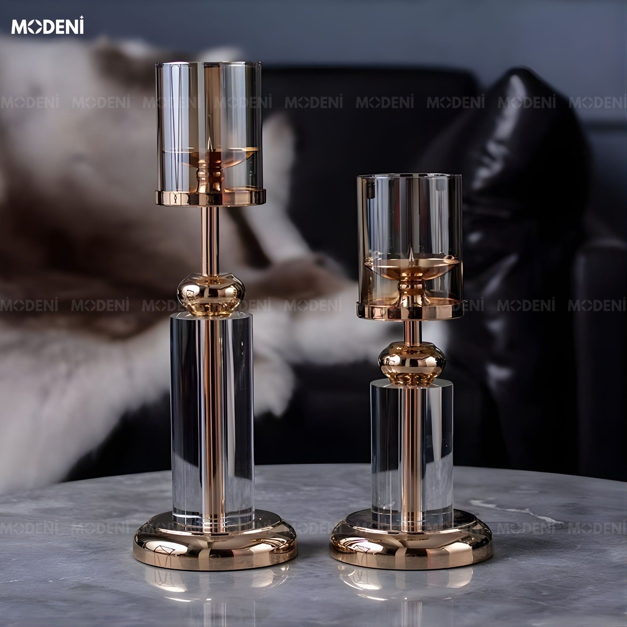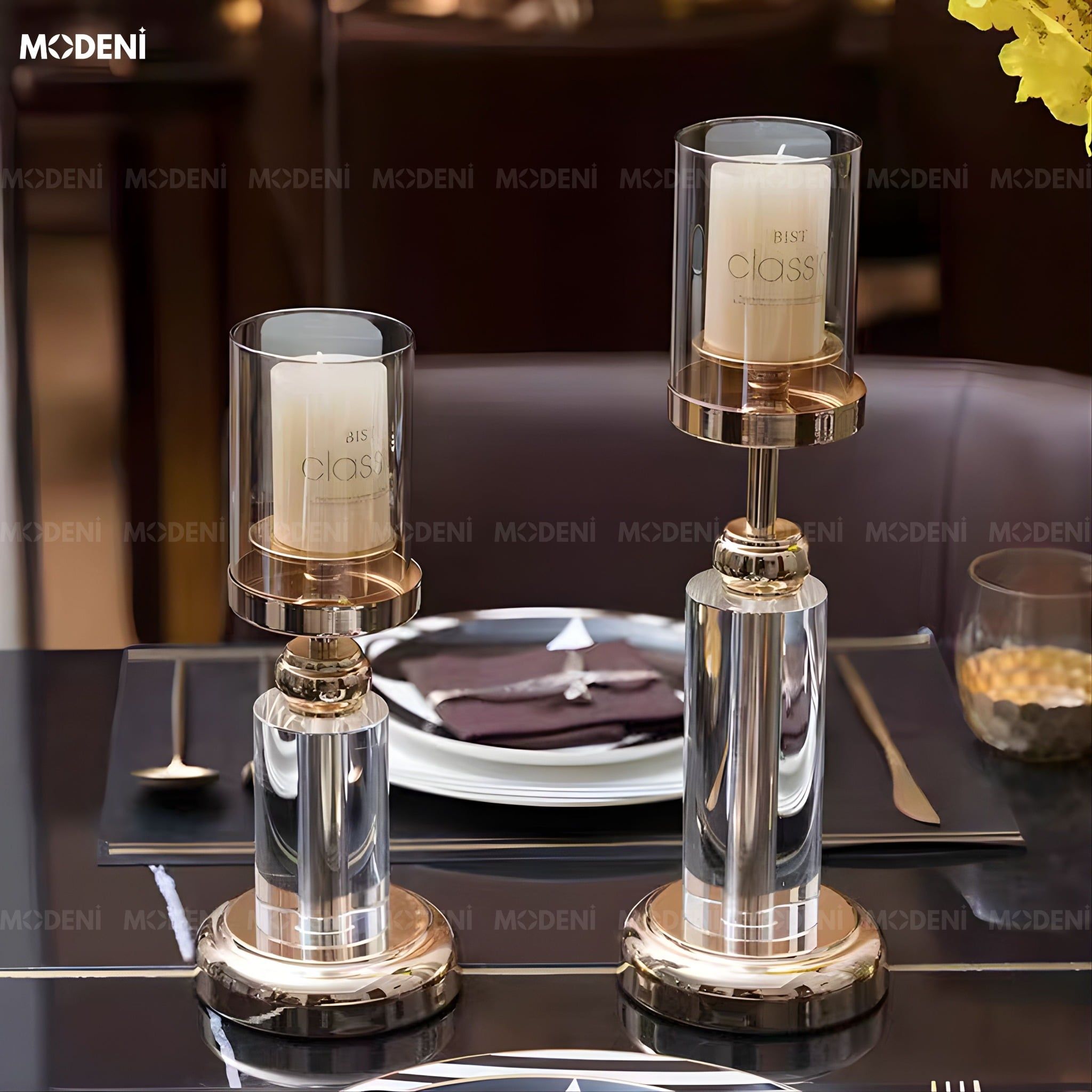 | Tính Năng/Ứng Dụng | Chân nến decor tạo ánh sáng ấm, làm điểm nhấn sang trọng cho bàn sofa, bàn ăn tối, console, phòng khách cao cấp. |