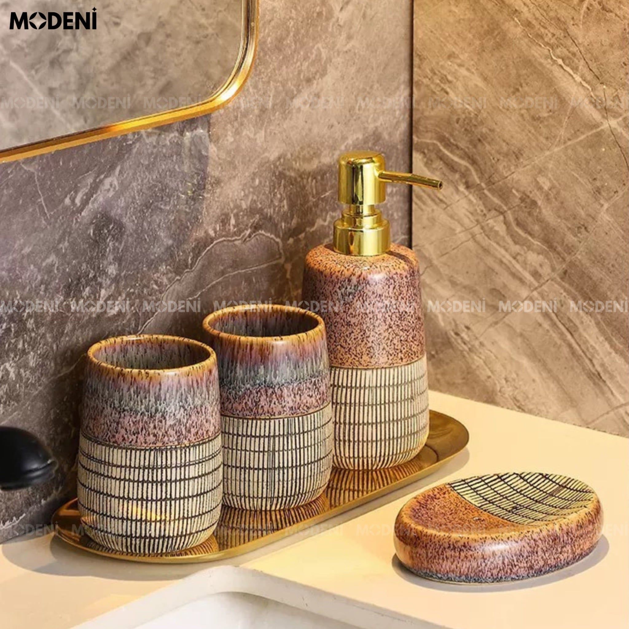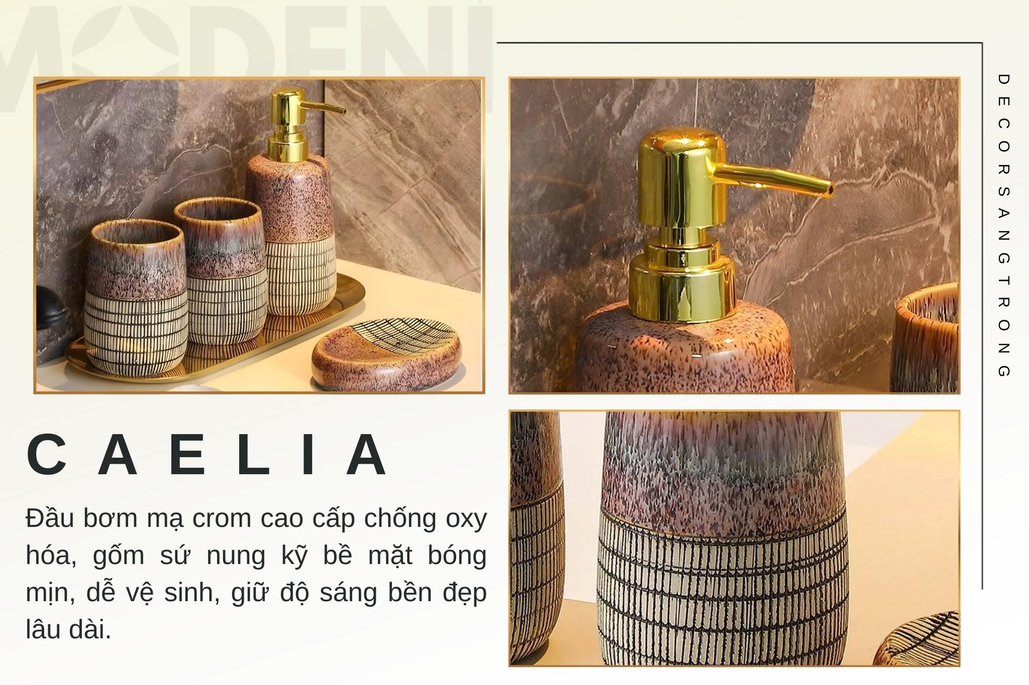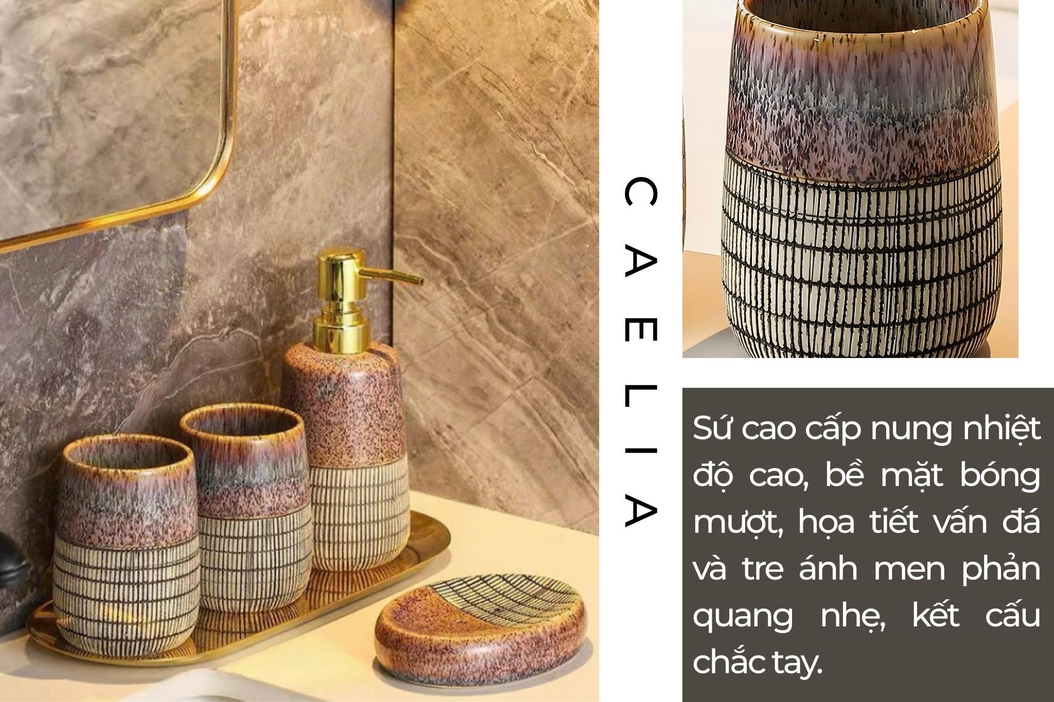 Set Đồ Dùng Nhà Tắm Caelia Gốm Sứ Cao Cấp Họa Tiết Vân Đá Và Tre Đường Nét Tinh Gọn, Nâng Cấp Không Gian Tắm Thành Góc Thư Giãn Sang Trọng