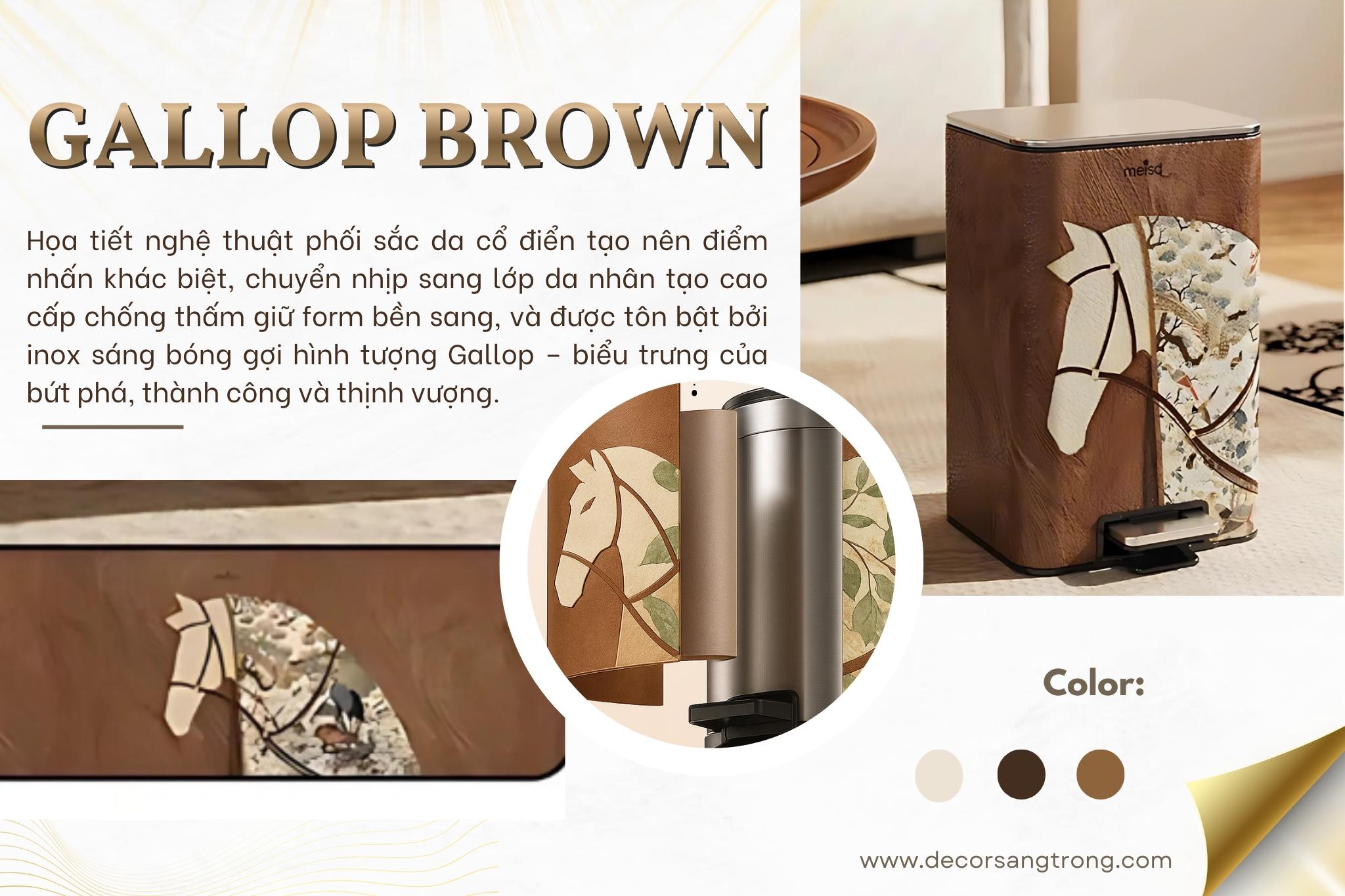 Thùng rác Gallop Brown da cao cấp phối inox phong cách đơn giản cho không gian trung tâm sang trọng tinh tế