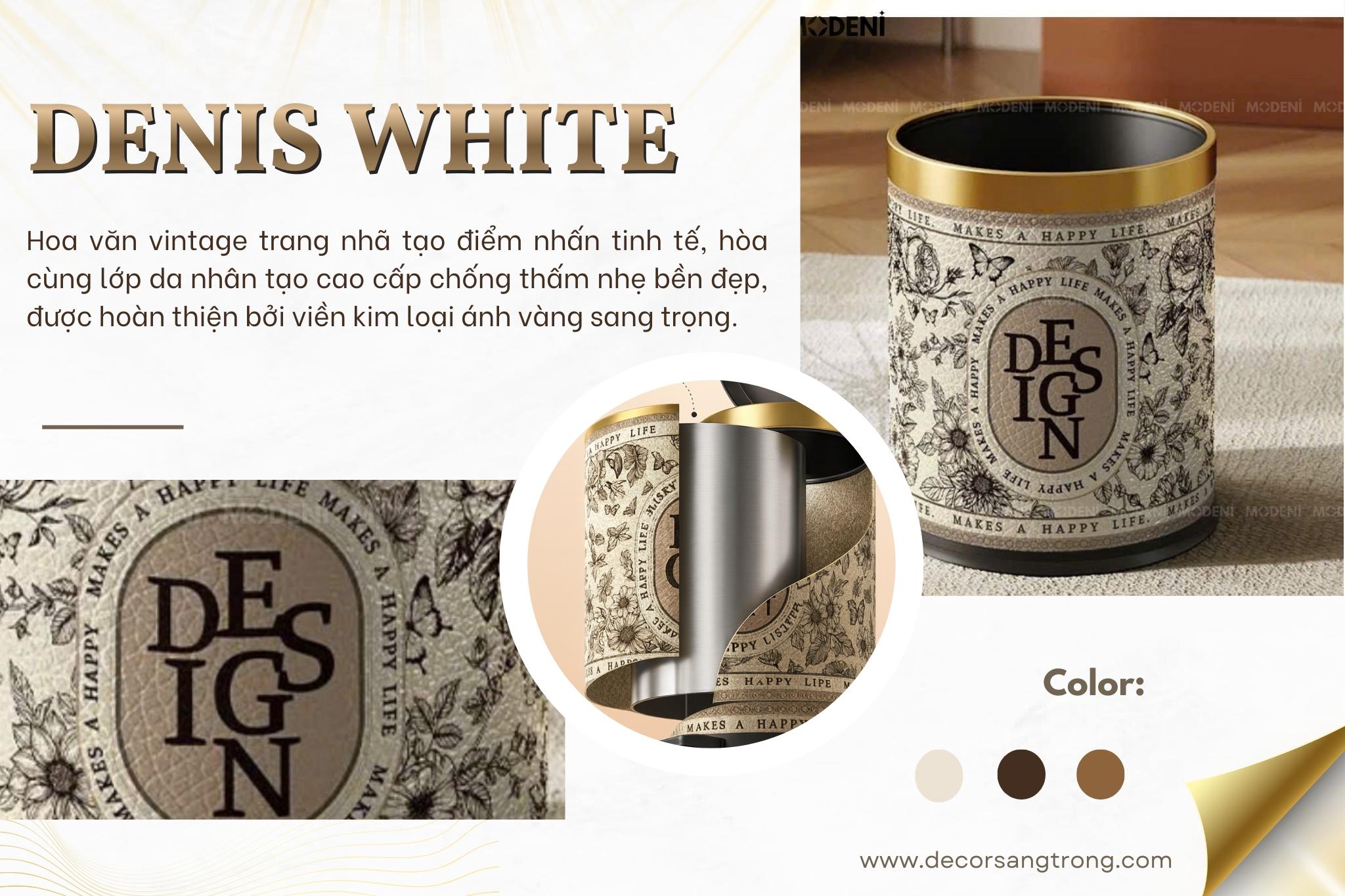 Thùng rác Denis White da nhân tạo cao cấp viền kim loại vàng phong cách đơn giản cho không gian sinh hoạt trung tâm sang