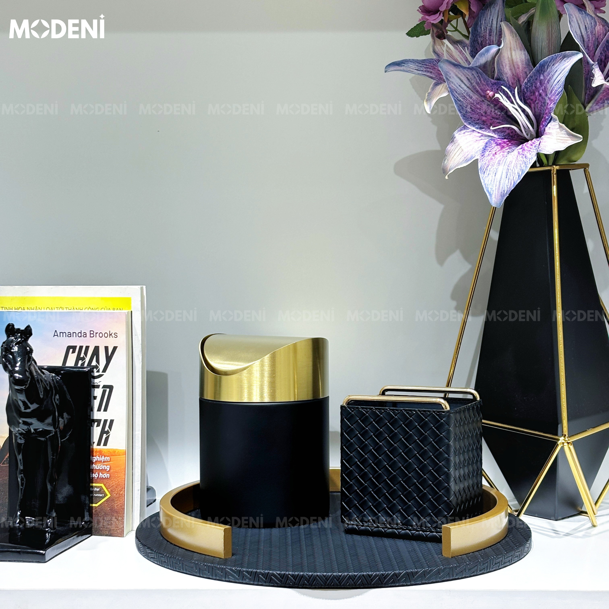 Thùng Rác Mini Để Bàn Faye – Thùng rác mini sang trọng – Nắp lật mạ vàng tiện dụng – Kích thước nhỏ gọn 16.8 x 12 cm phù hợp góc bàn hiện đại