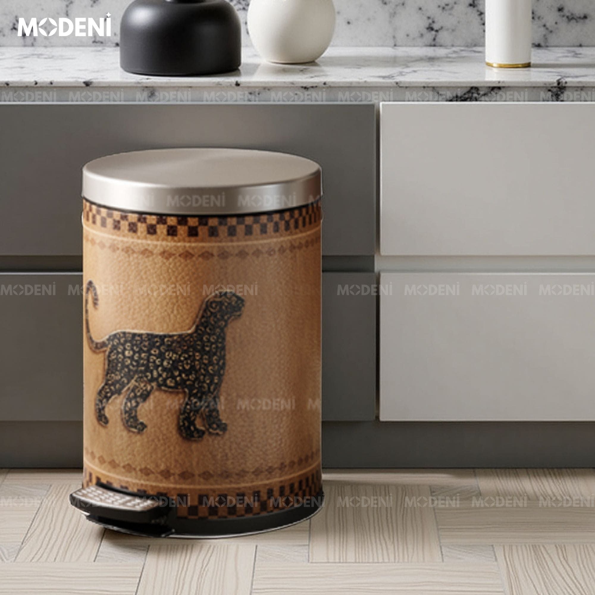 Thùng Rác Có Nắp Morgan – Thùng Rác Decor 14L – Họa Tiết Con Báo Trung Cổ – Phù Hợp Trang Trí Phòng Khách, Phòng Ngủ