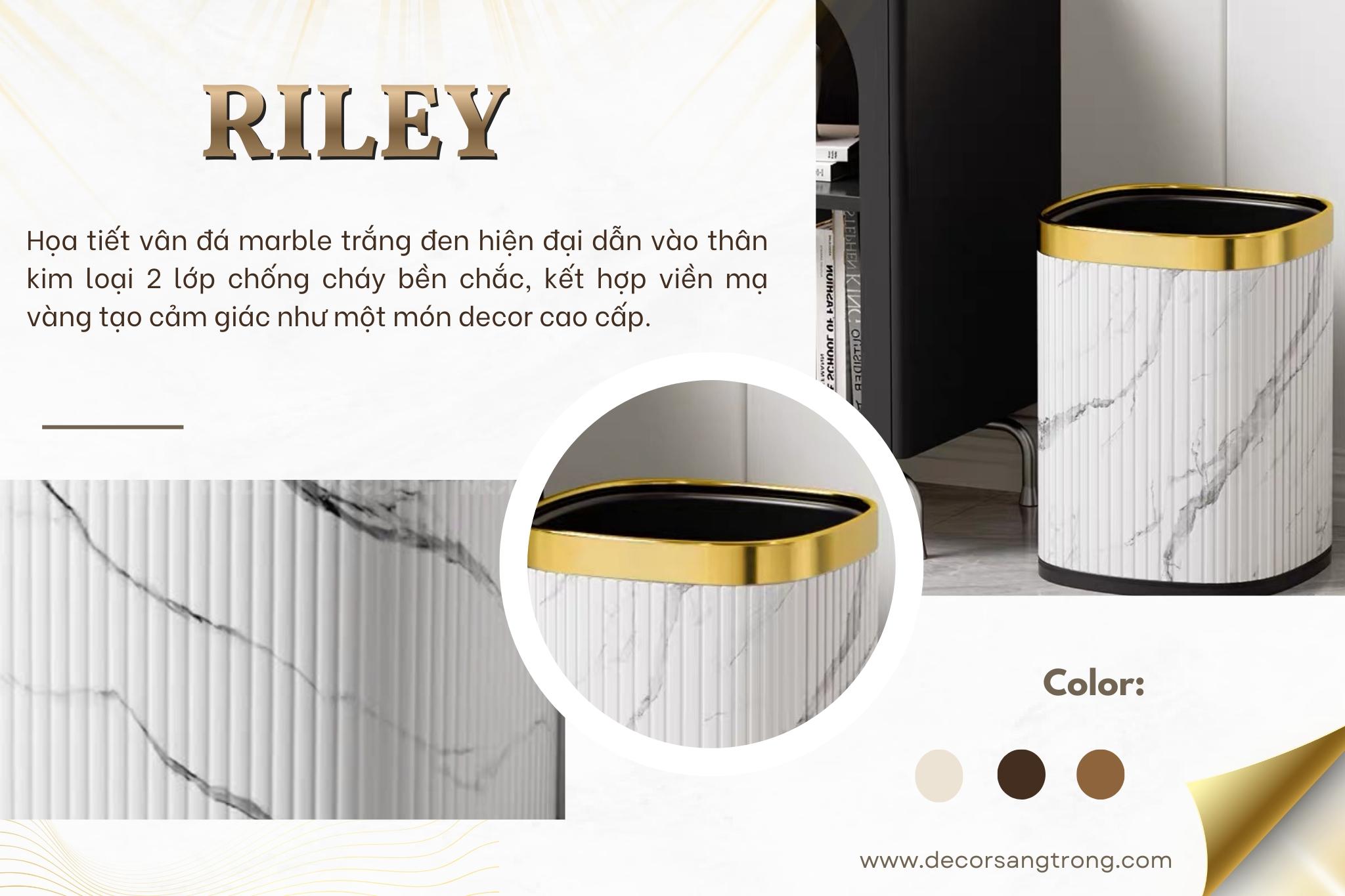 Thùng rác Riley kim loại hai lớp chống cháy phủ vân đá marble nghệ thuật cho không gian sinh hoạt sang trọng hiện đại
