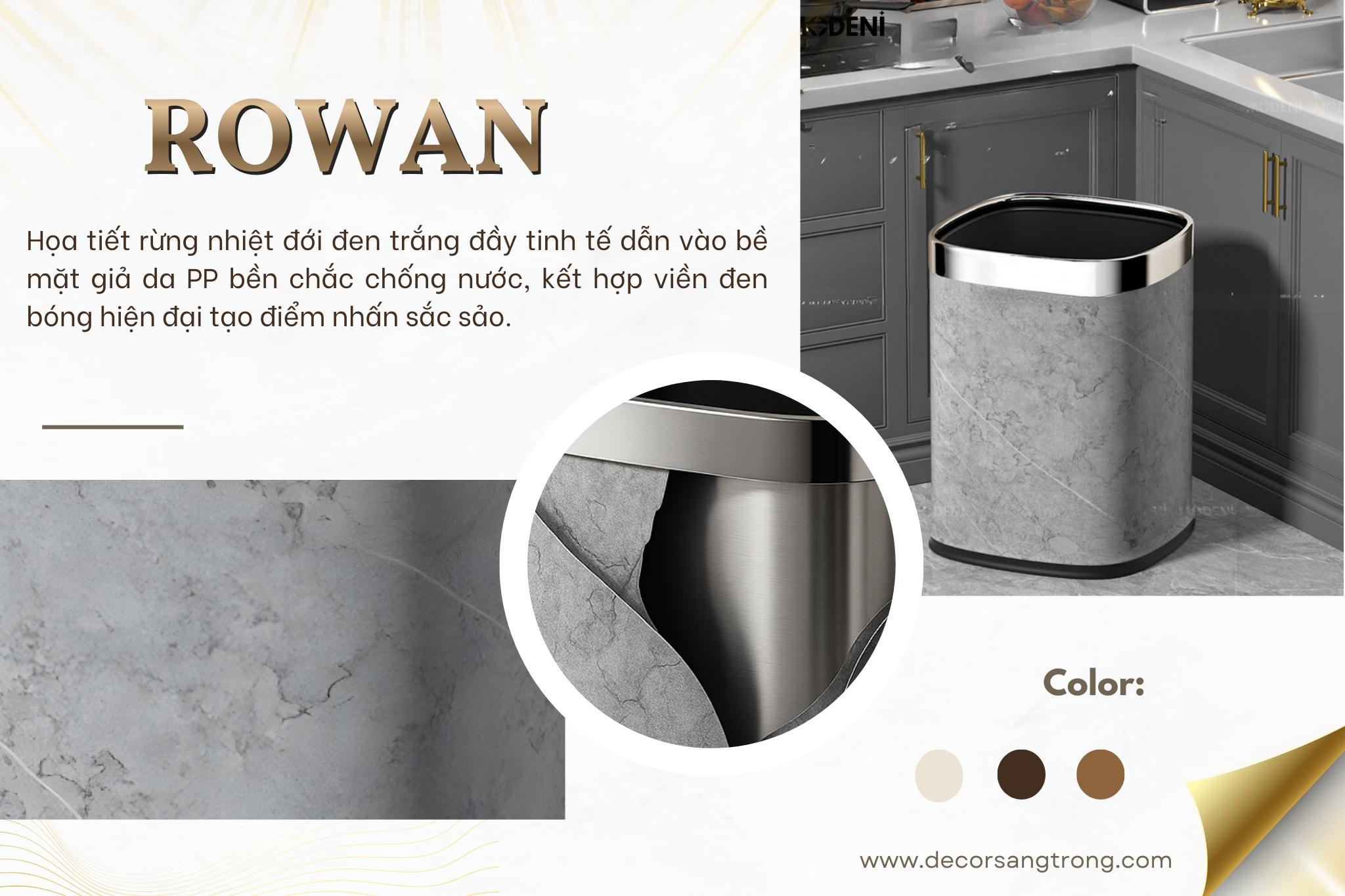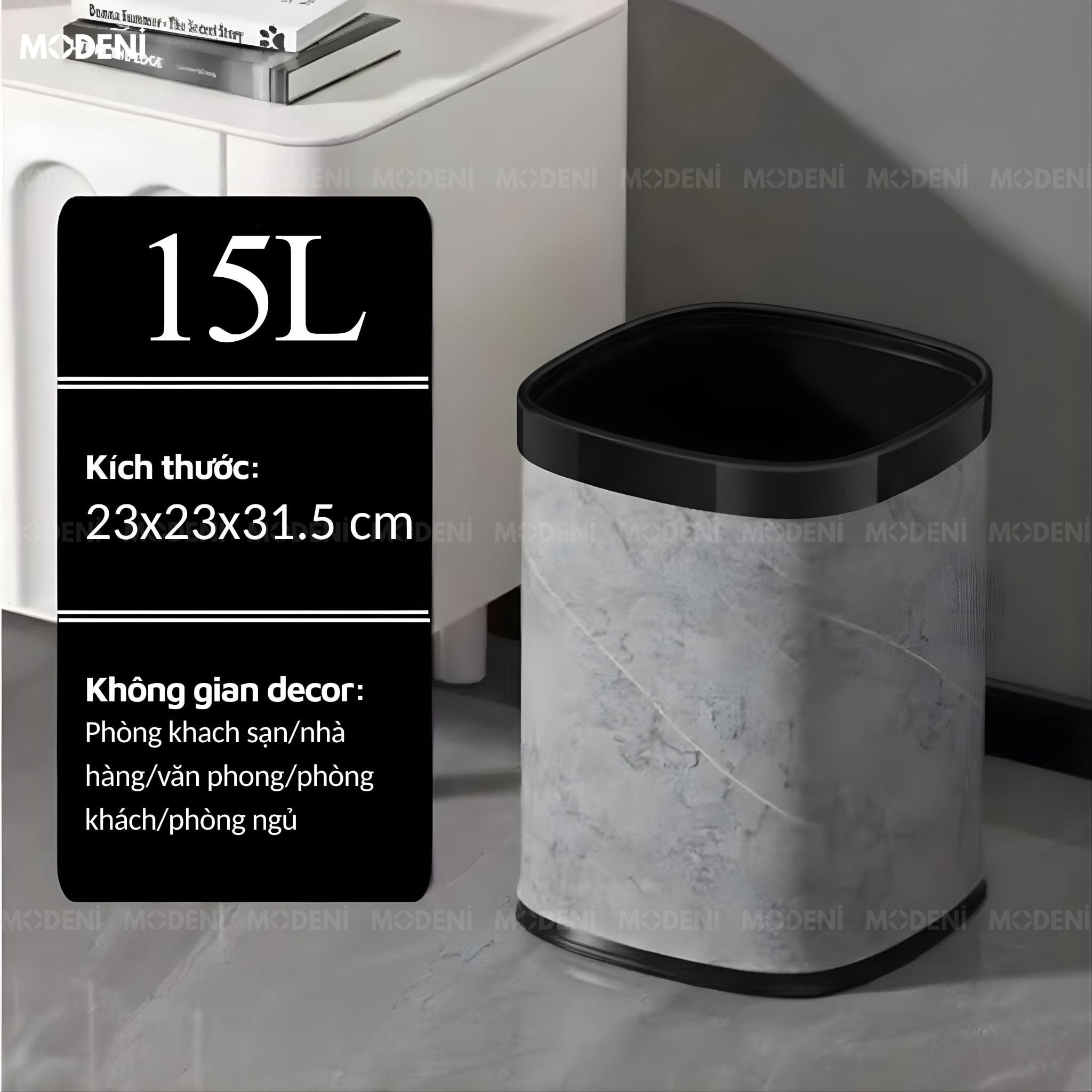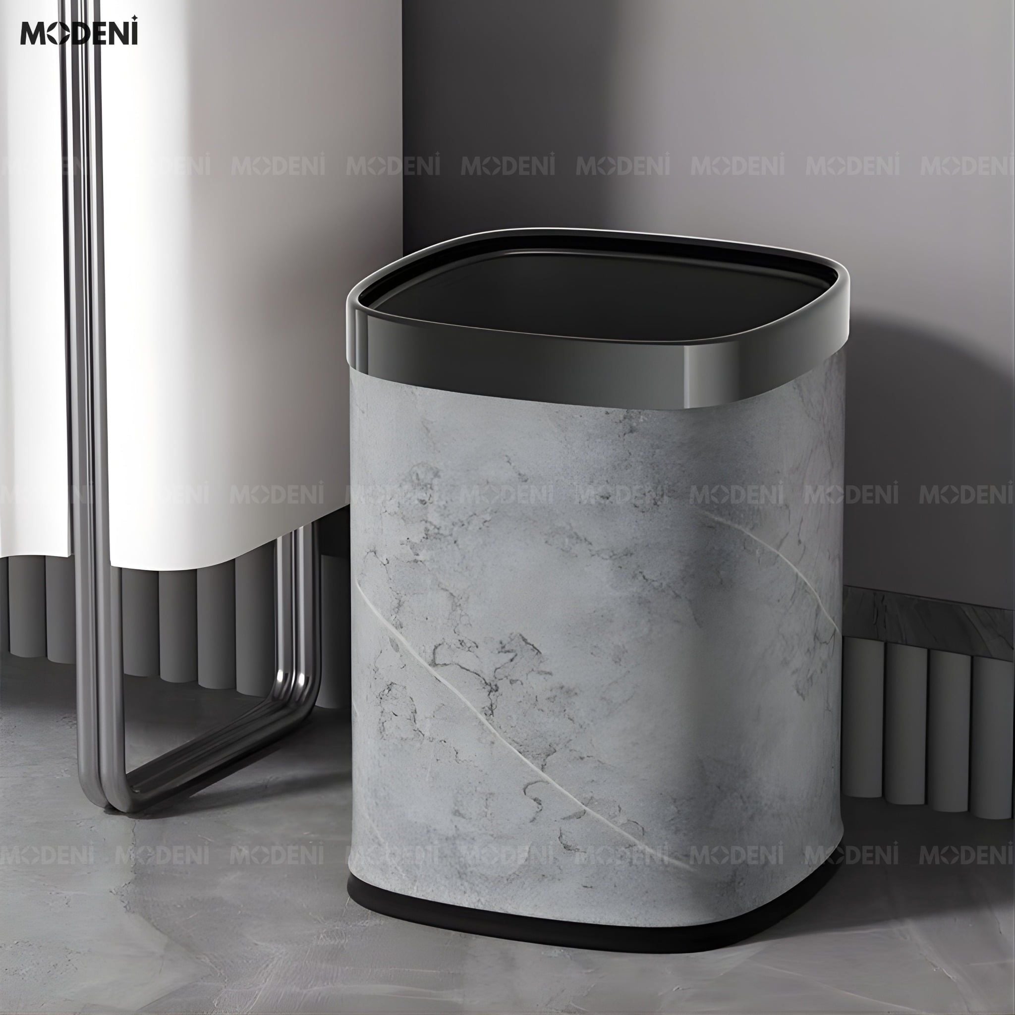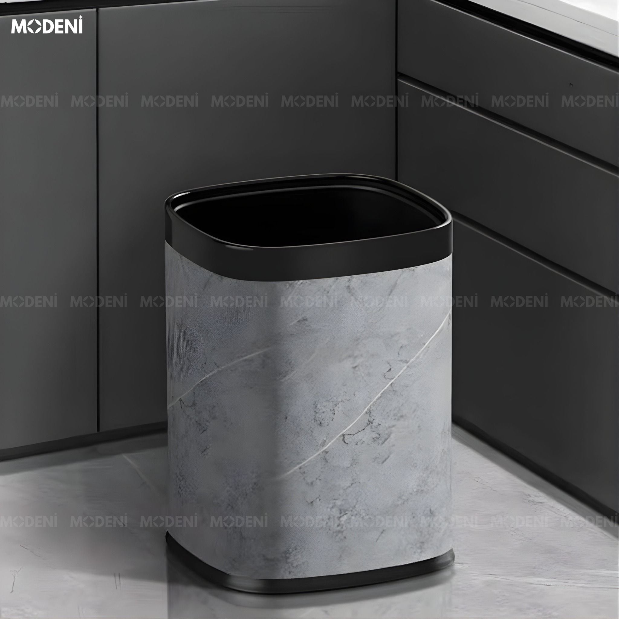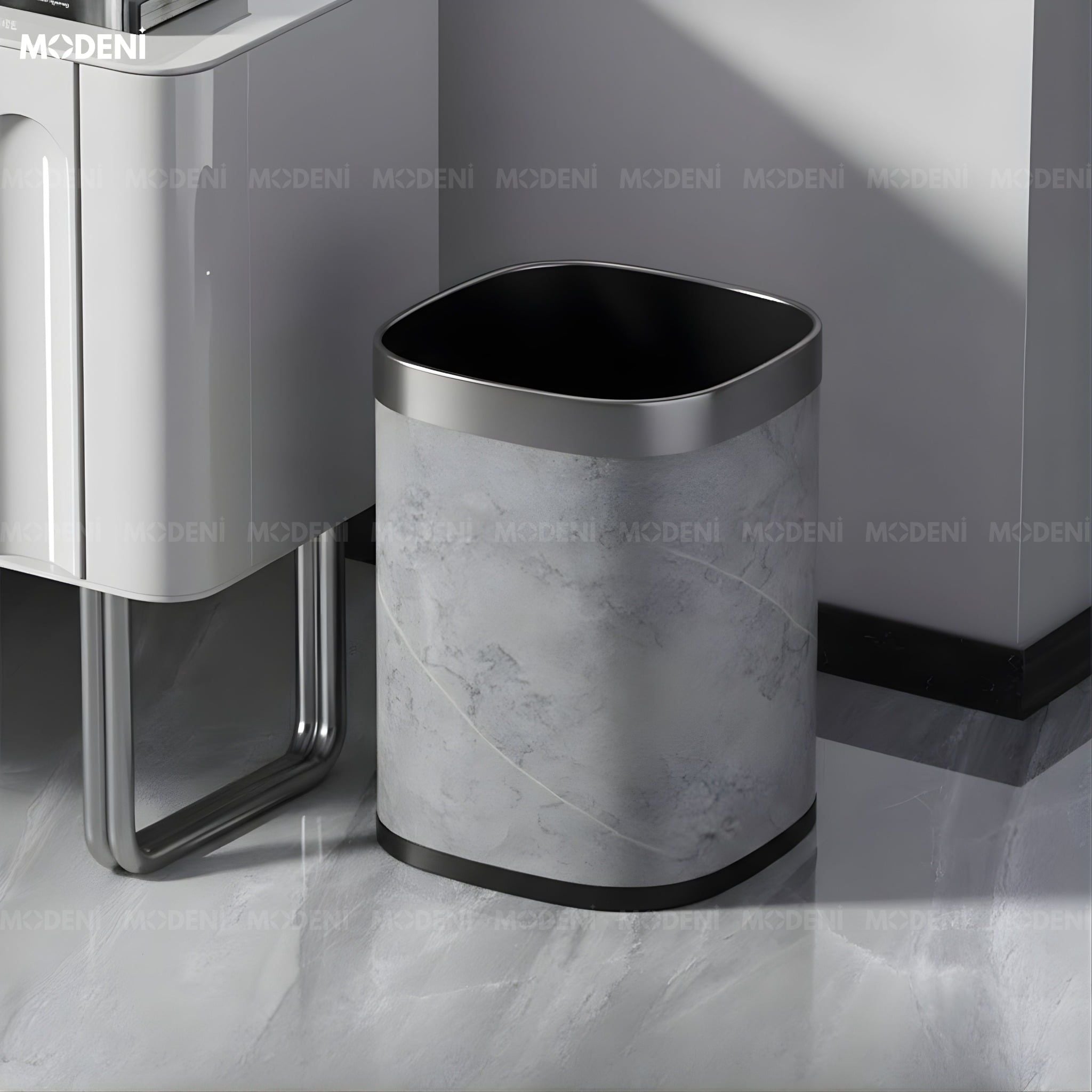 Thùng rác Rowan kim loại giả đá cẩm thạch nghệ thuật vân xám trung tính cho không gian sinh hoạt hiện đại sang trọng