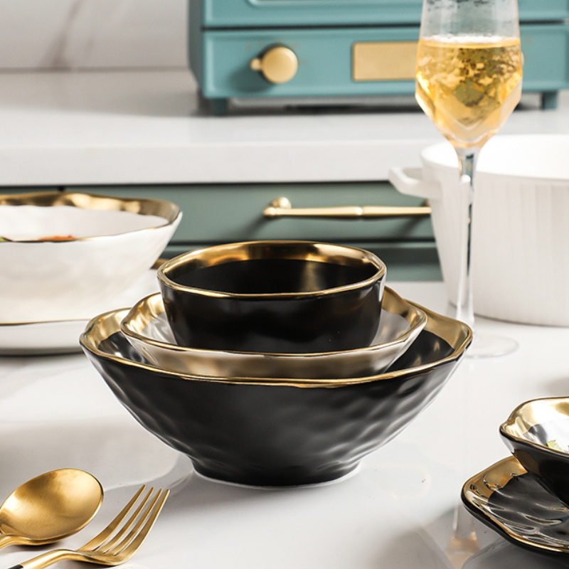 Bộ bát đĩa viền vàng dành cho những gia đình yêu thích phong cách Châu Âu, các nhà hàng Âu. Các họa tiết tạo nên sự đồng bộ cho bàn ăn nhà bạn, được cấu tạo từ sứ tráng men cao cấp, mang lại sự tinh tế và đậm bản sắc của phong cách Châu Âu