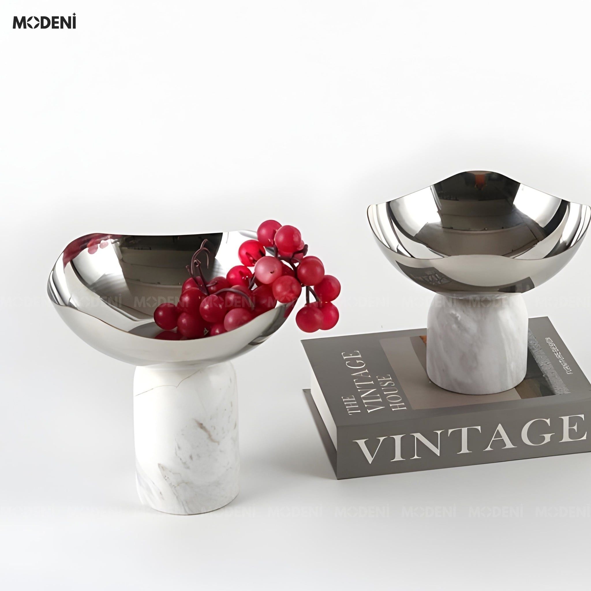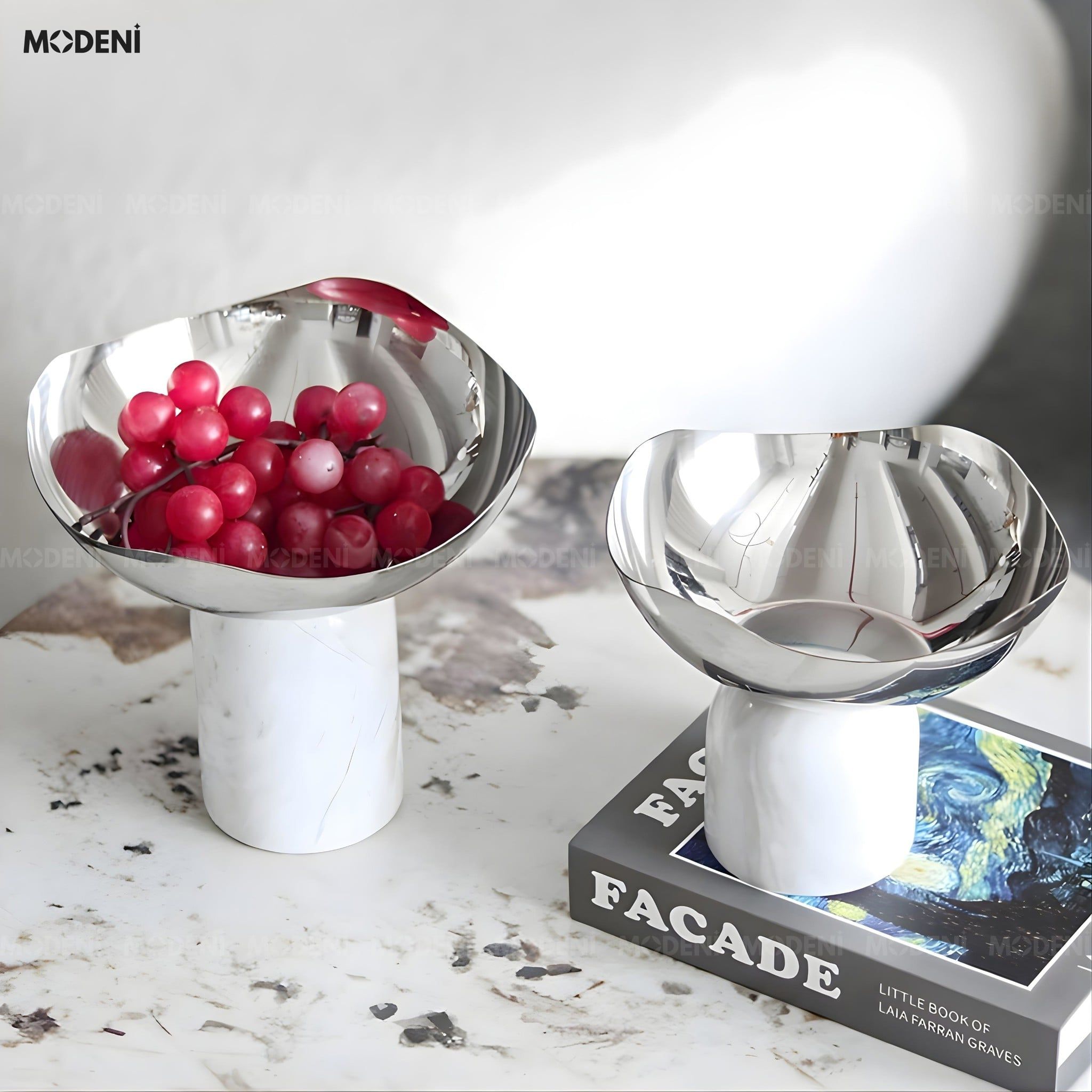 Tô Trái Cây Mari Kim Loại Phối Đá Cẩm Thạch Phù Hợp Mọi Không Gian