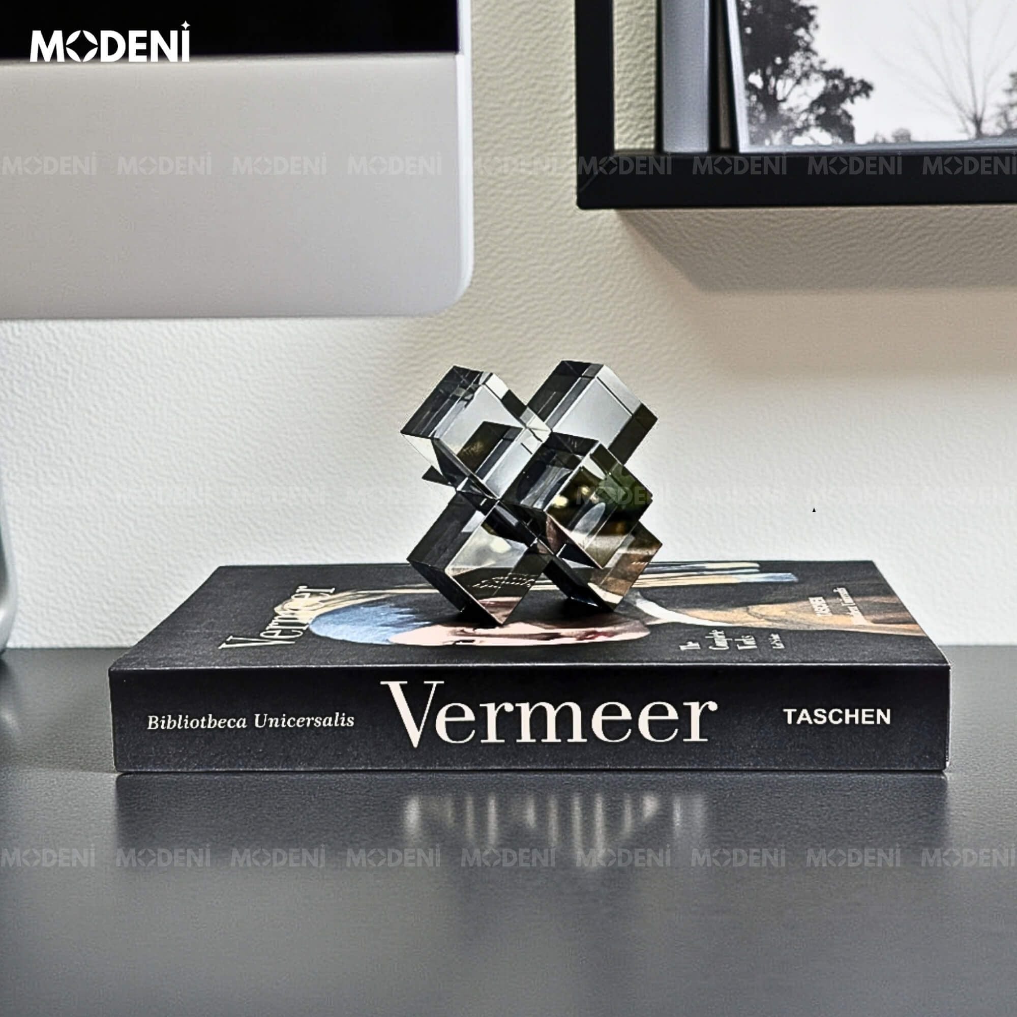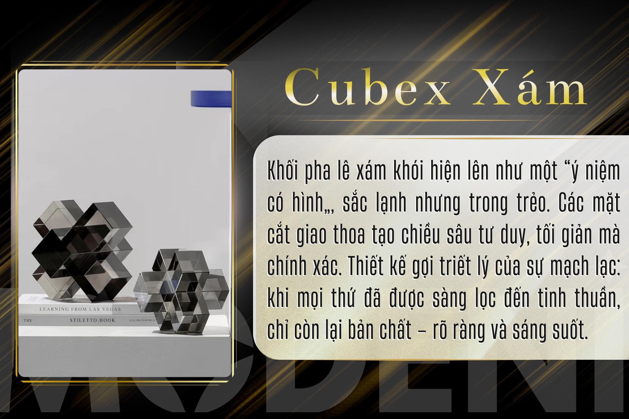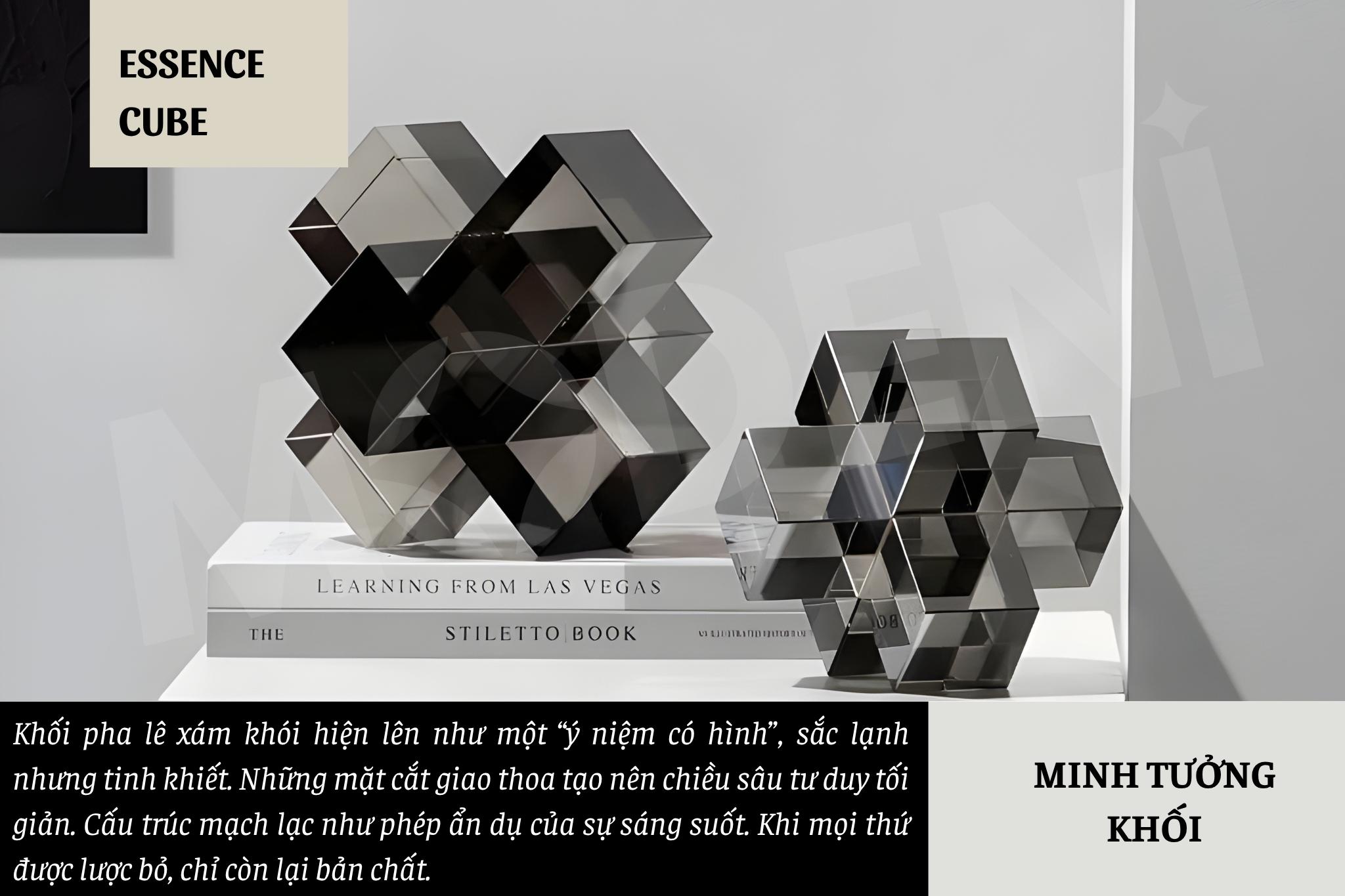 Tượng Cubex Xám Decor Nghệ Thuật Trừu Tượng – Trục Xoay Tư Duy Pha Lê – Decor Bàn Làm Việc, Kệ Sách, Văn Phòng Hiện Đại